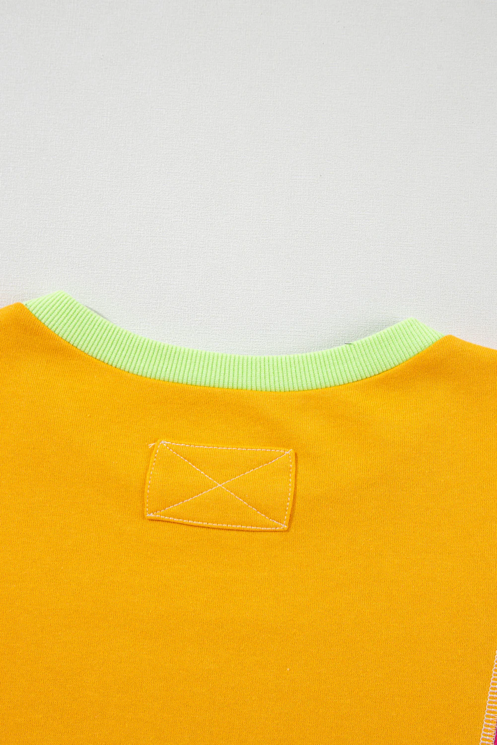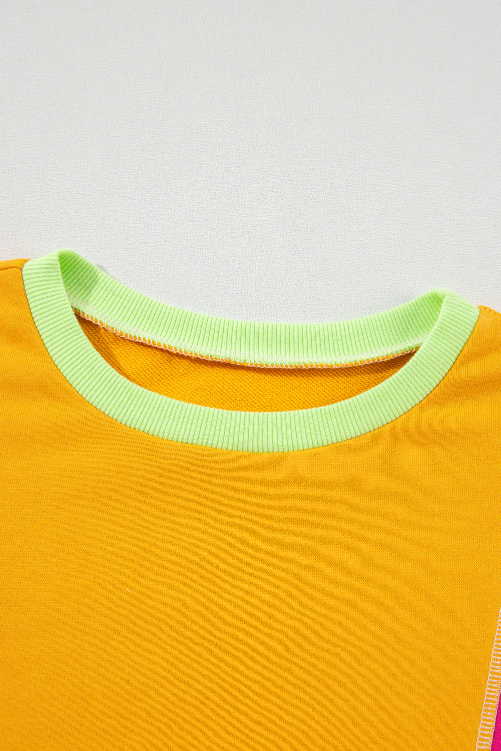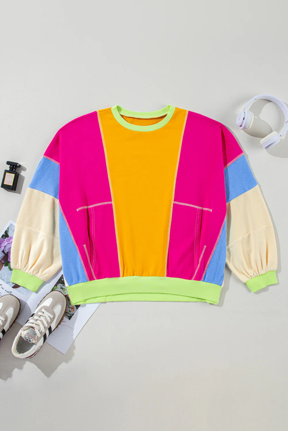 Rose Red Plus Size Colorblock Patchwork Exposed Seam Sweatshirt