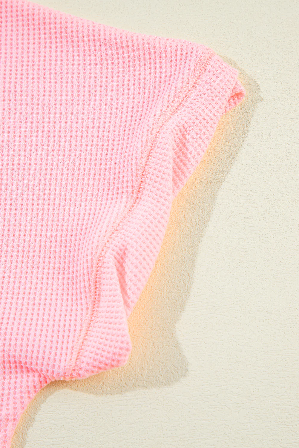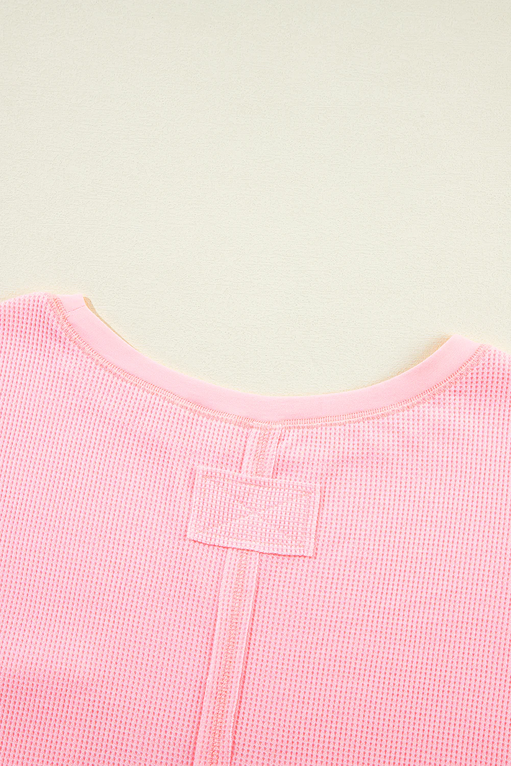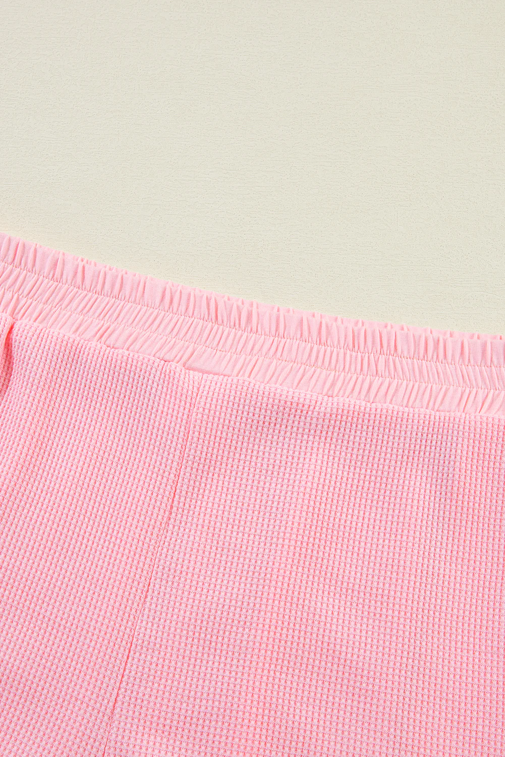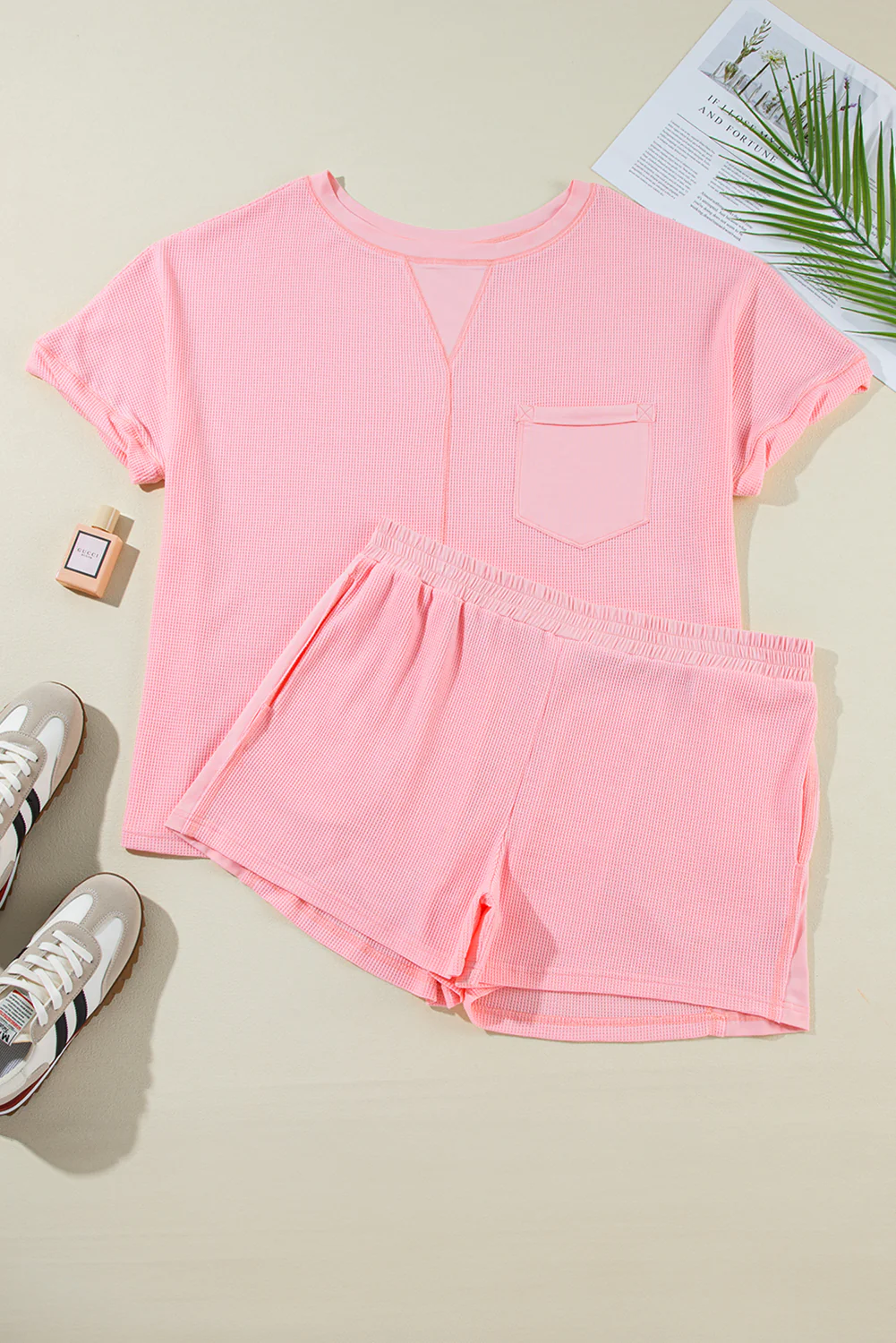 Pink Plus Size Ribbed Exposed Seam Tee and Shorts Set