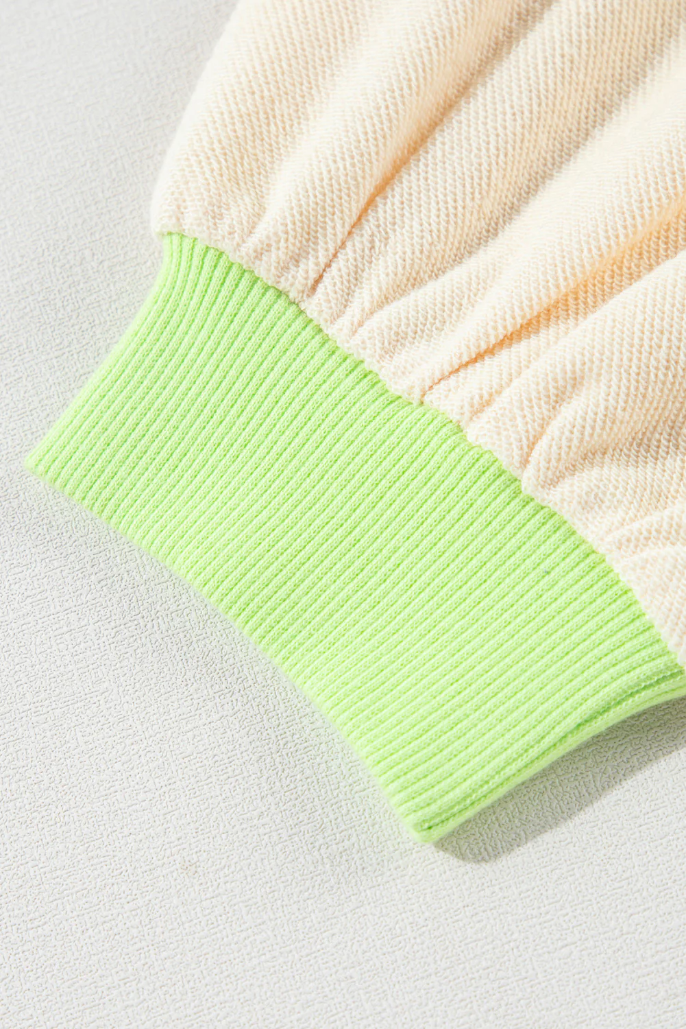 Green Plus Size Printed Patchwork Sleeve Split Sweatshirt