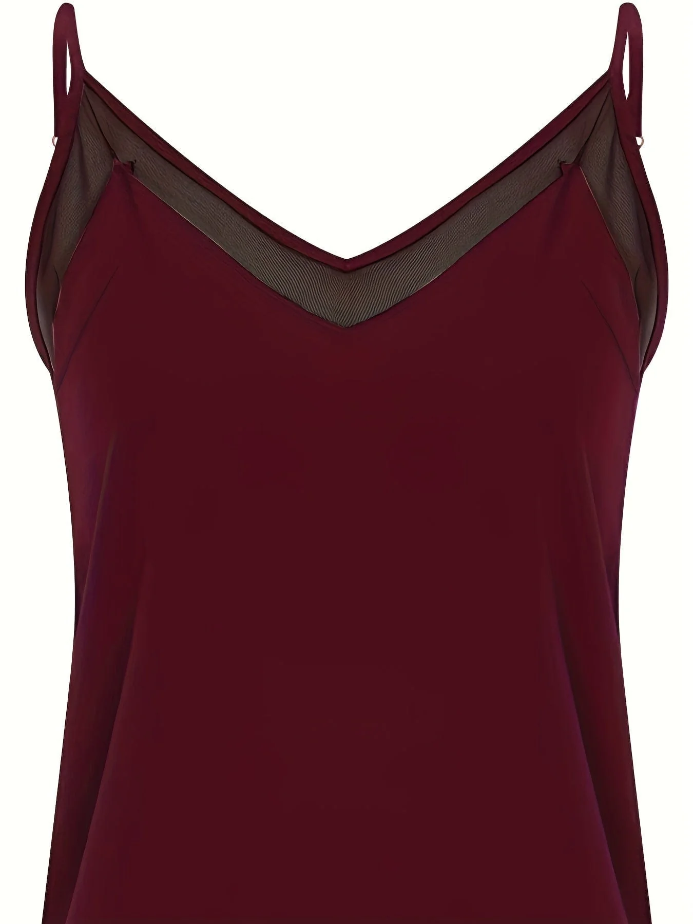 Plus Size Casual Cami Top, Women's Plus Plain Contrast Mesh V Neck Semi Sheer Cami Top