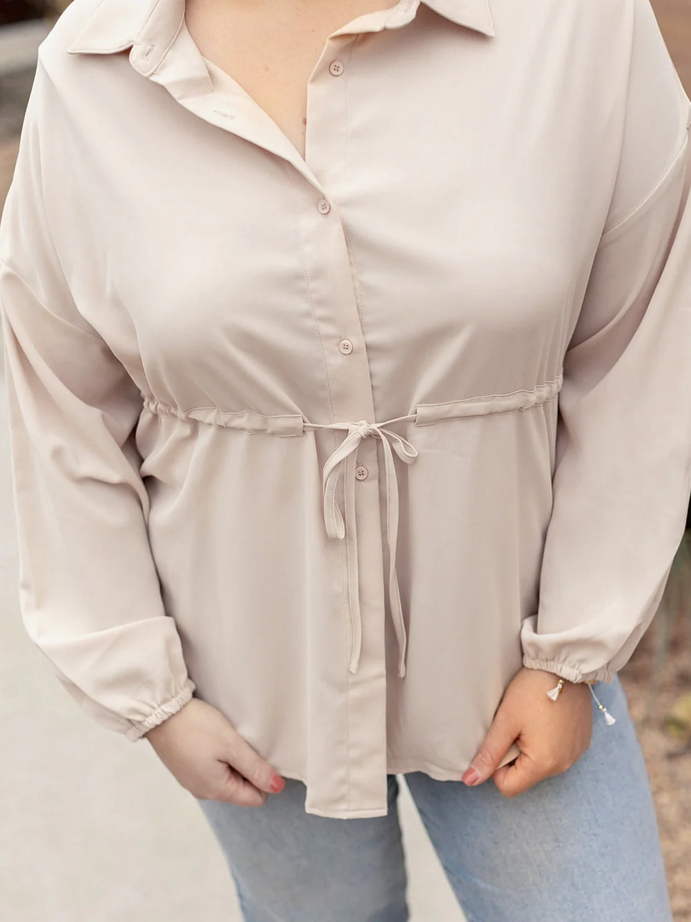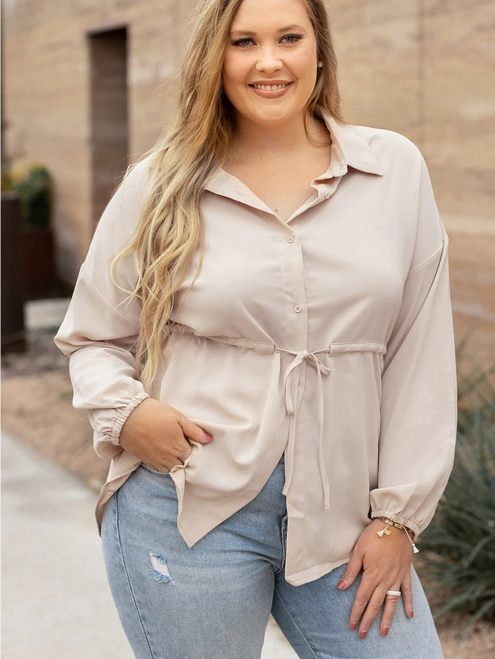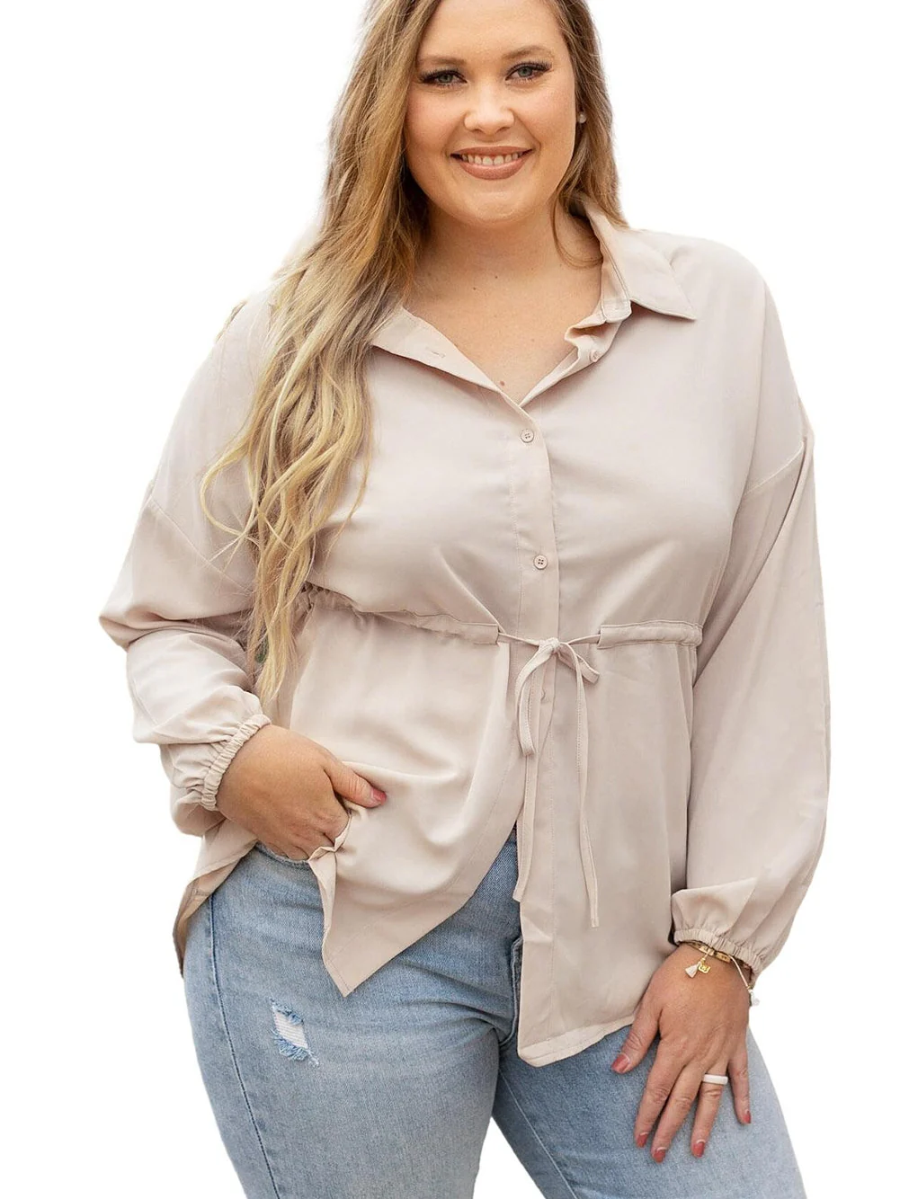 Romantic Khaki Shift Style Plus Size Tunic Blouse