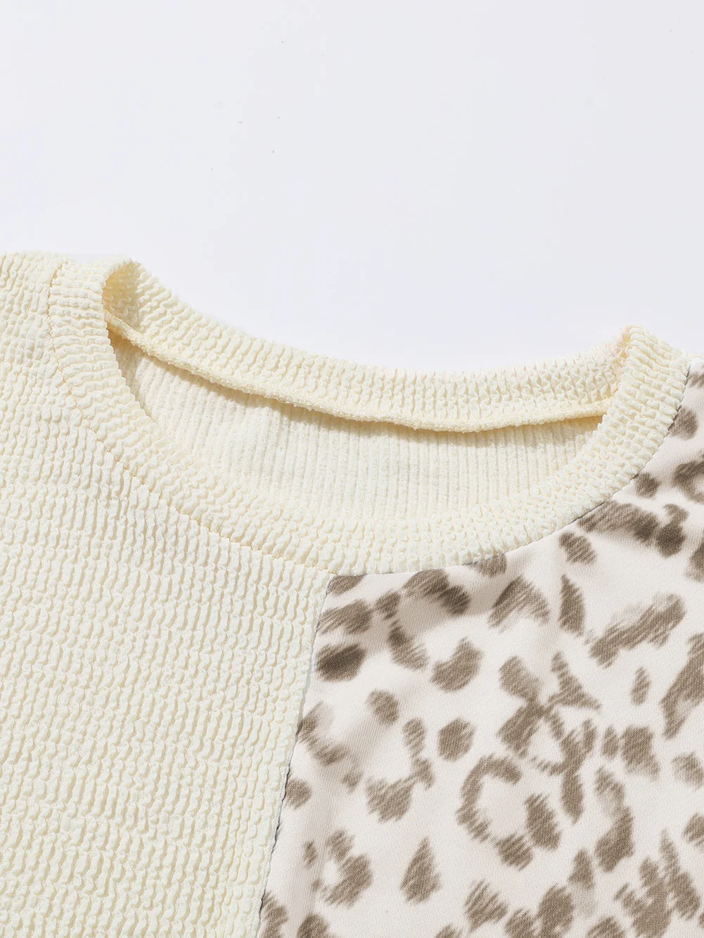 Khaki Ribbed Leopard Print Plus Size Bubble Sleeve Top