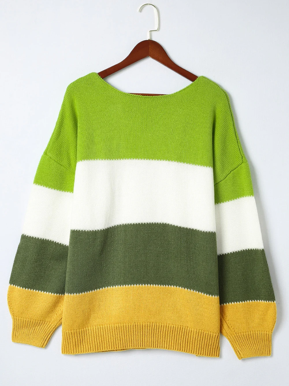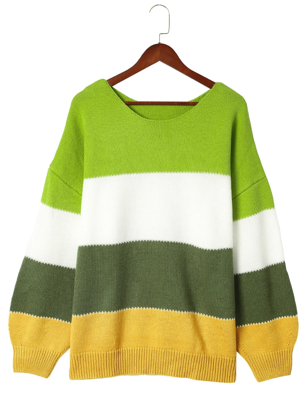 Cozy Green Color Block Plus Size Knit Sweater
