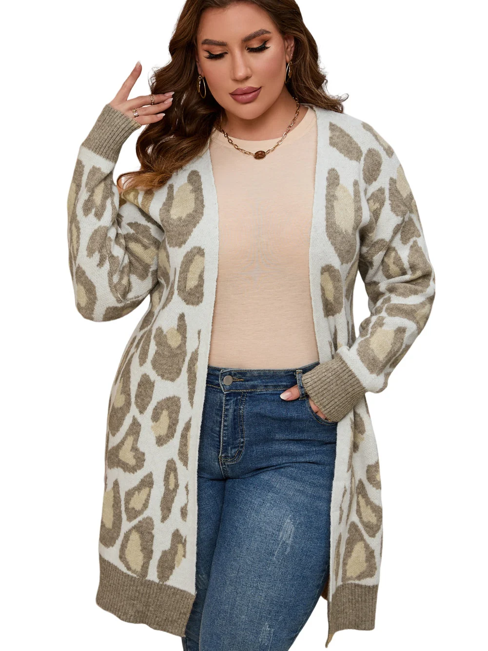 Leopard Print Beige Plus Size Cardigan