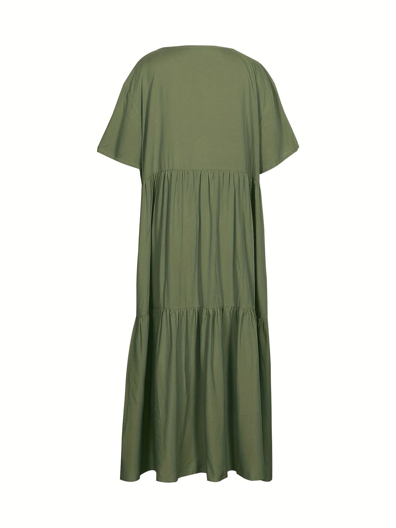 Plus Size Casual Dress, Women's Plus Solid V Neck Short Sleeve Ruffle Trim Smock Dress