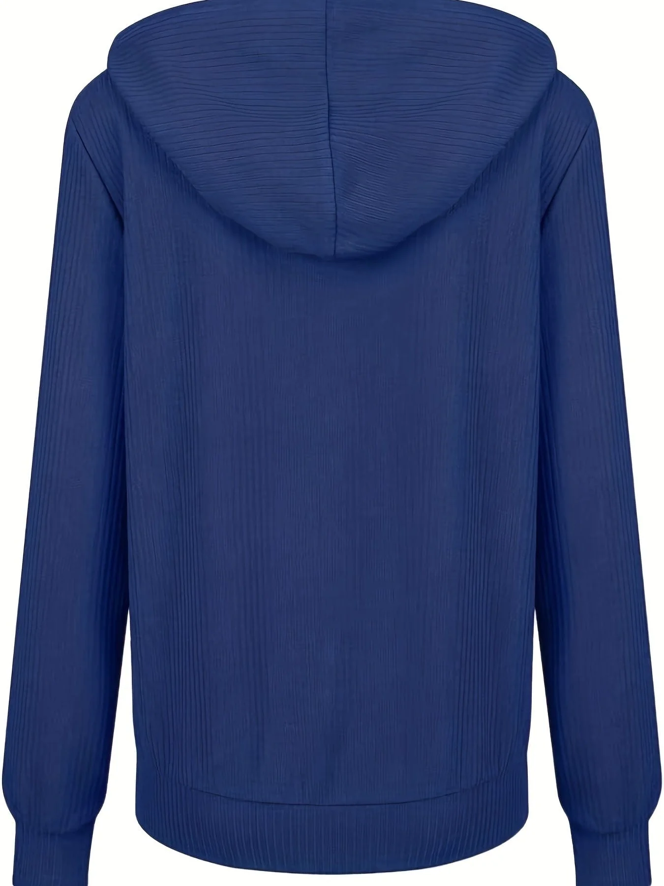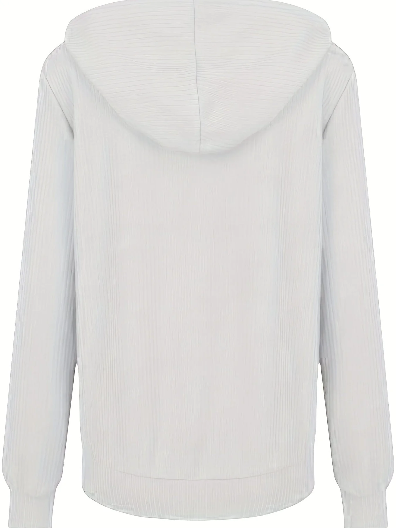Plus Size Casual Coat, Women's Plus Solid Ribbed Zip Up Long Sleeve Drawstring Hoodie Sweater