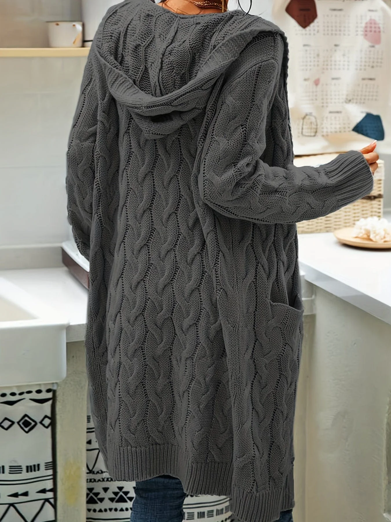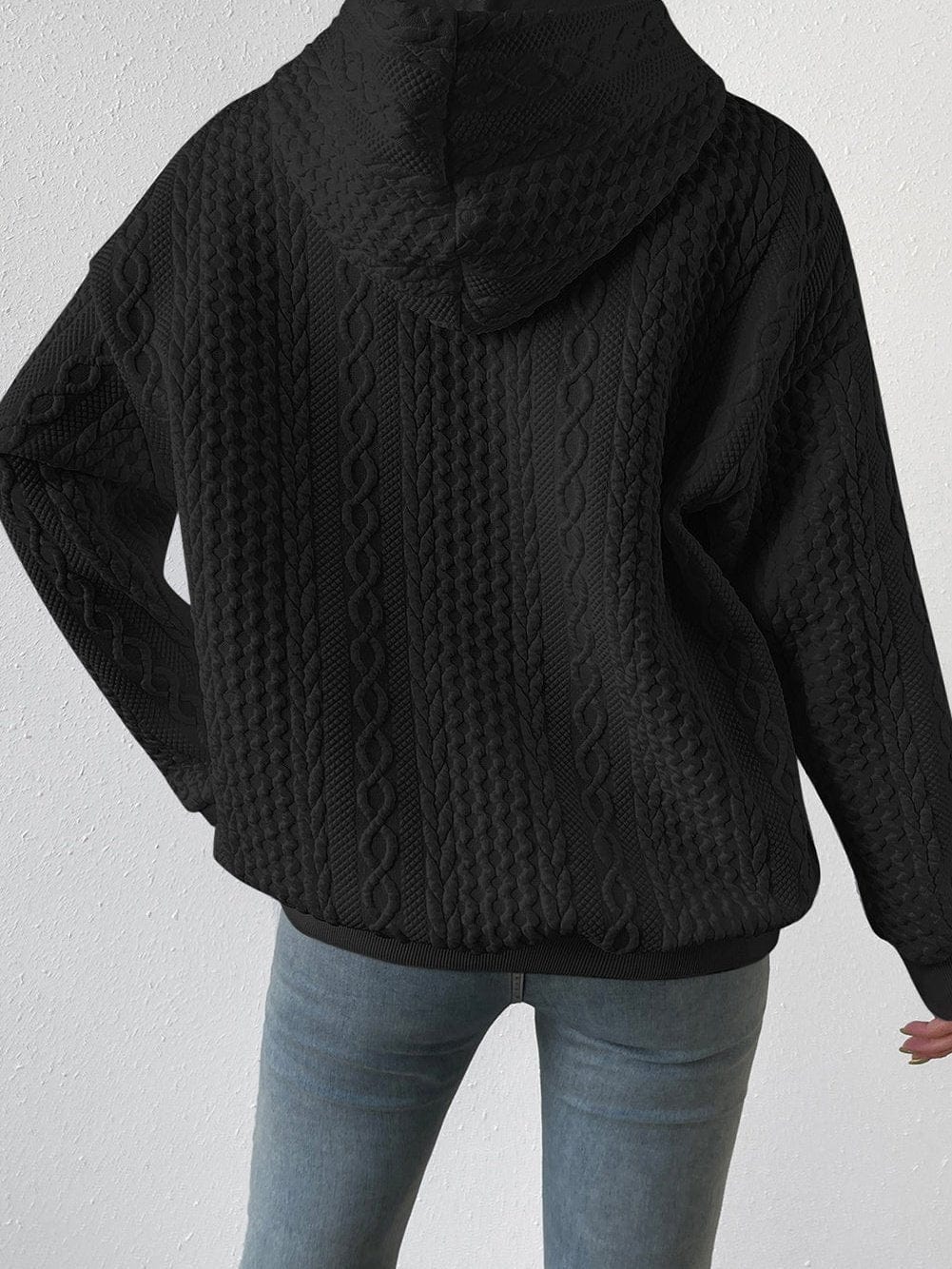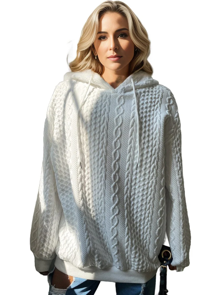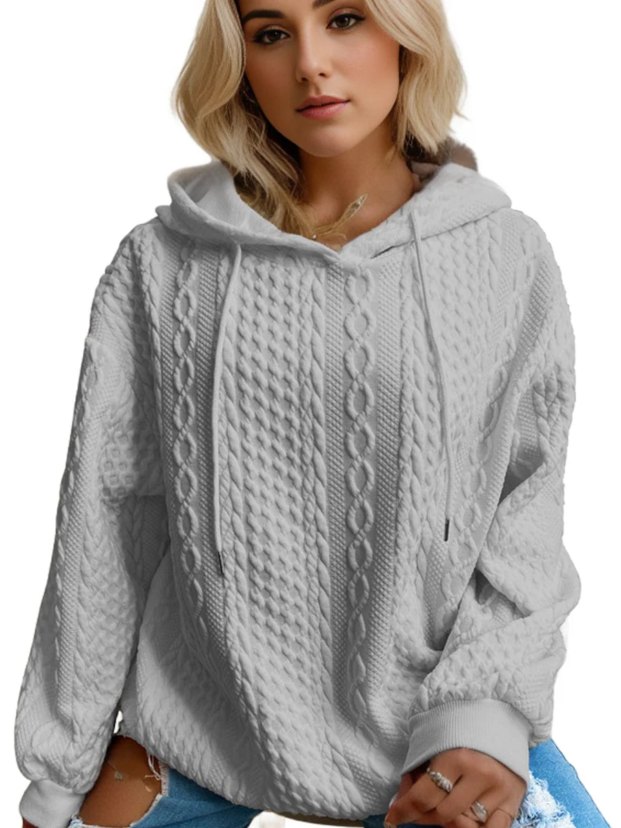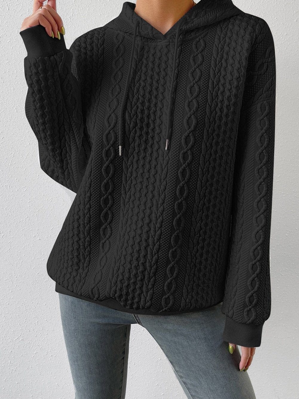 Plus Size Casual Hoodie, Women's Plus Solid Ribbed Long Sleeve Slight Stretch Hoodie Drawstring Sweatshirt
