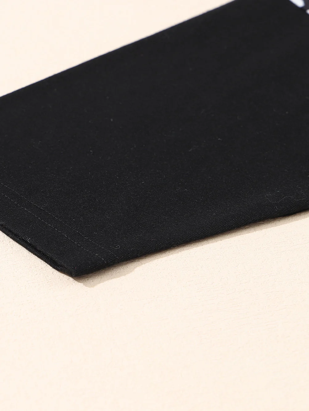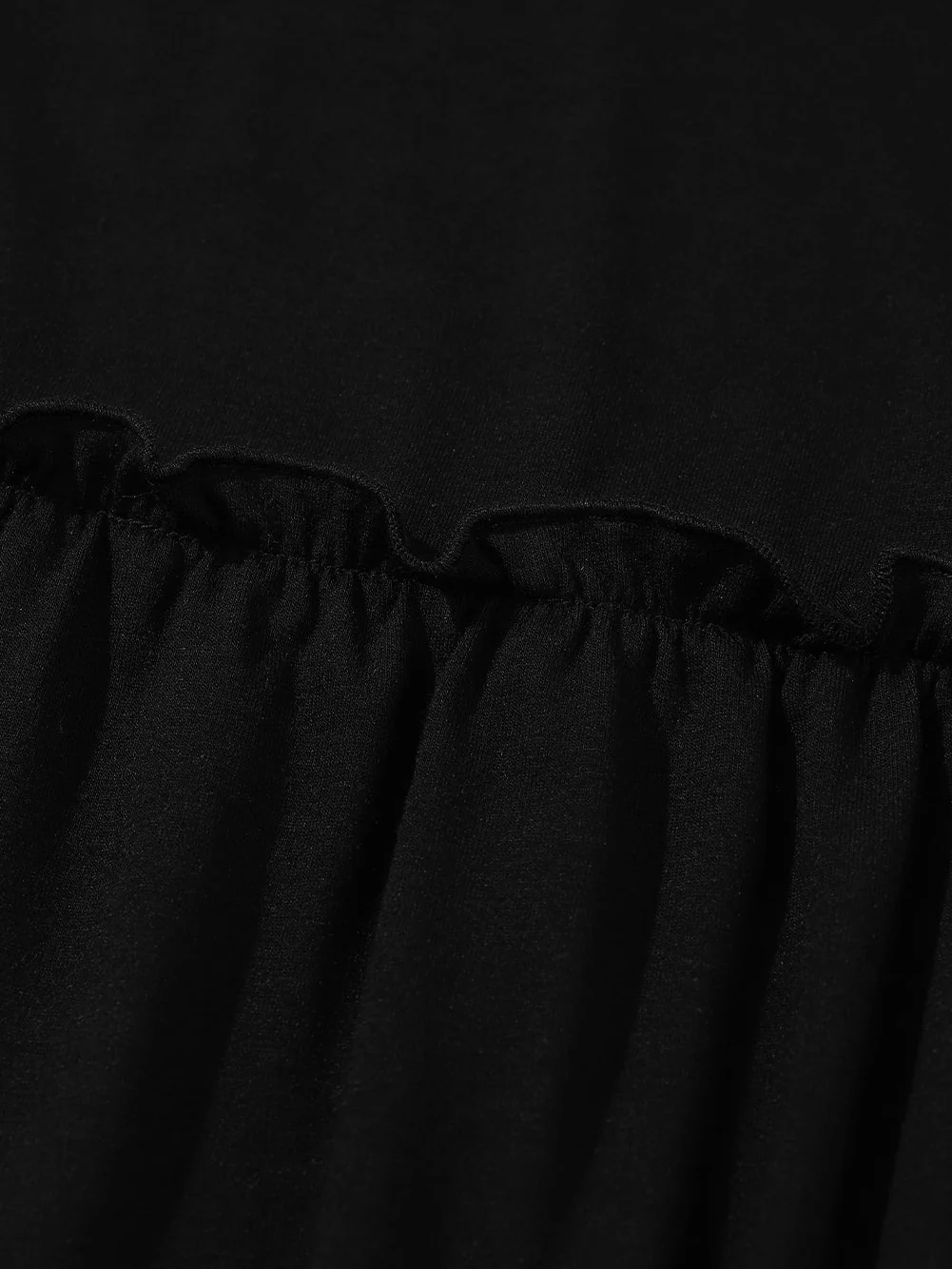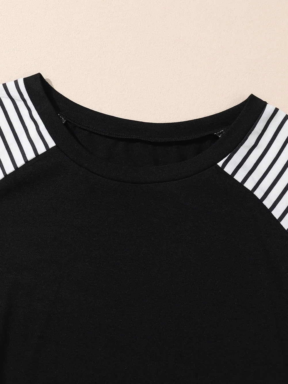 Black Plus Size Striped Leopard Patch Sleeve Ruffle Tiered Dress