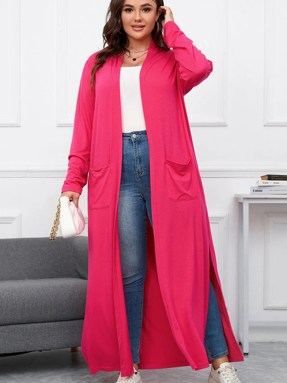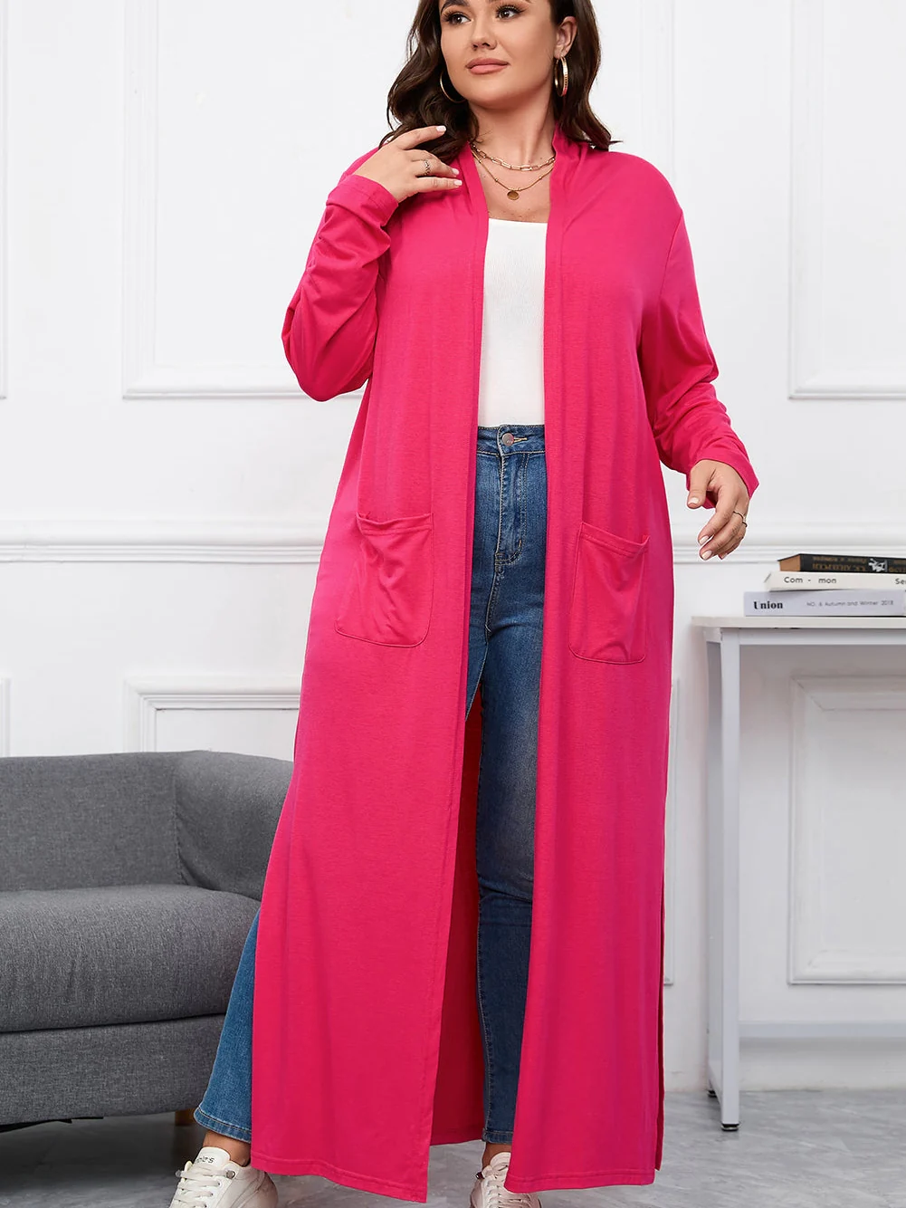 Strawberry Pink Plus Size Side Split Pockets Duster Cardigan