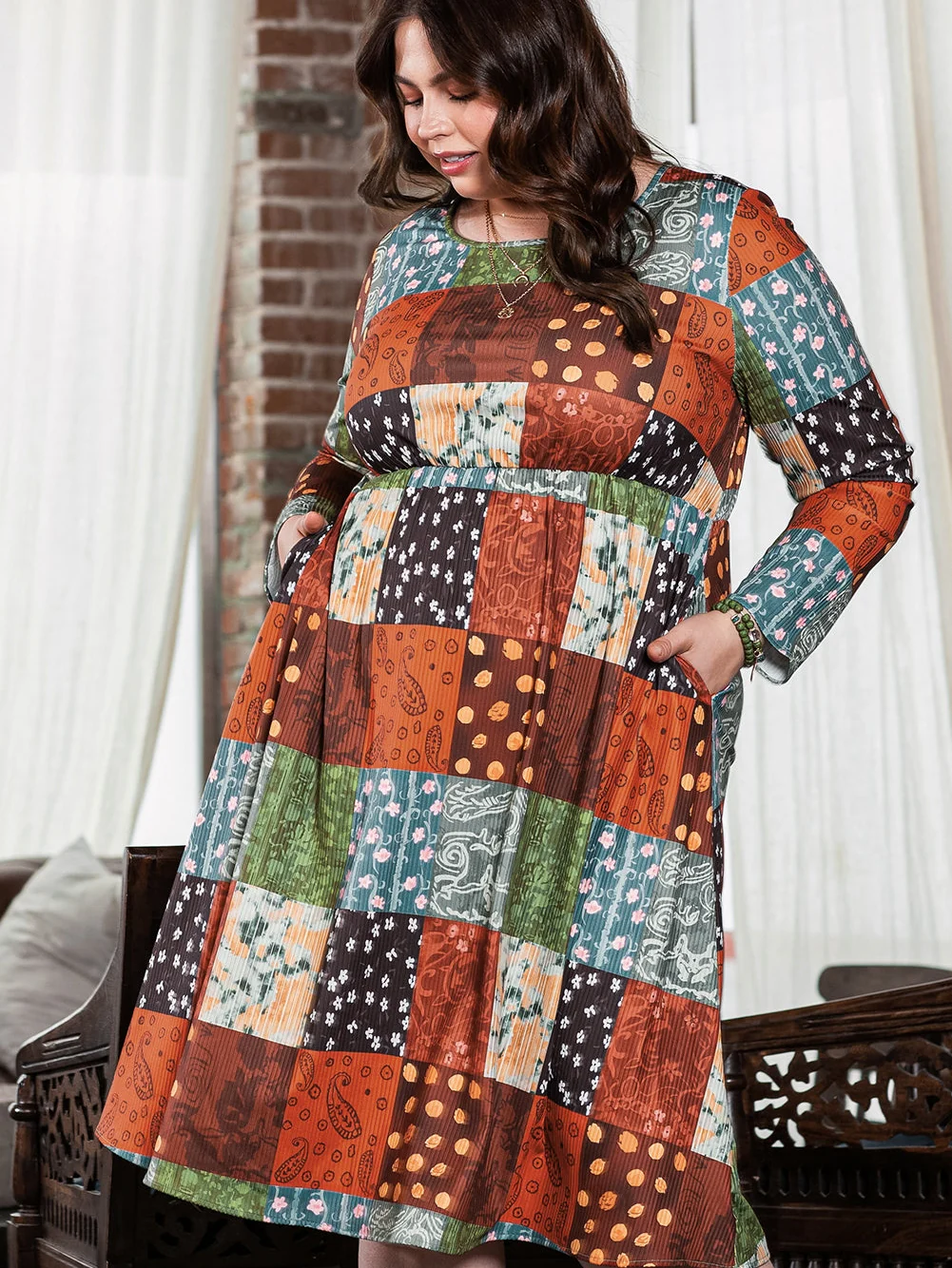 Green Printed Multicolor Western Checkered Plus Size Swing Dress