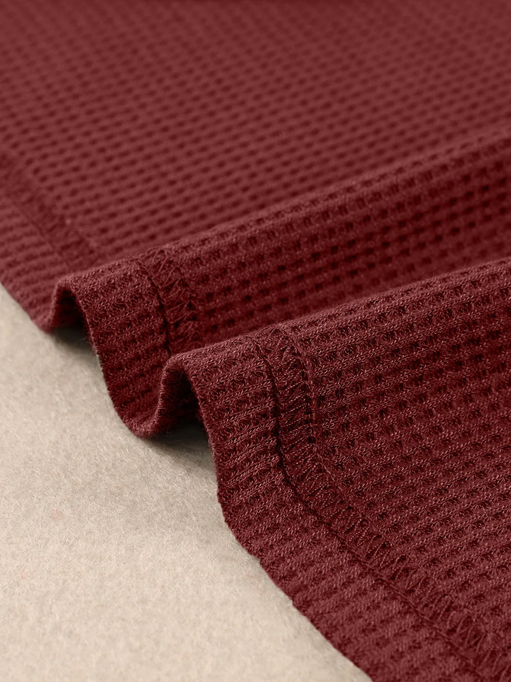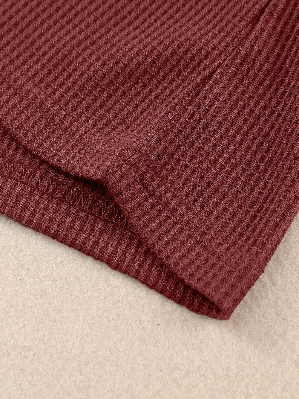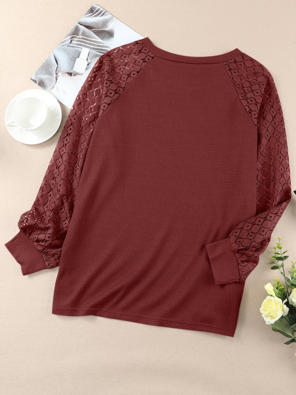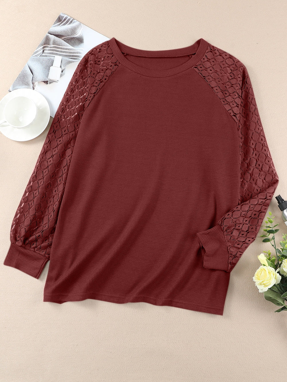 Red Plus Size Contrast Lace Sleeve Waffle Knit Top