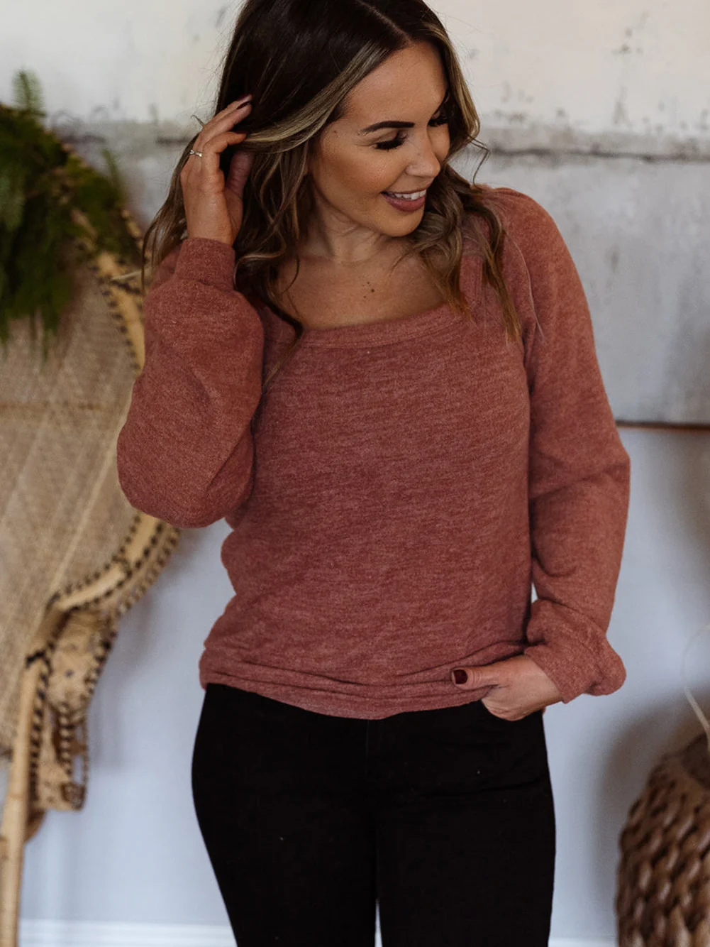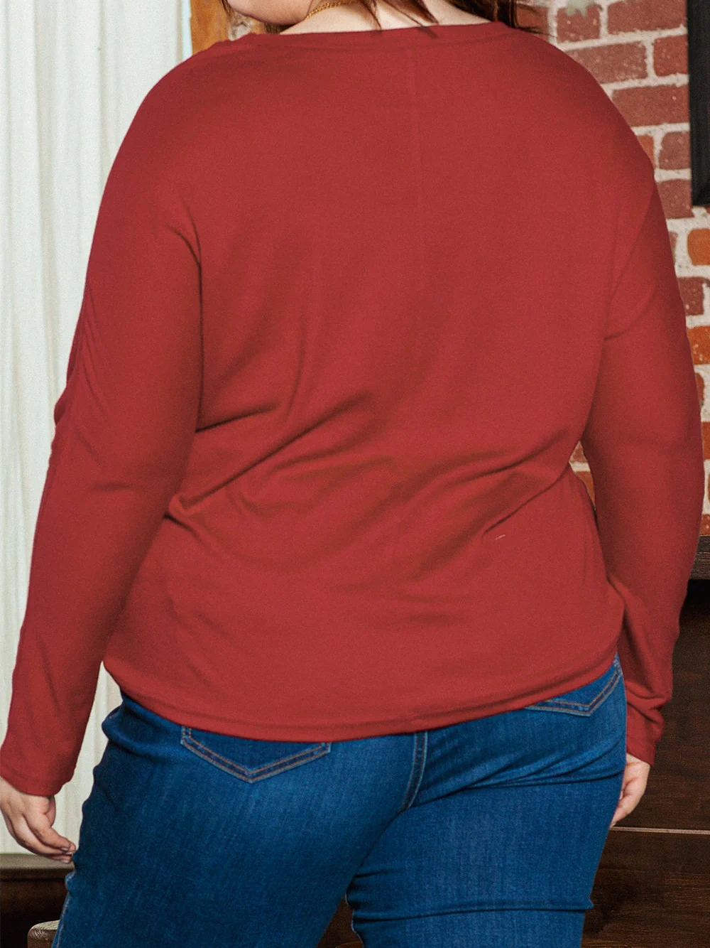 Red Dahlia Piping Detail Plus Size Long Sleeve Top