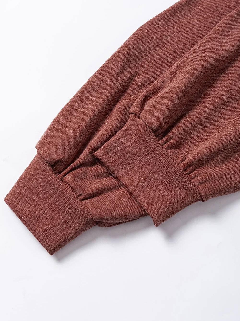Gray Printed Leopard Balloon Sleeve Thermal Knit Plus Size Top