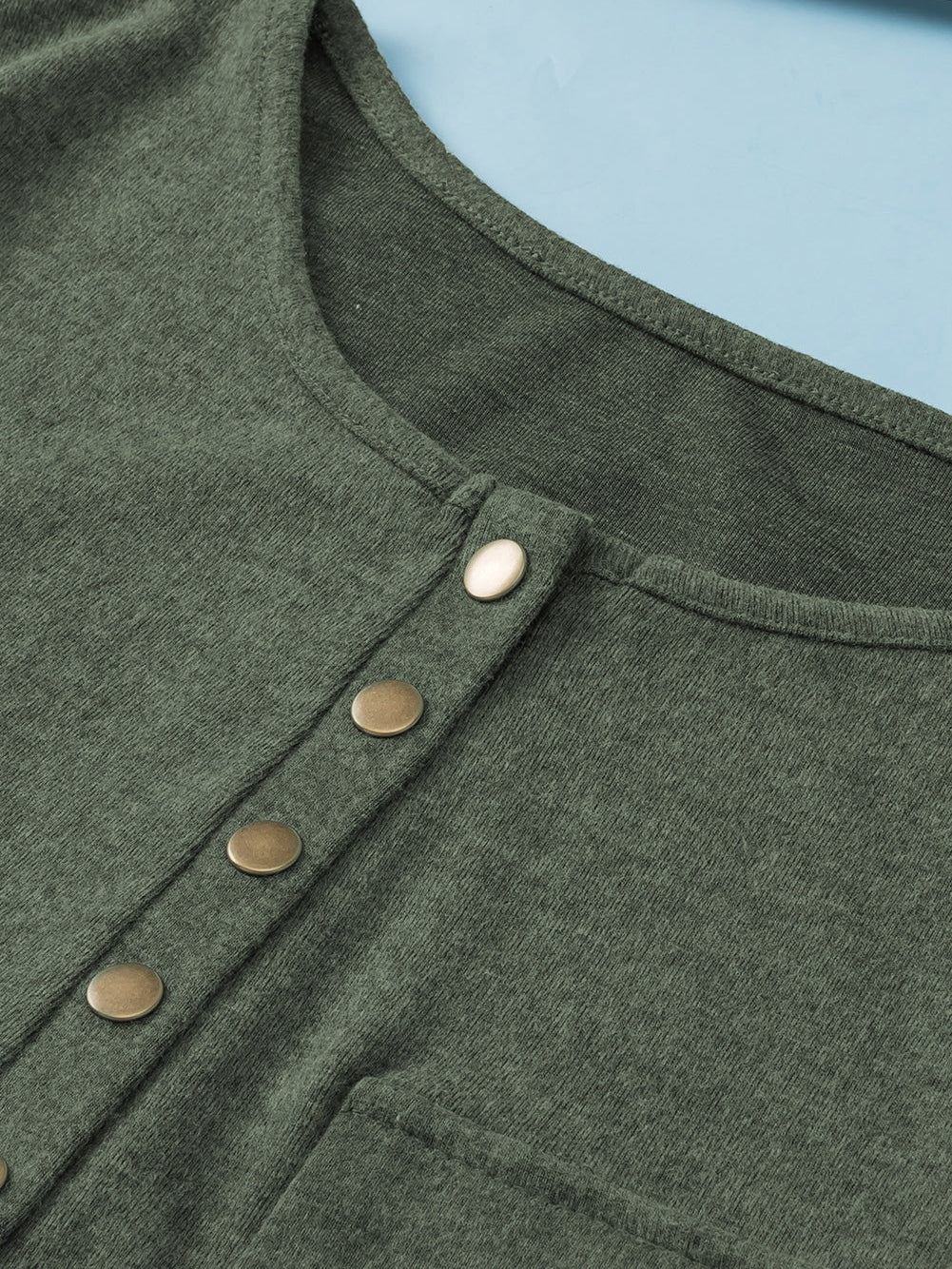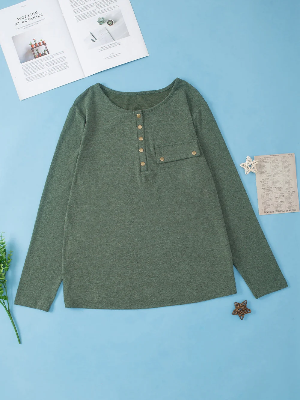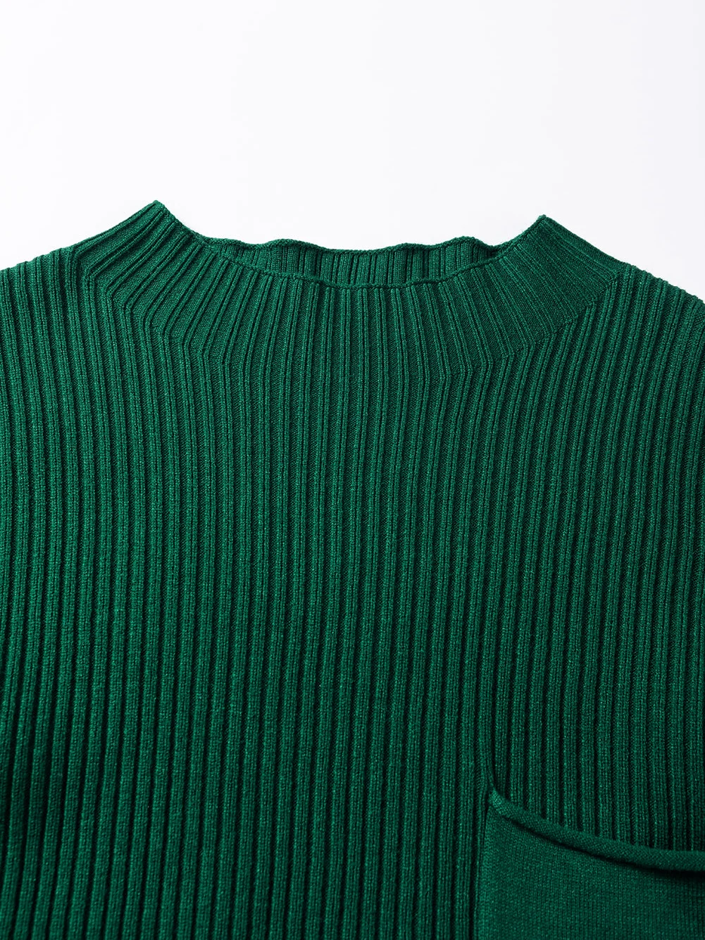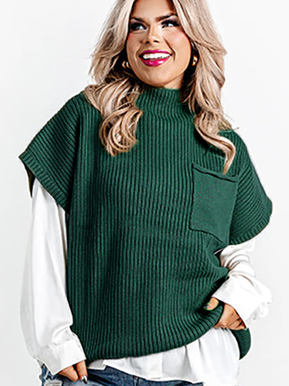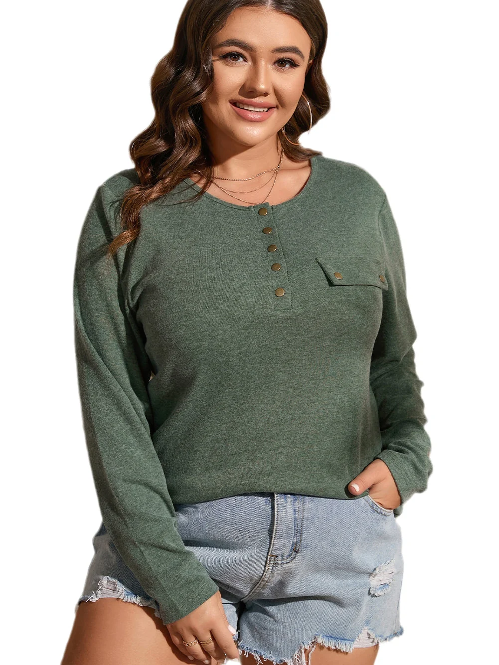 Jungle Green Plus Size Mock Neck Chest Pocket Short Sleeve Sweater