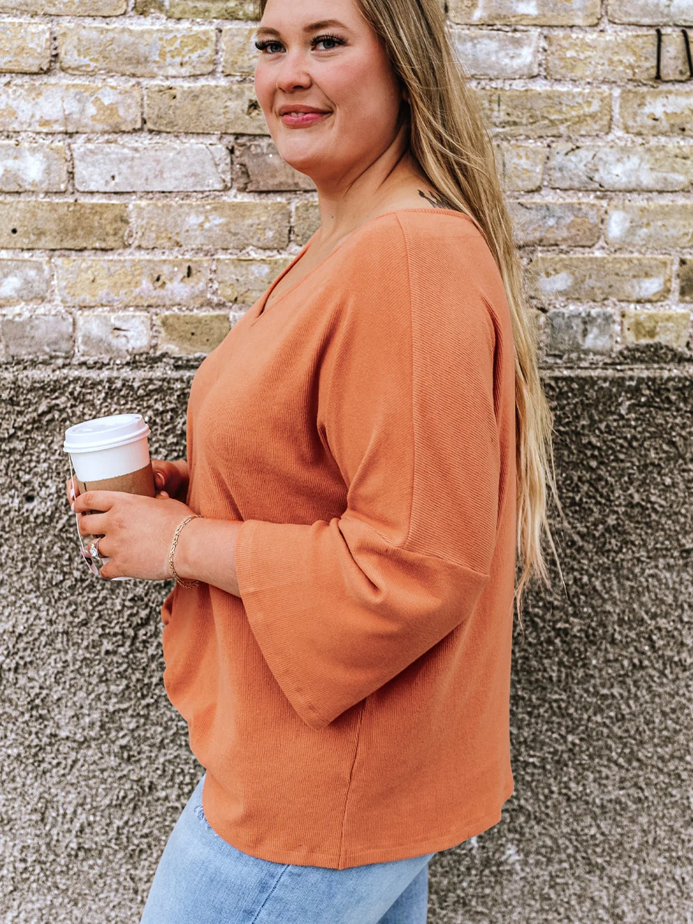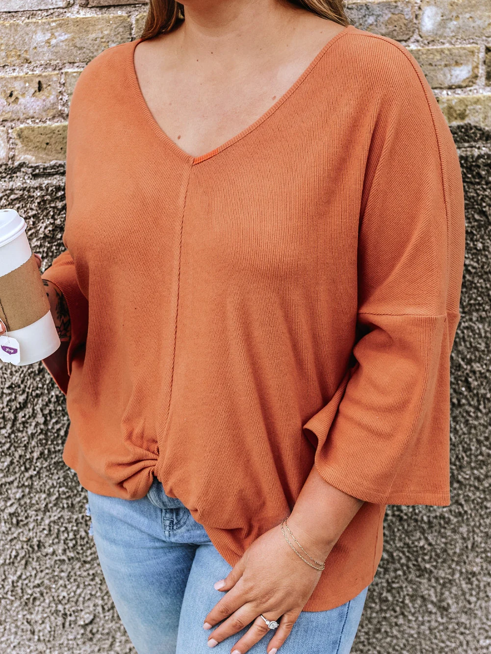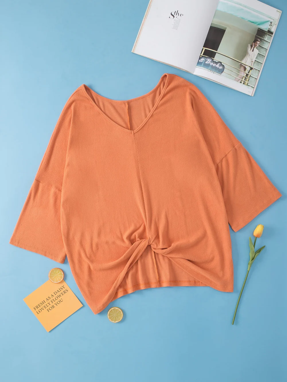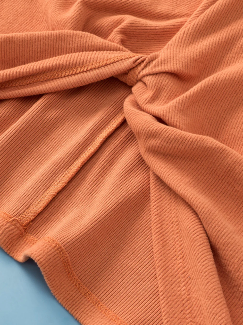 Gold Flame Plus Size Twist Hem Bracelet Sleeve Ribbed Top