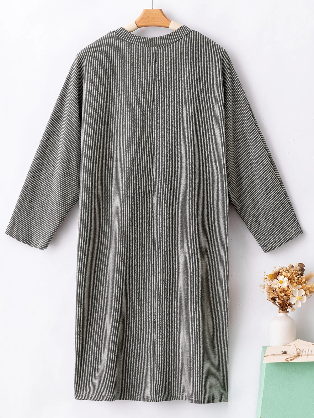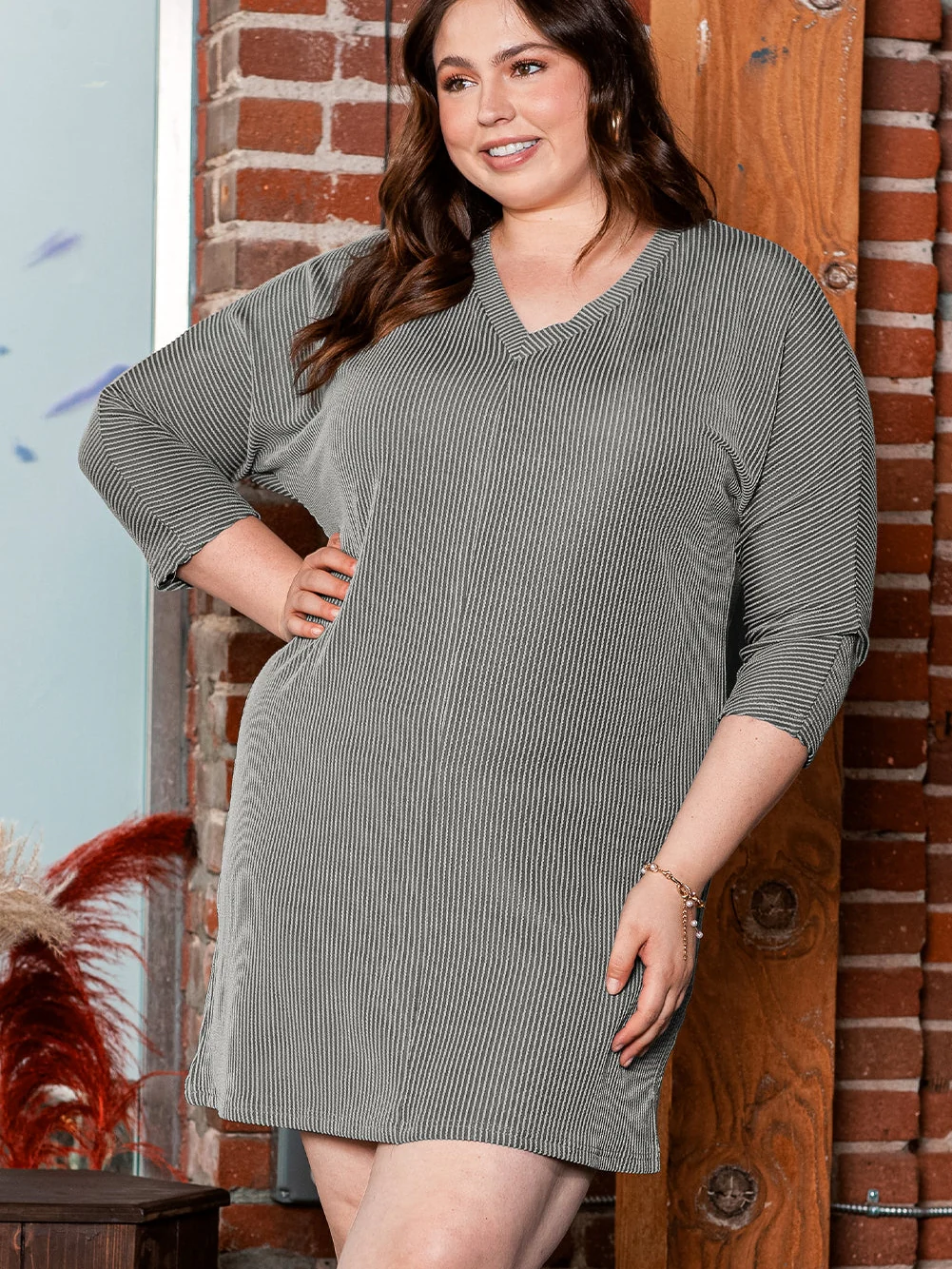 Philippine Gray Plus Size Corded V Neck Shift Dress