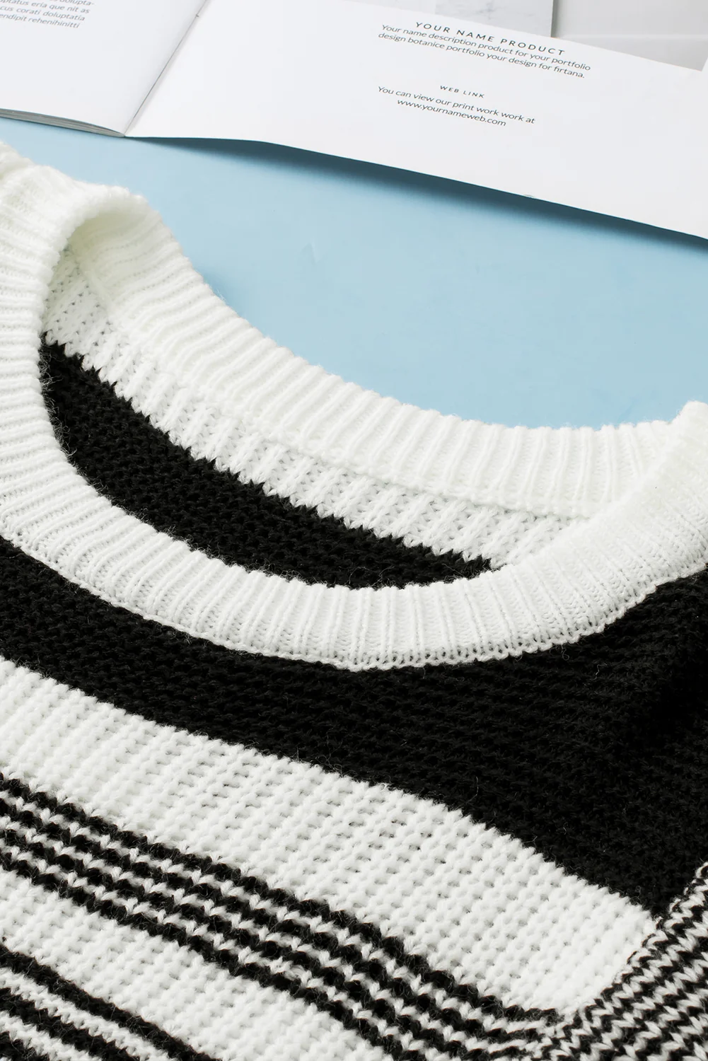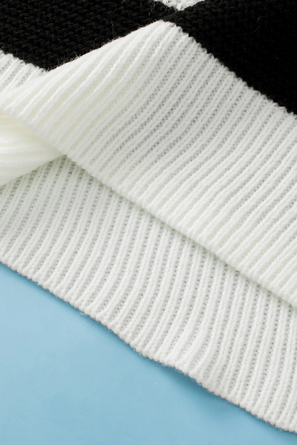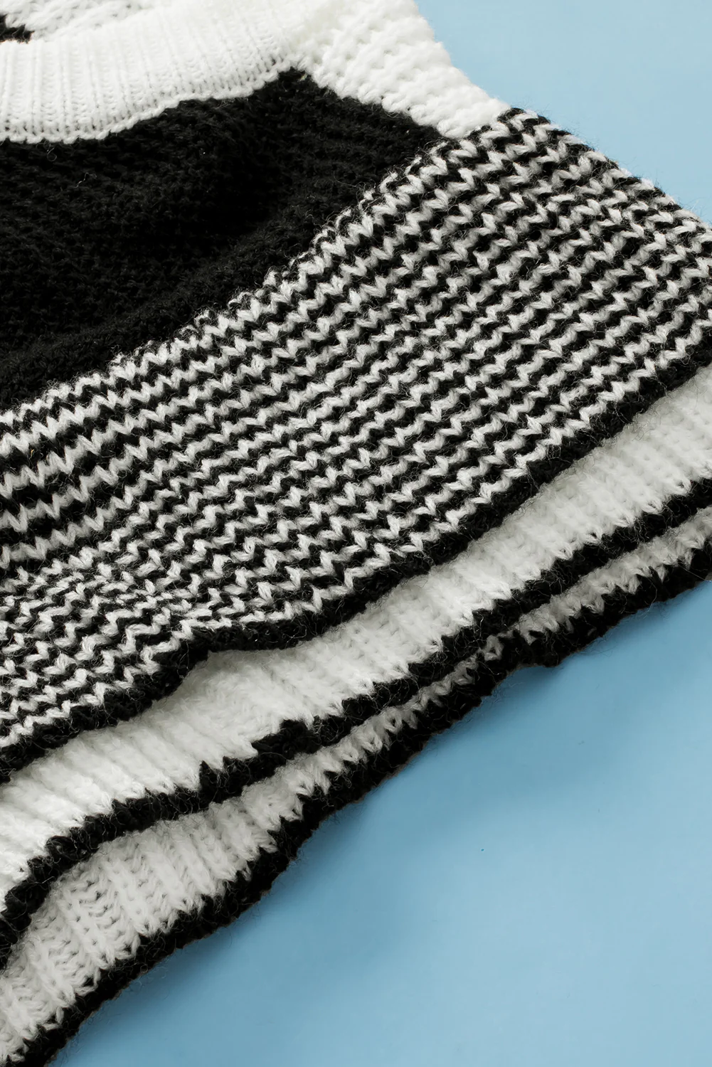Black Plus Size Mixed Striped Print Ruffled Sweater Vest