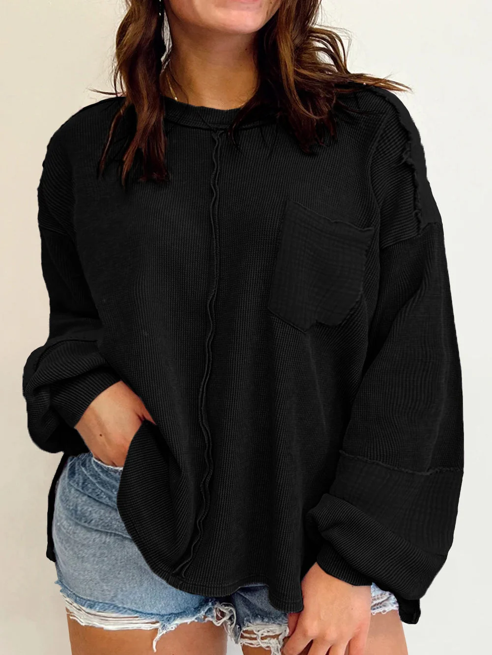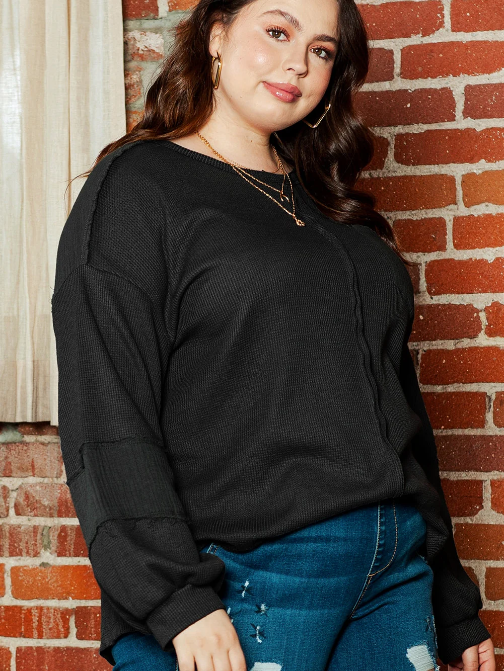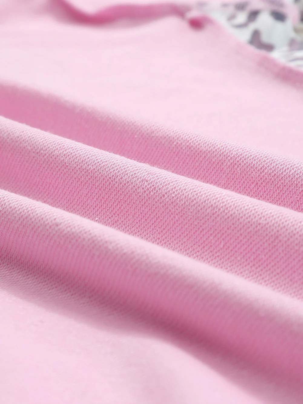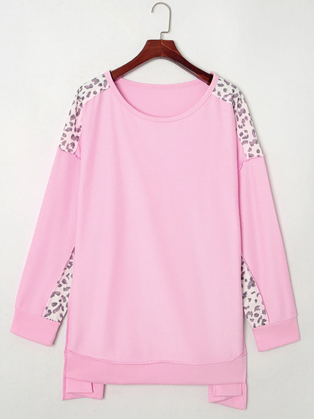 Pink Leopard Patchwork Plus Size Sweatshirt with Exposed Seams