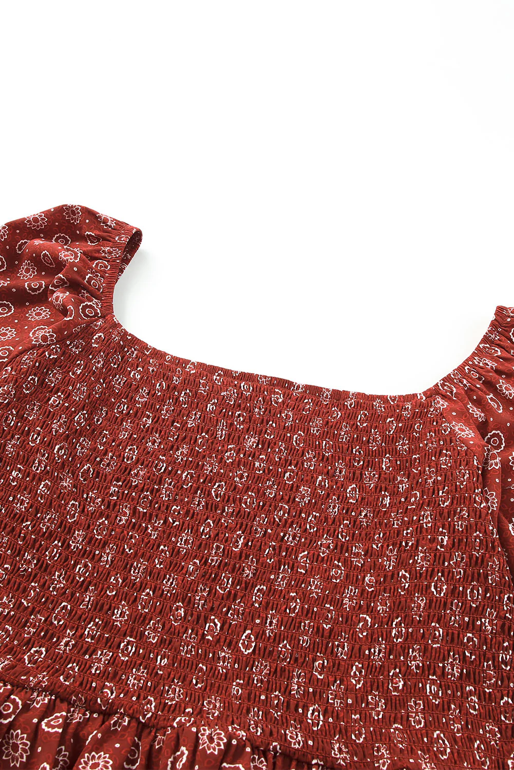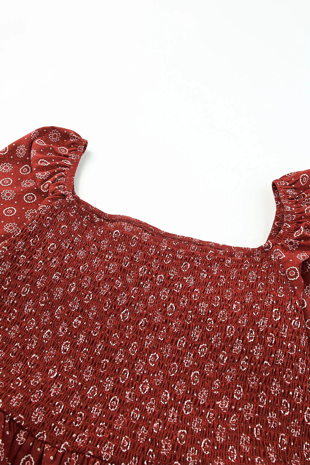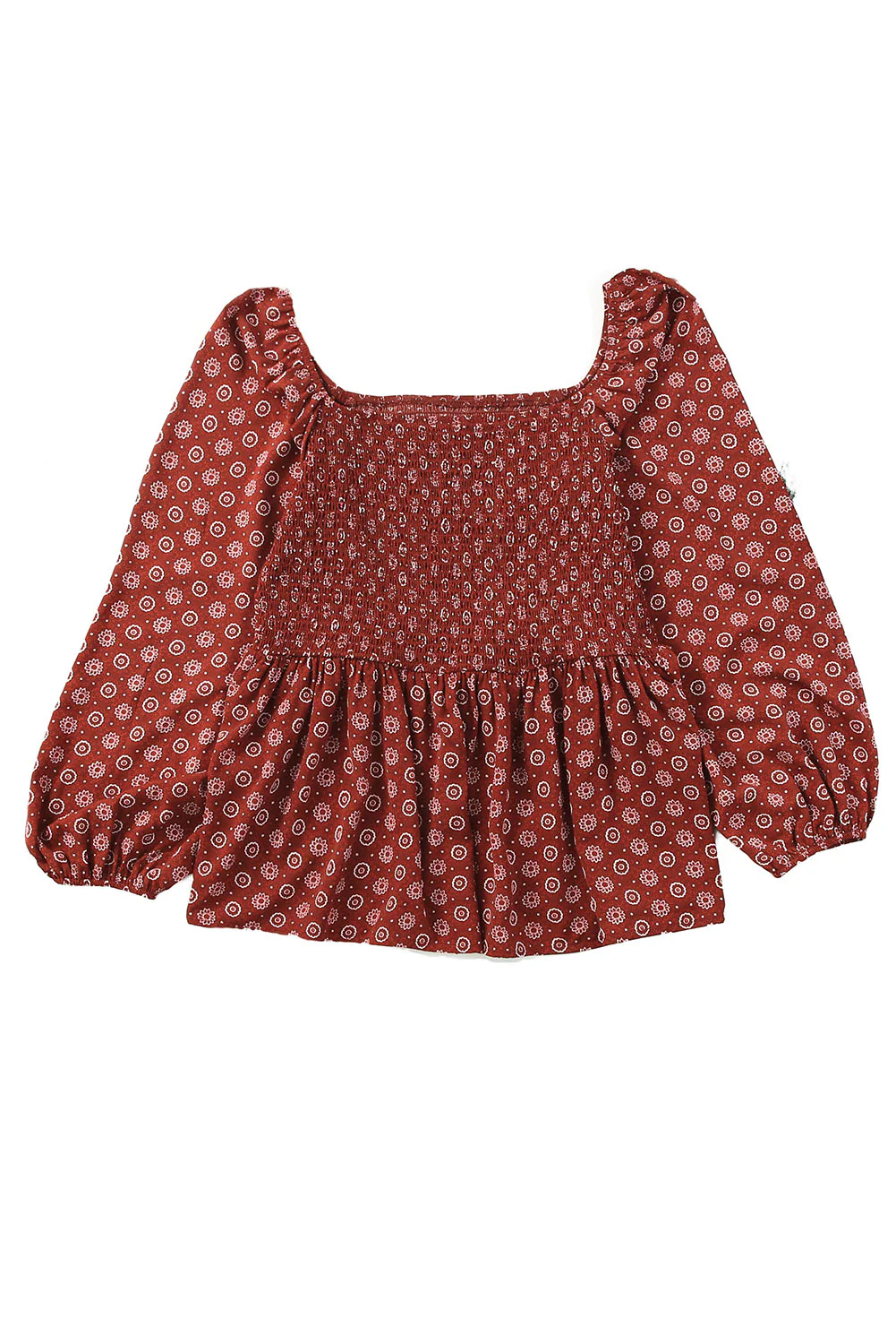 Fiery Red Plus Size Square Neck Printed Peplum Top