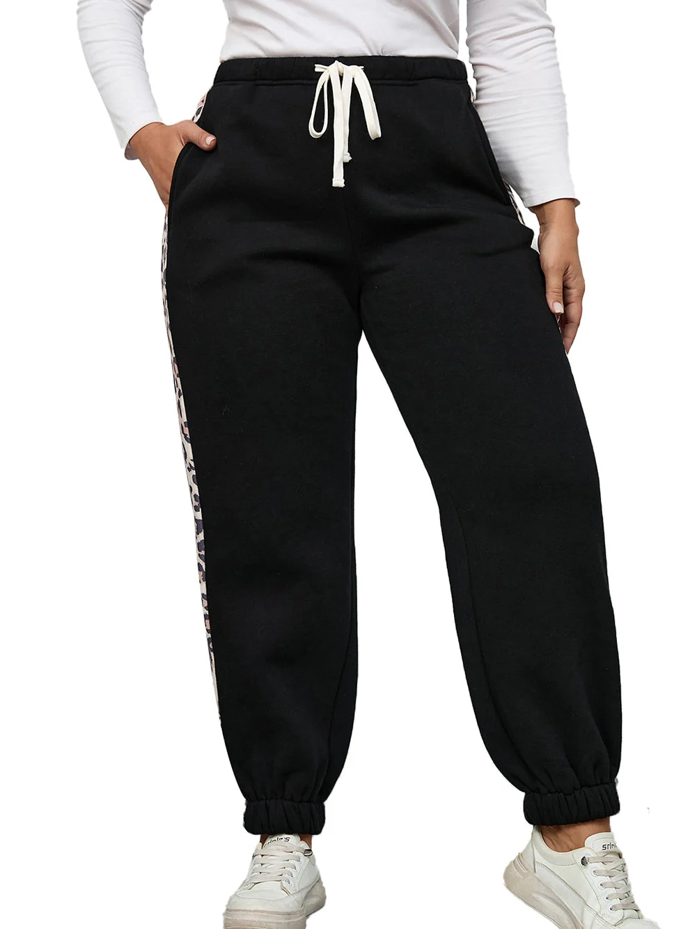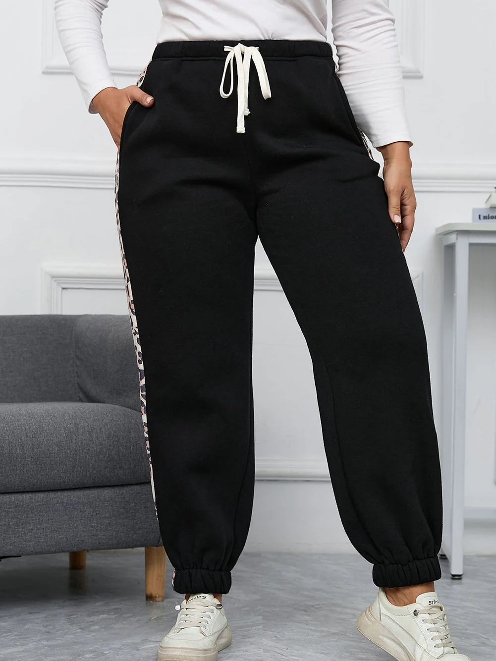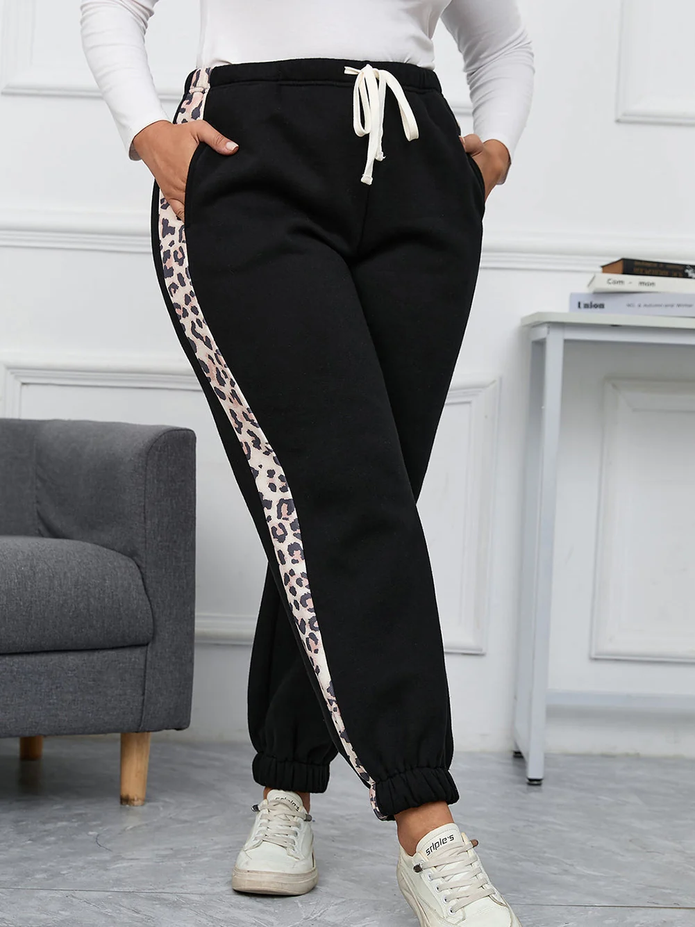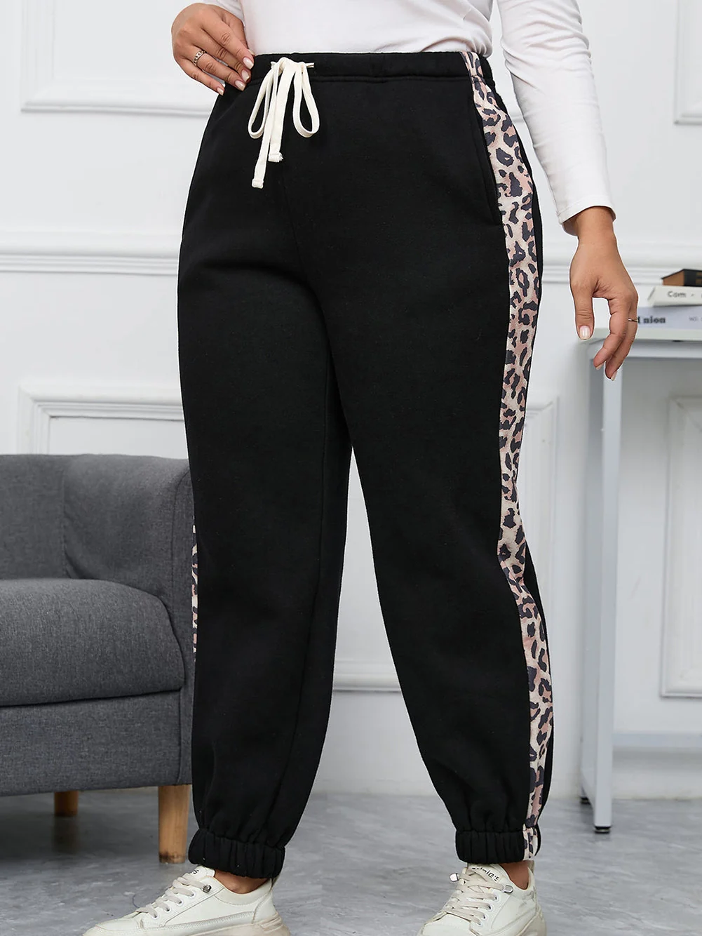 Leopard Patchwork High Waist Joggers for Plus Size Women