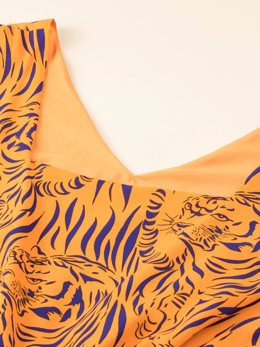 Sunny Plus Size Tiger Stripe V Neck Sleeveless Romper