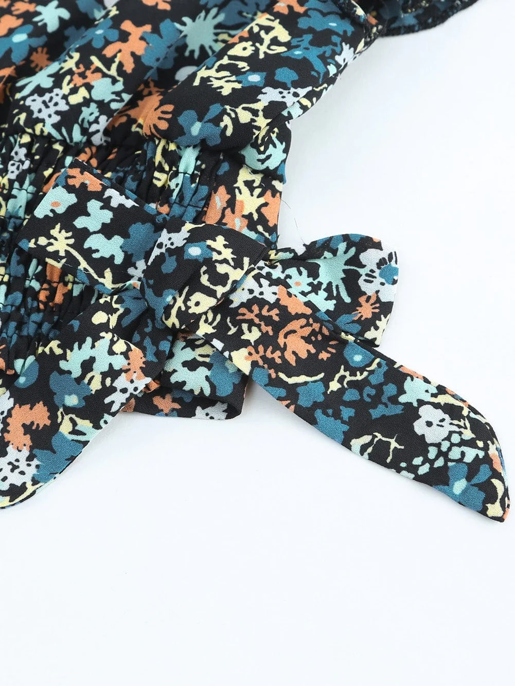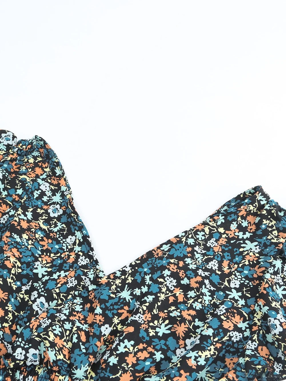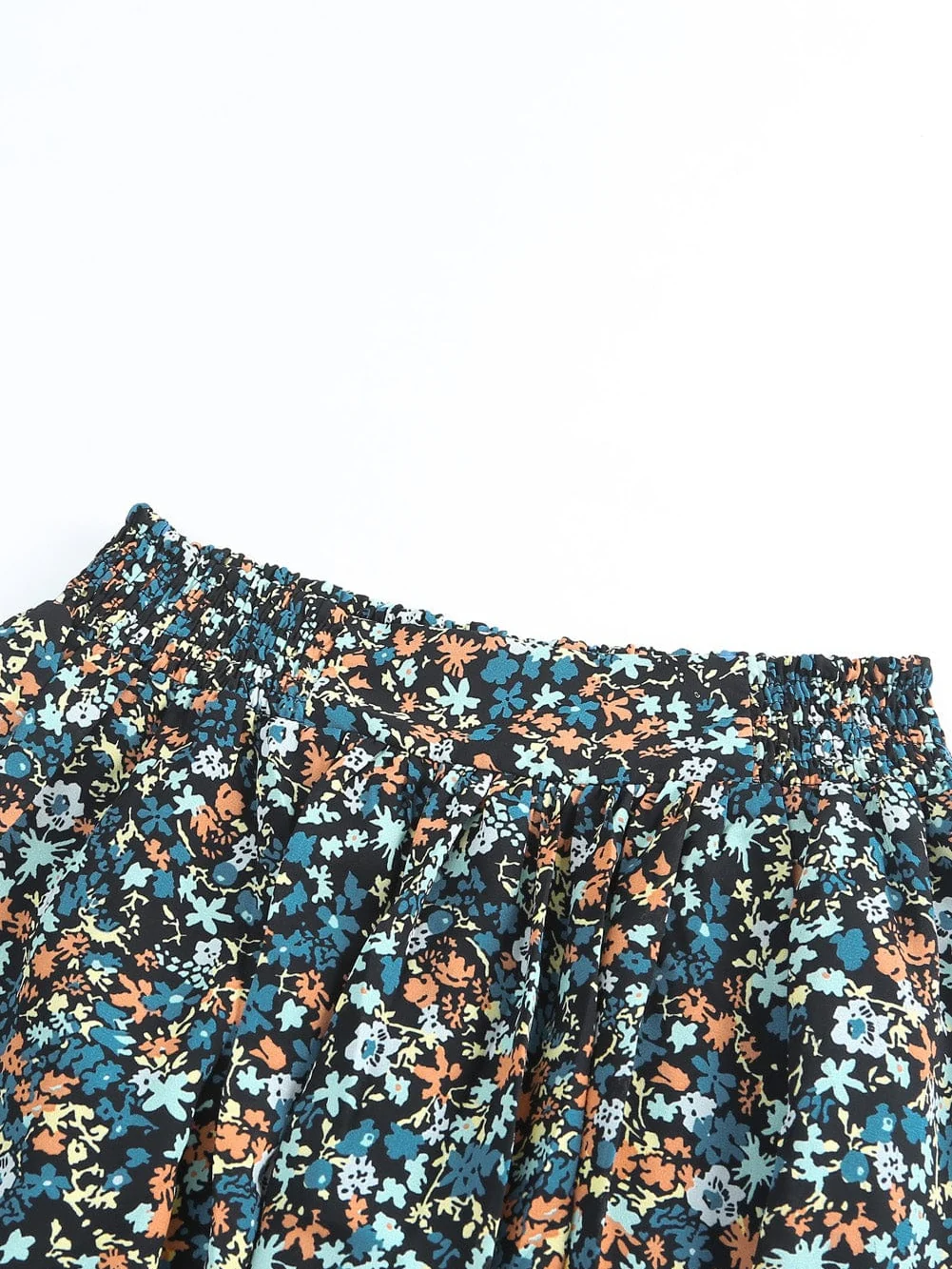 Bohemian Blossom Two-Piece Set with Ruffled Crop Top and Maxi Skirt