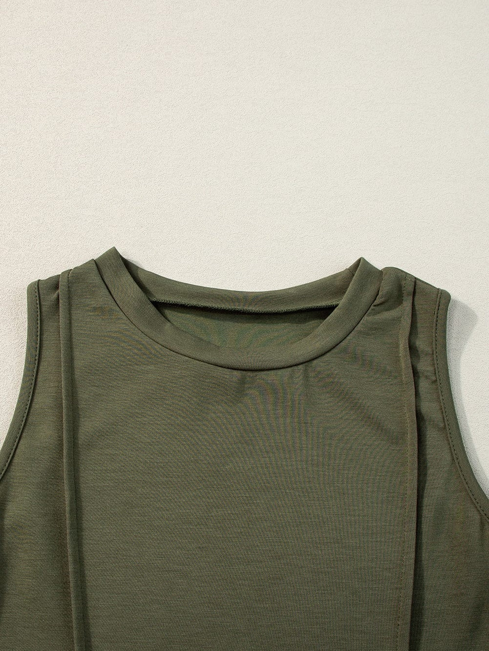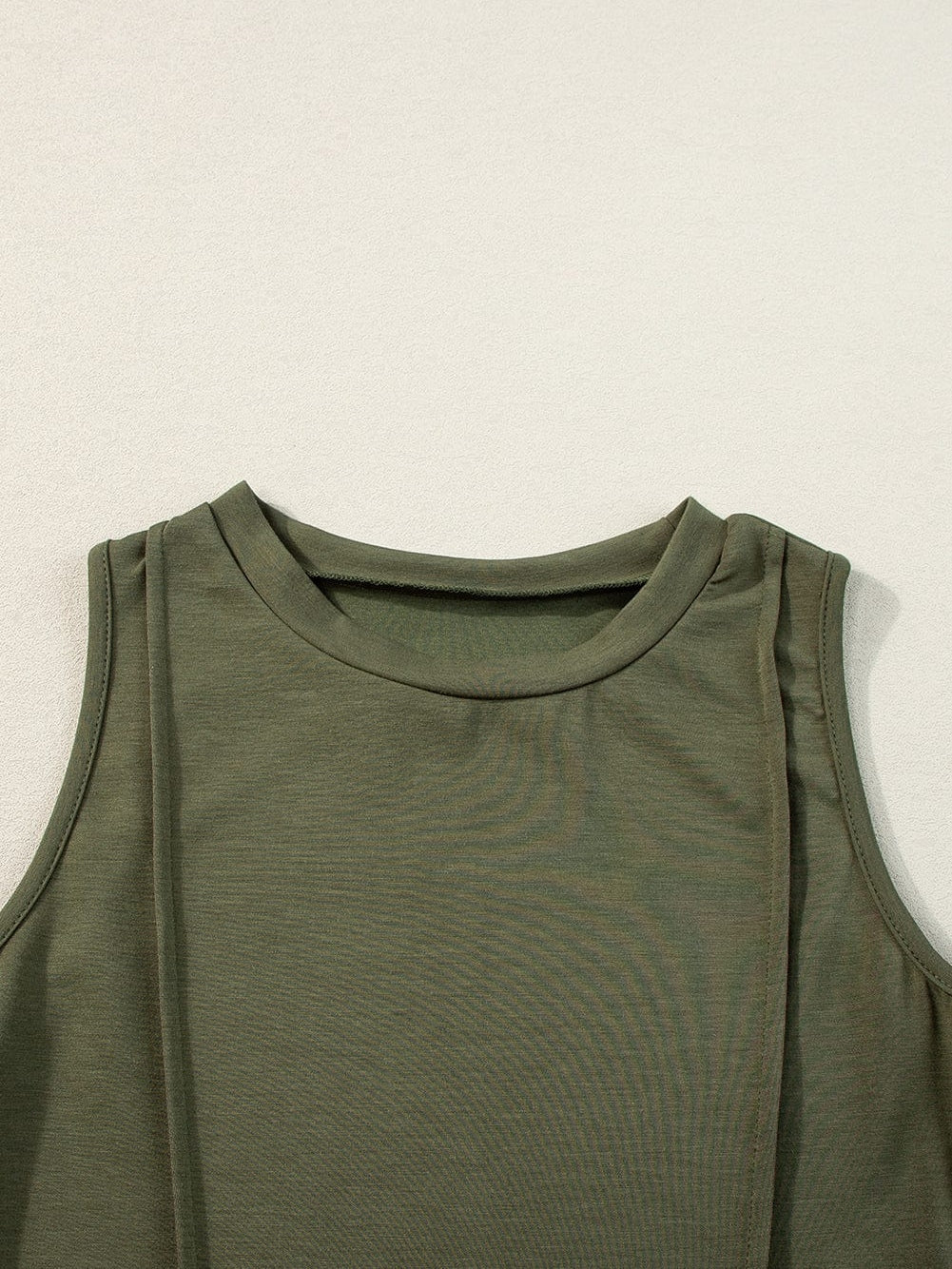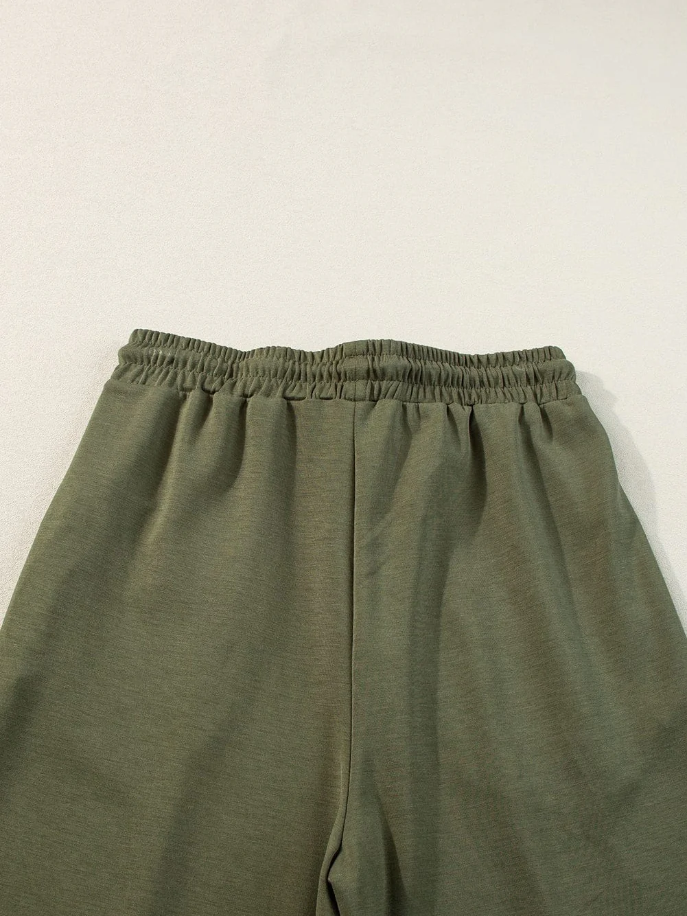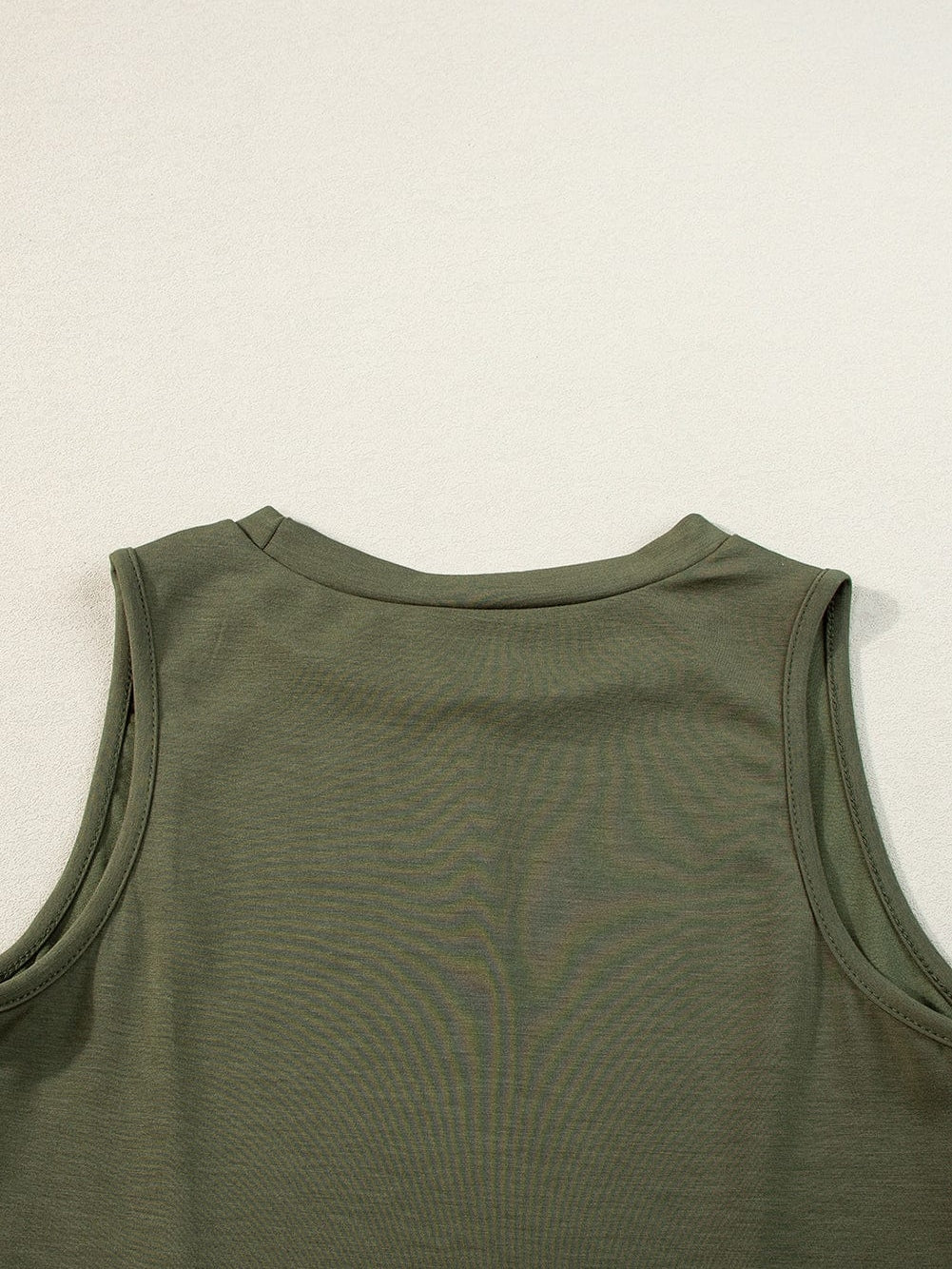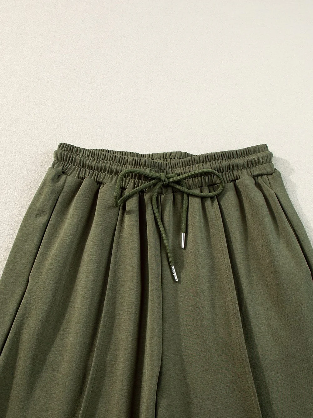 Jungle Green Chic Sleeveless Top and Wide Leg Pants Set