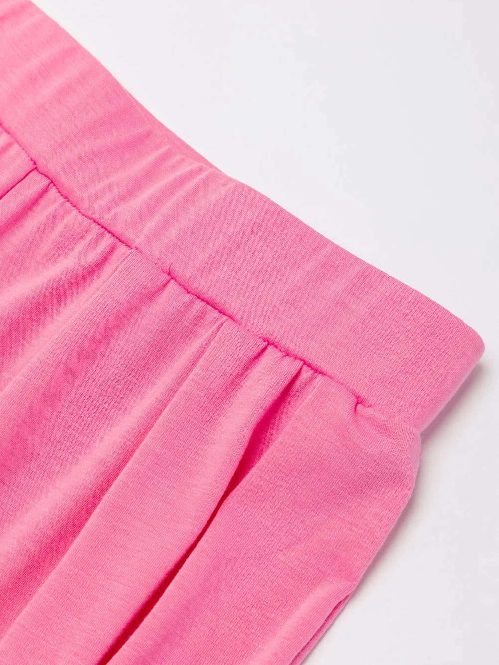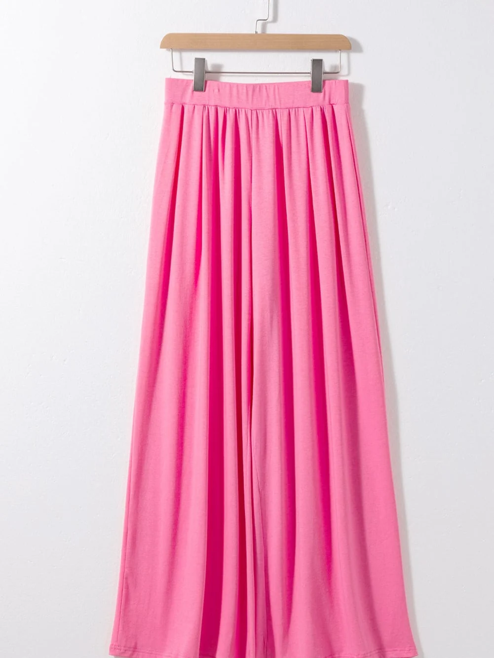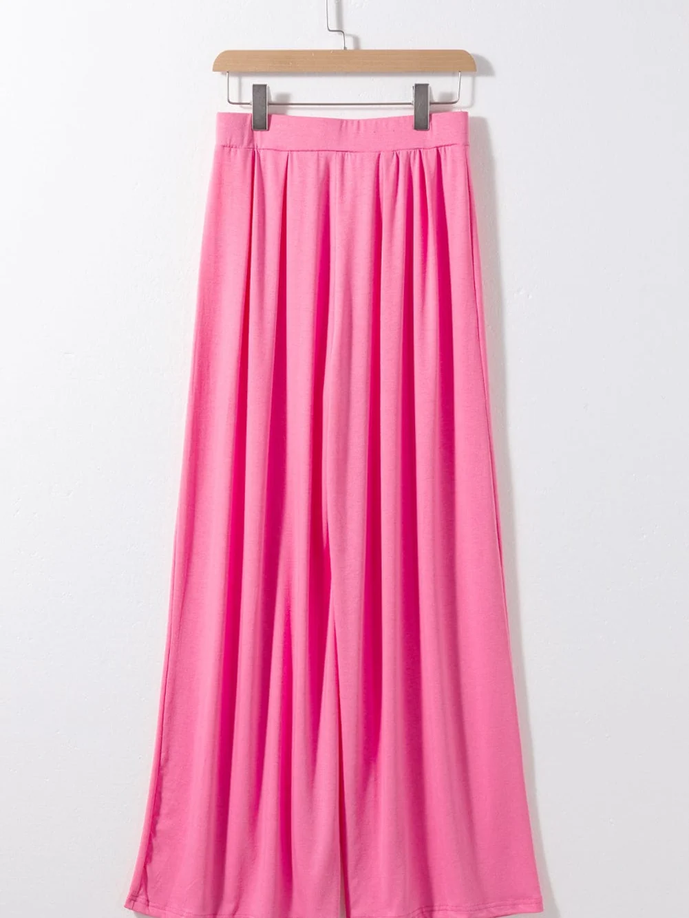 Strawberry Pink Elegant Crop Top and Wide Leg Pants Set