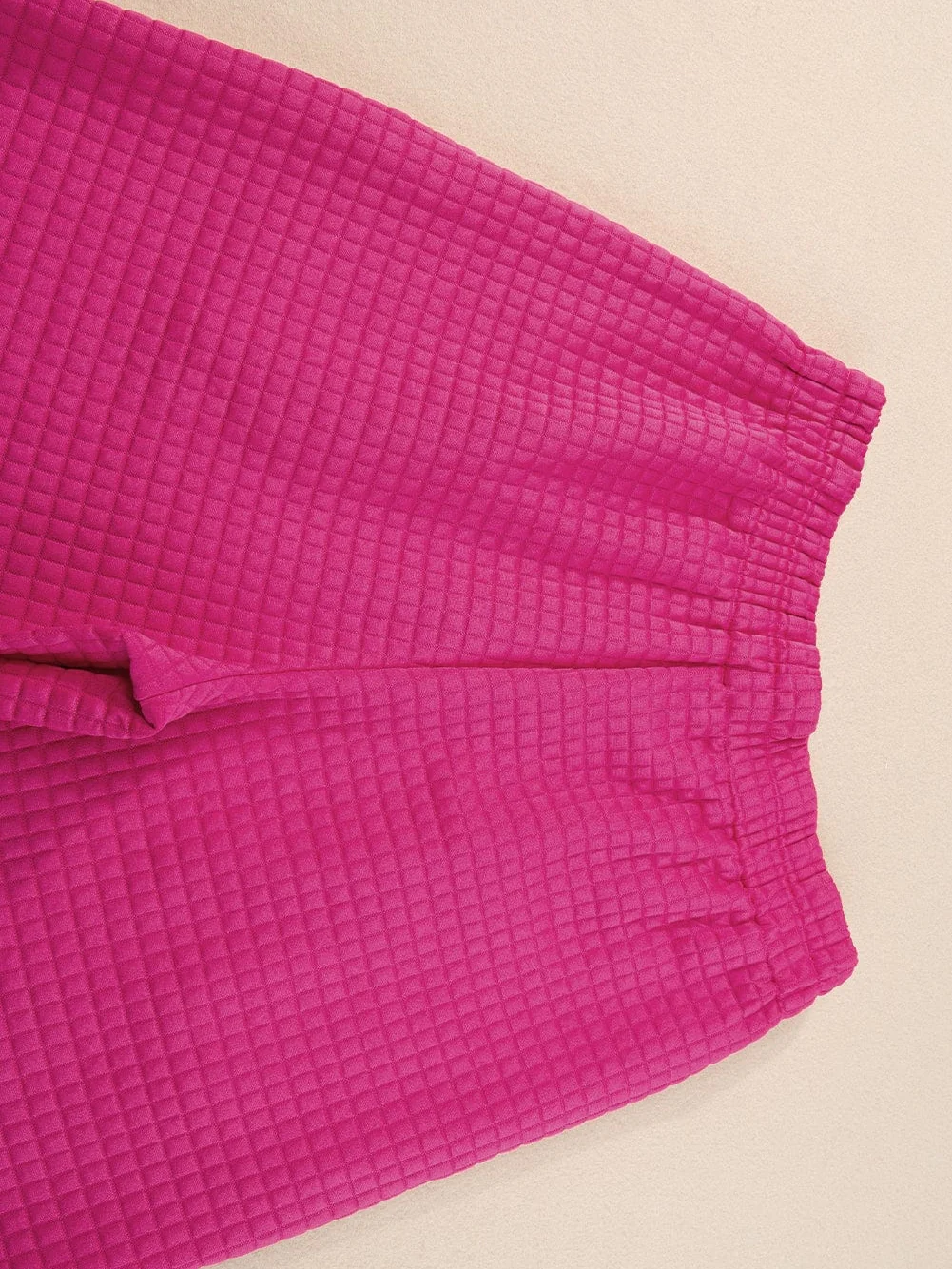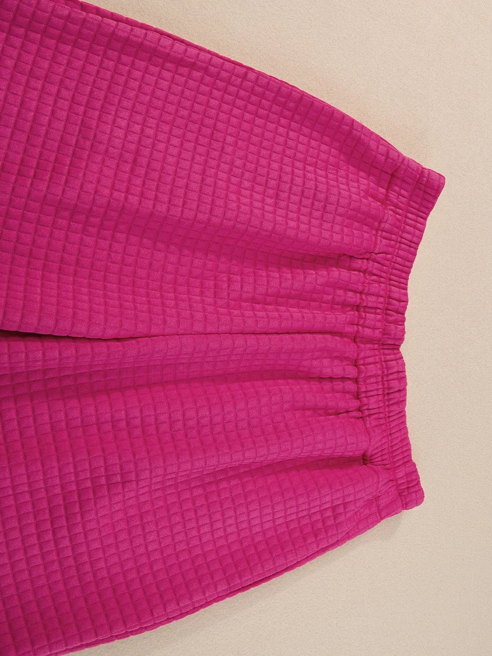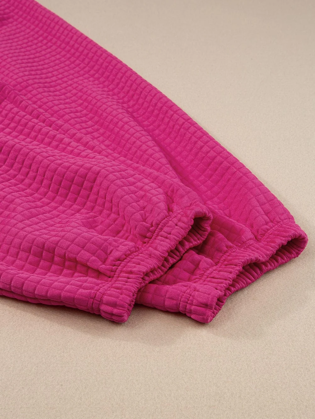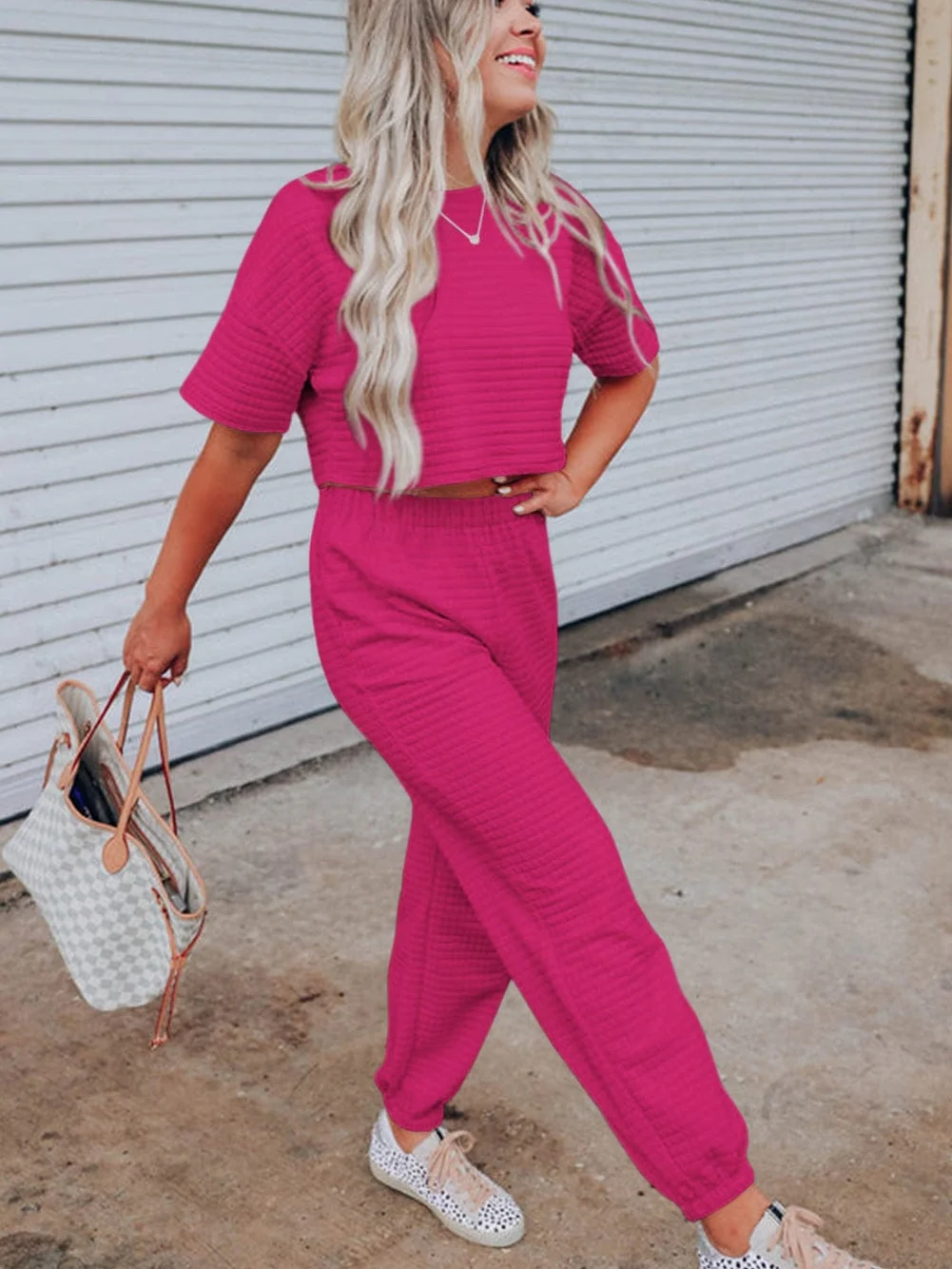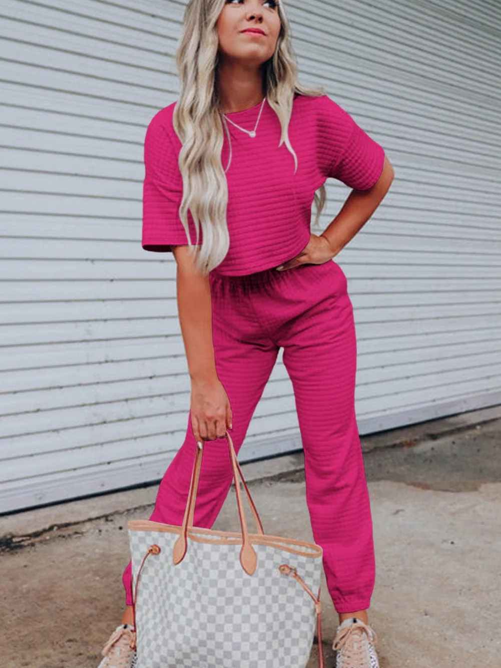 Rose Red Textured Crop Tee and Jogger Pants Ensemble