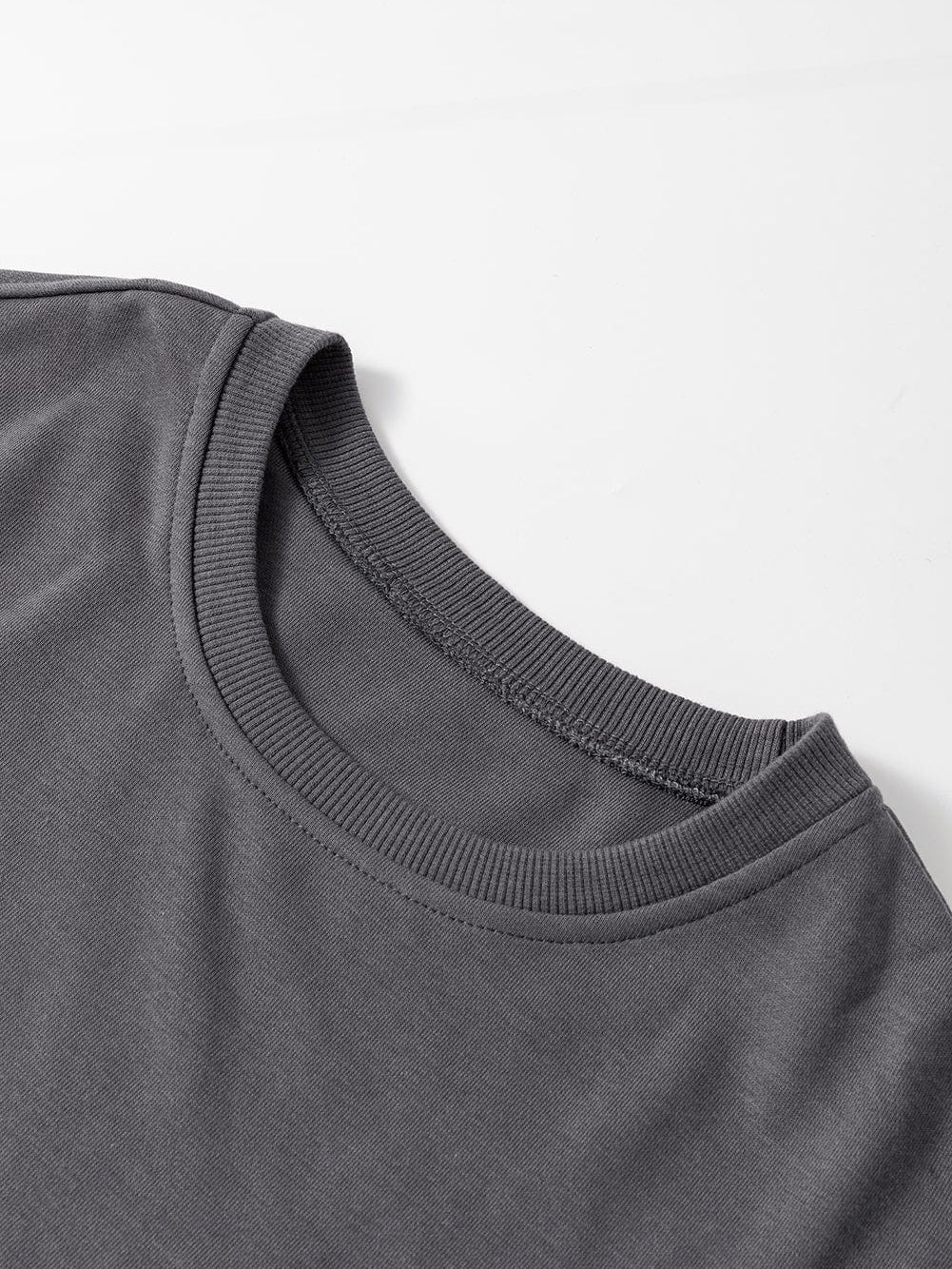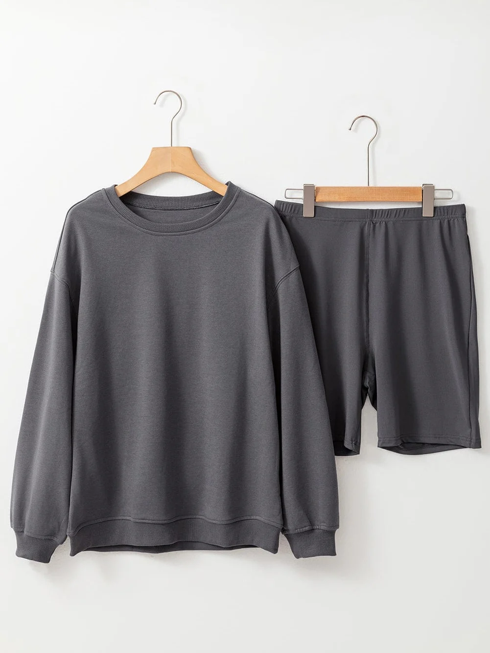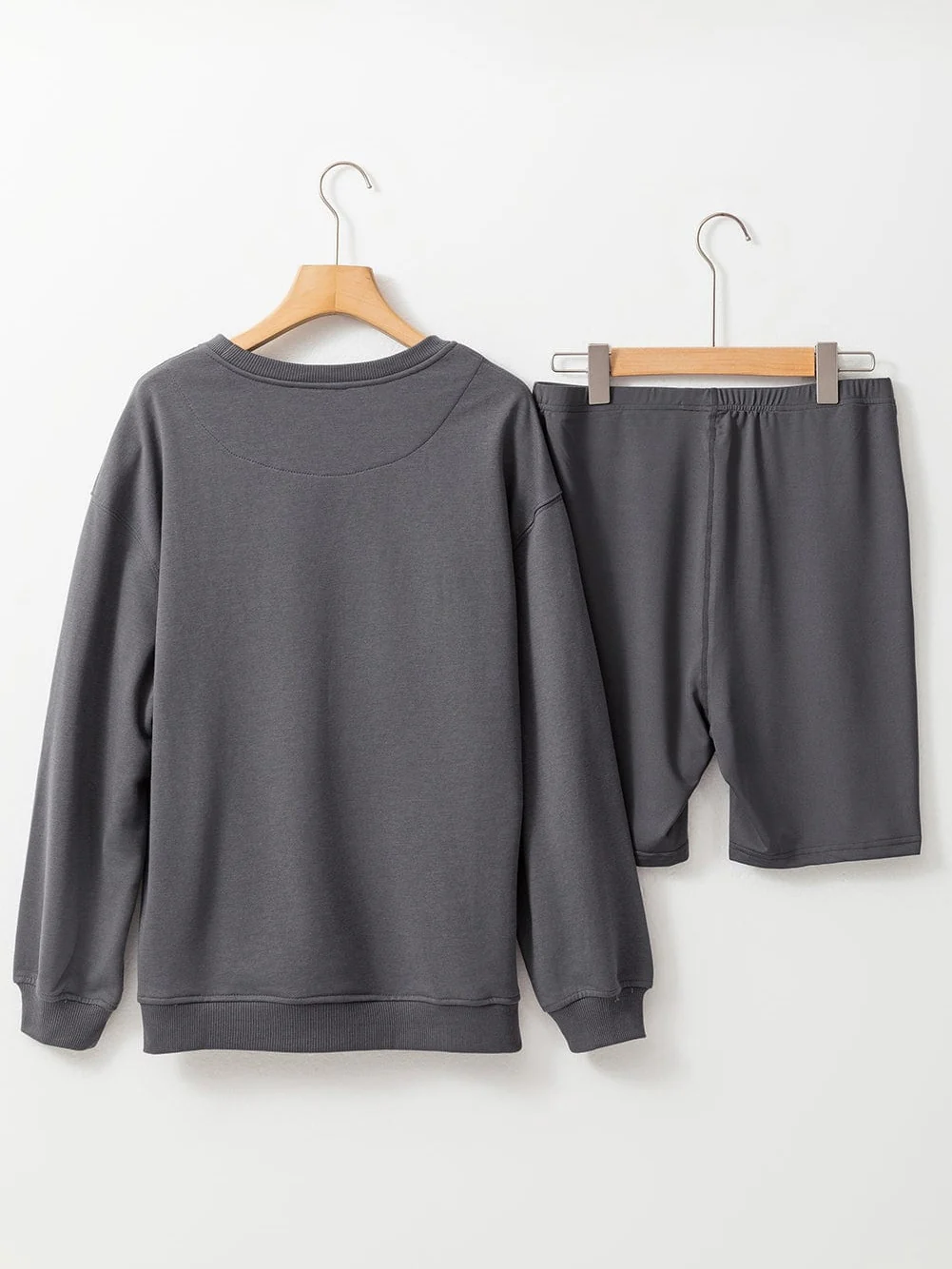 Dark Grey Casual Two Piece Set with Long Sleeve Sweatshirt and High Waist Shorts