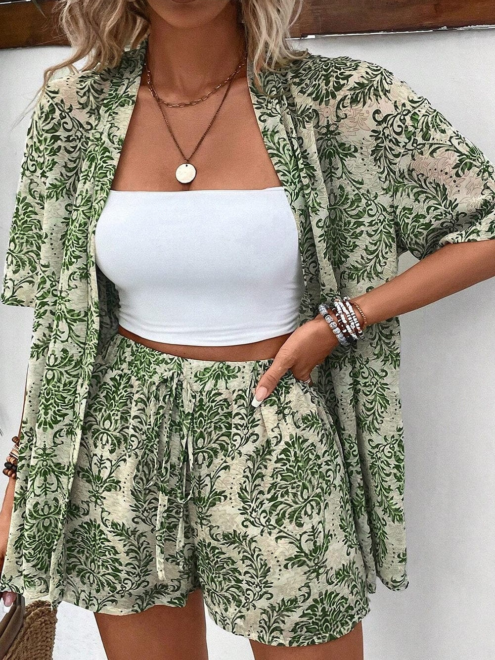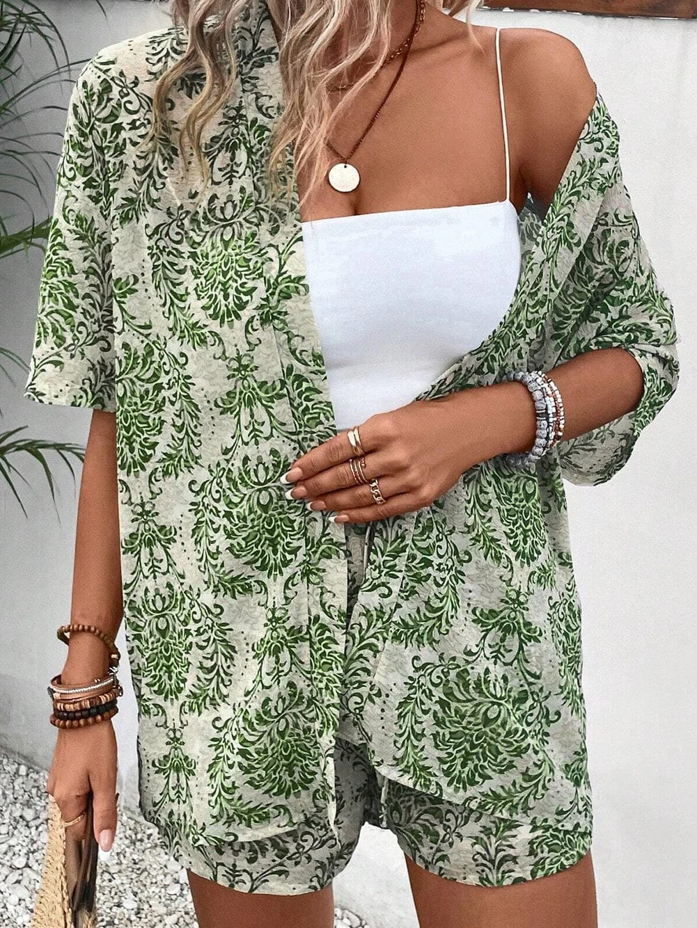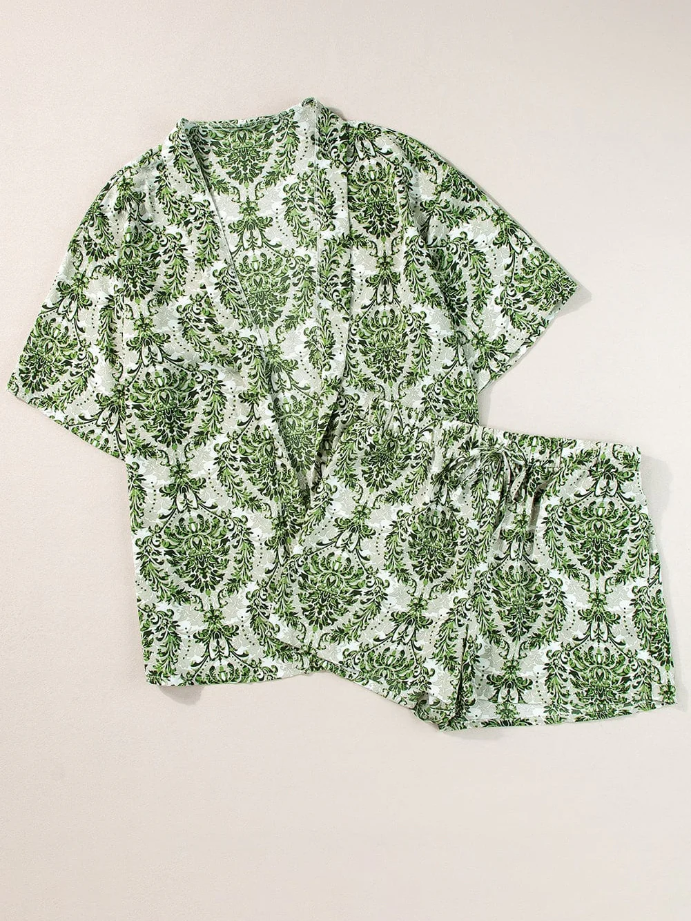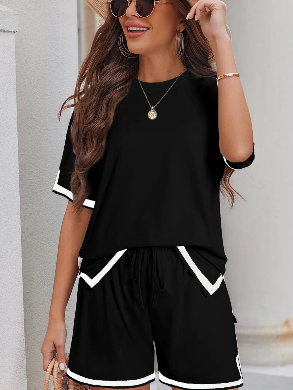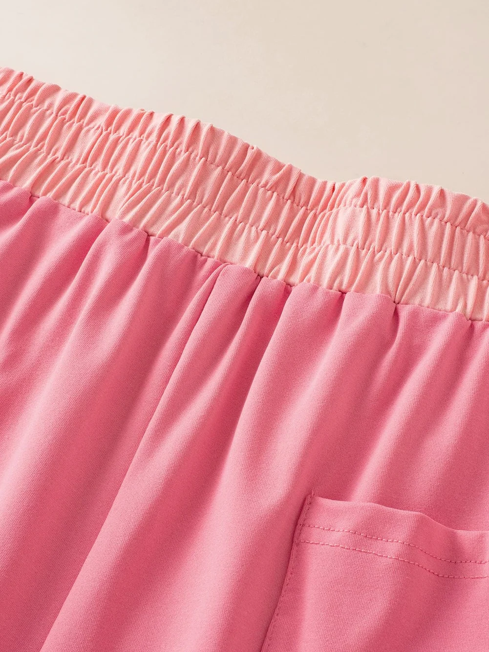 Peach Blossom Colorblock Cap Sleeve Tee & Shorts Ensemble