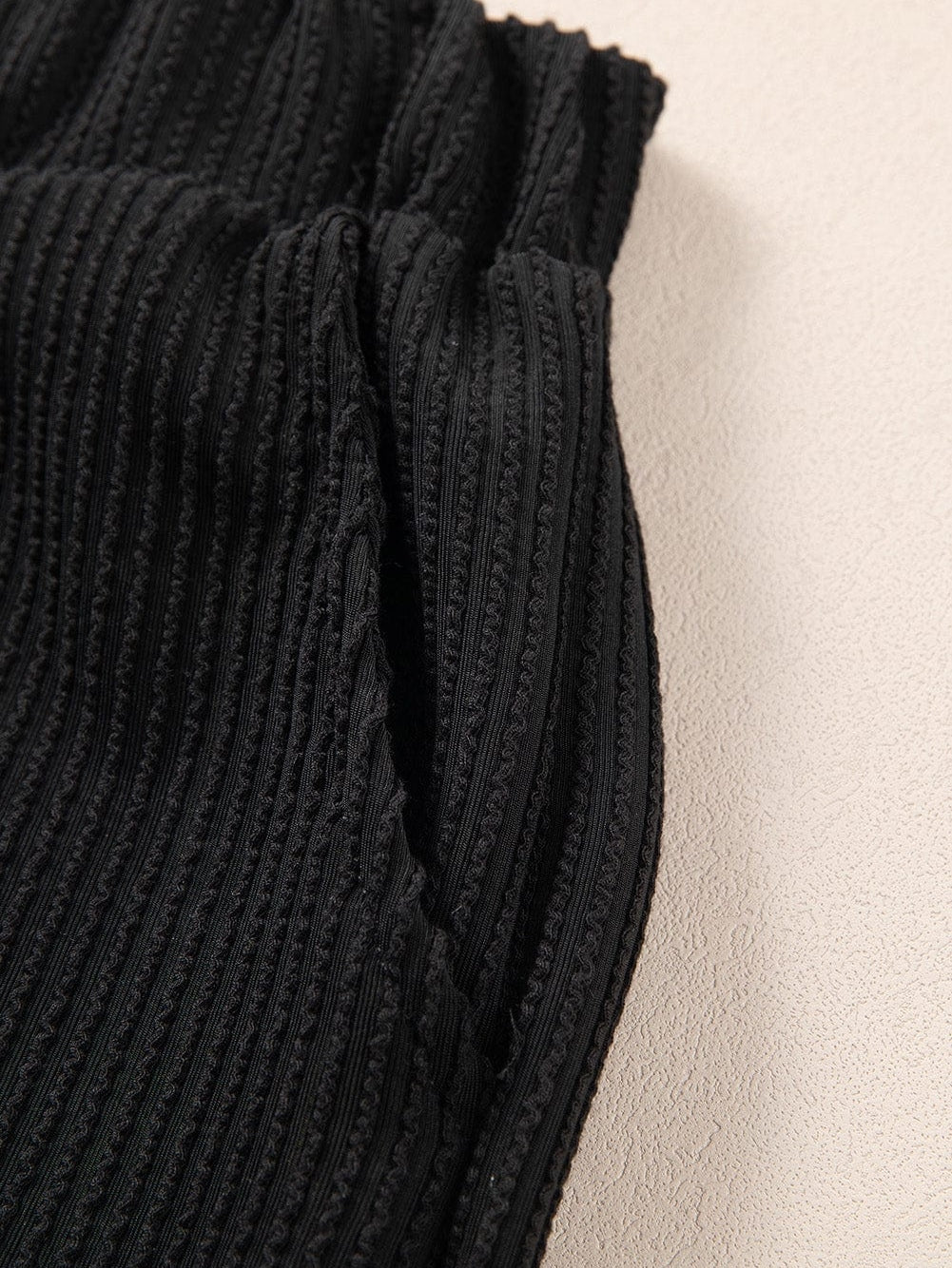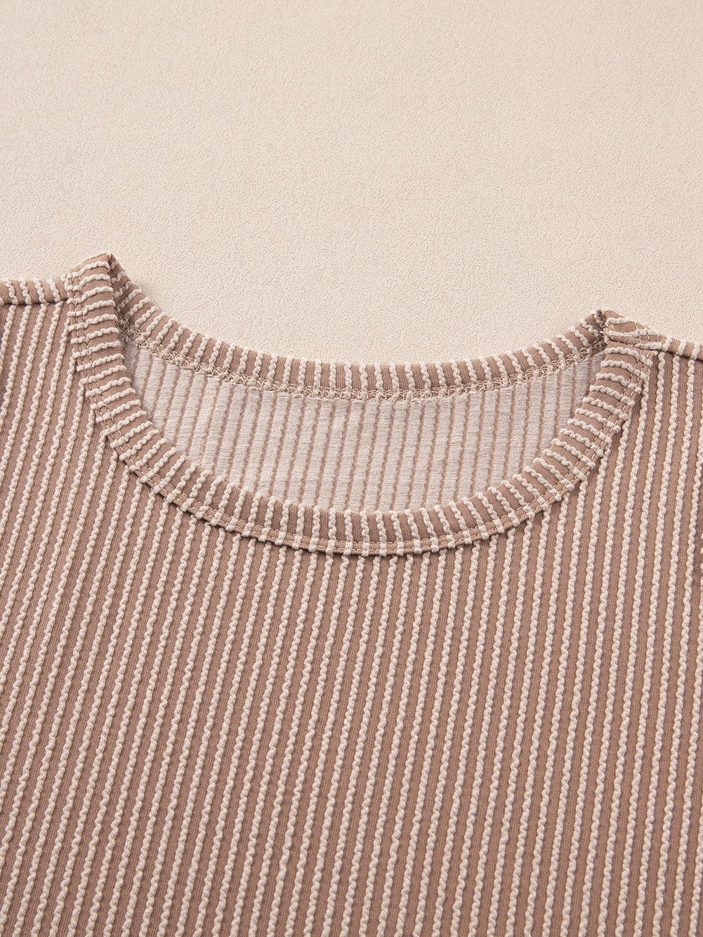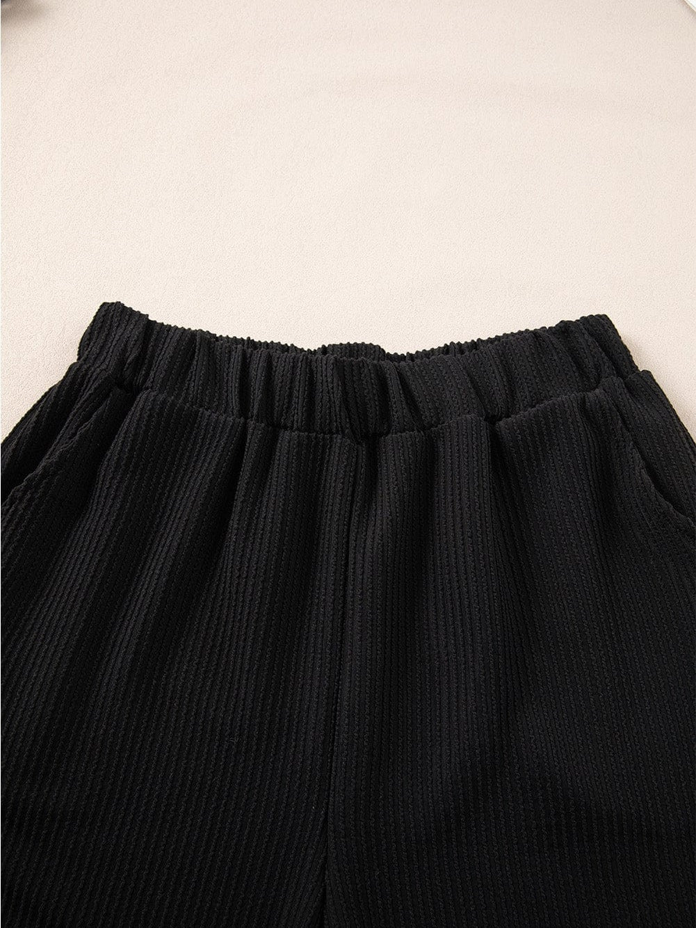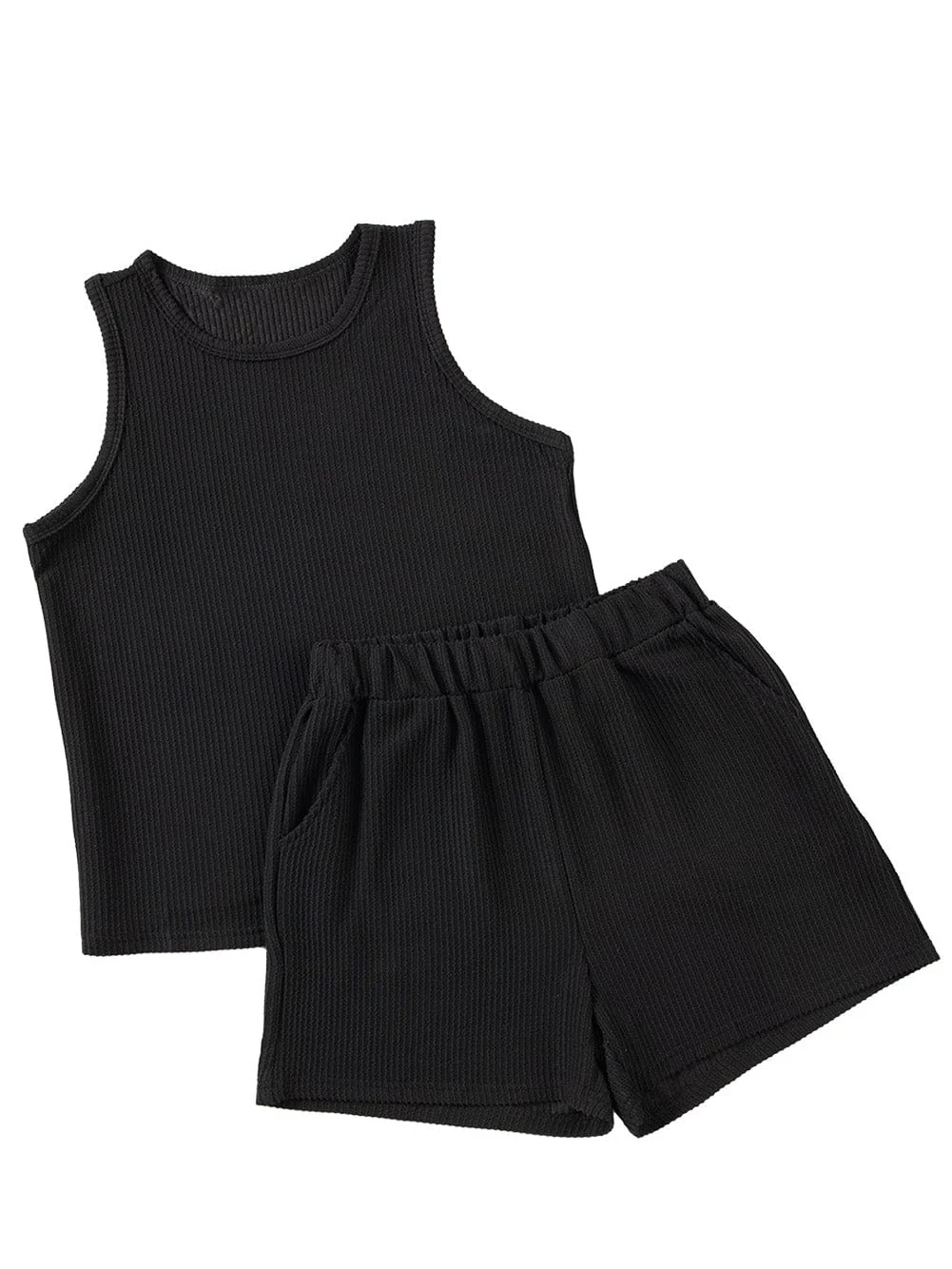 Gray Ribbed Sleeveless Top and Shorts Set with Pockets