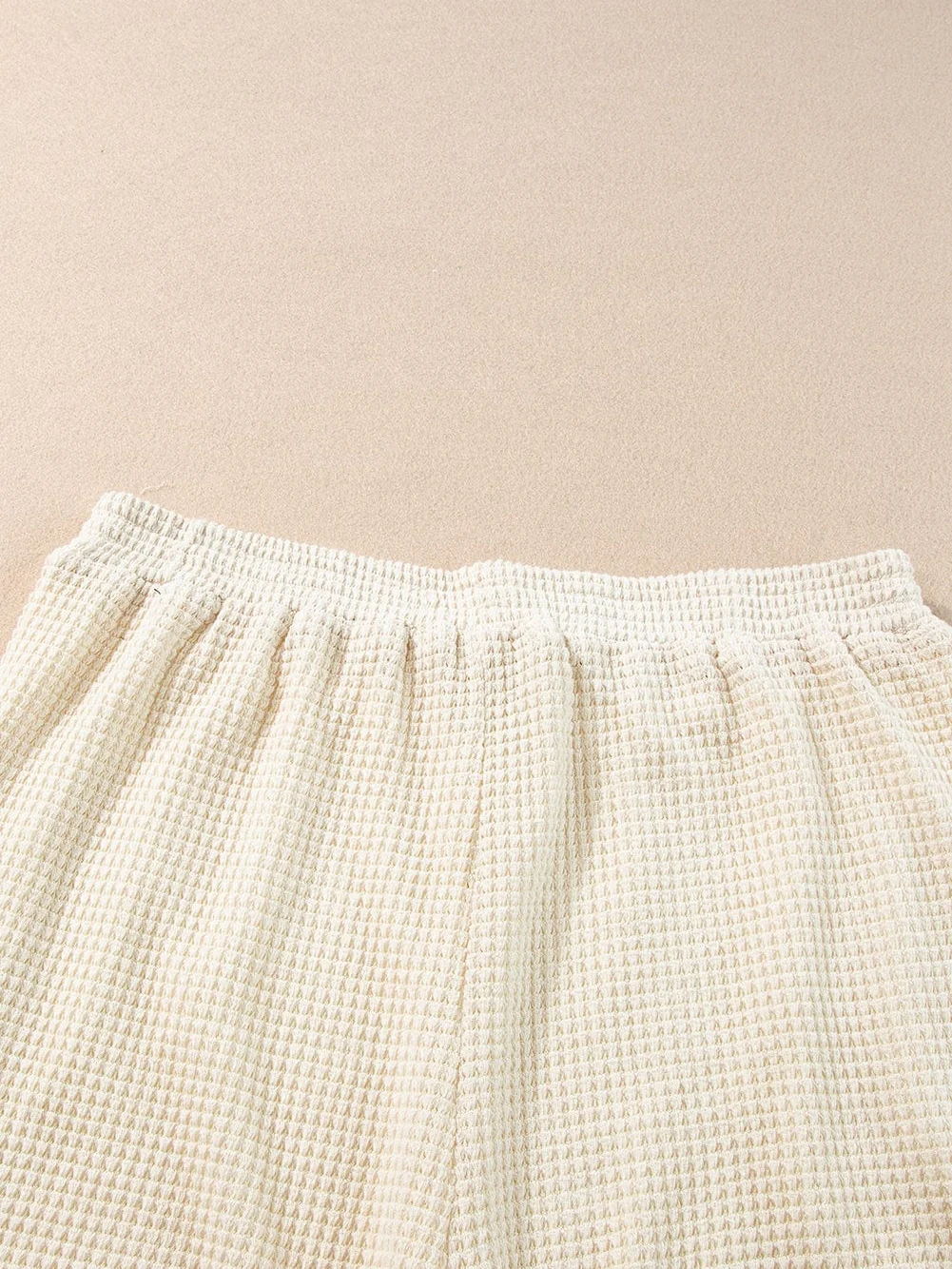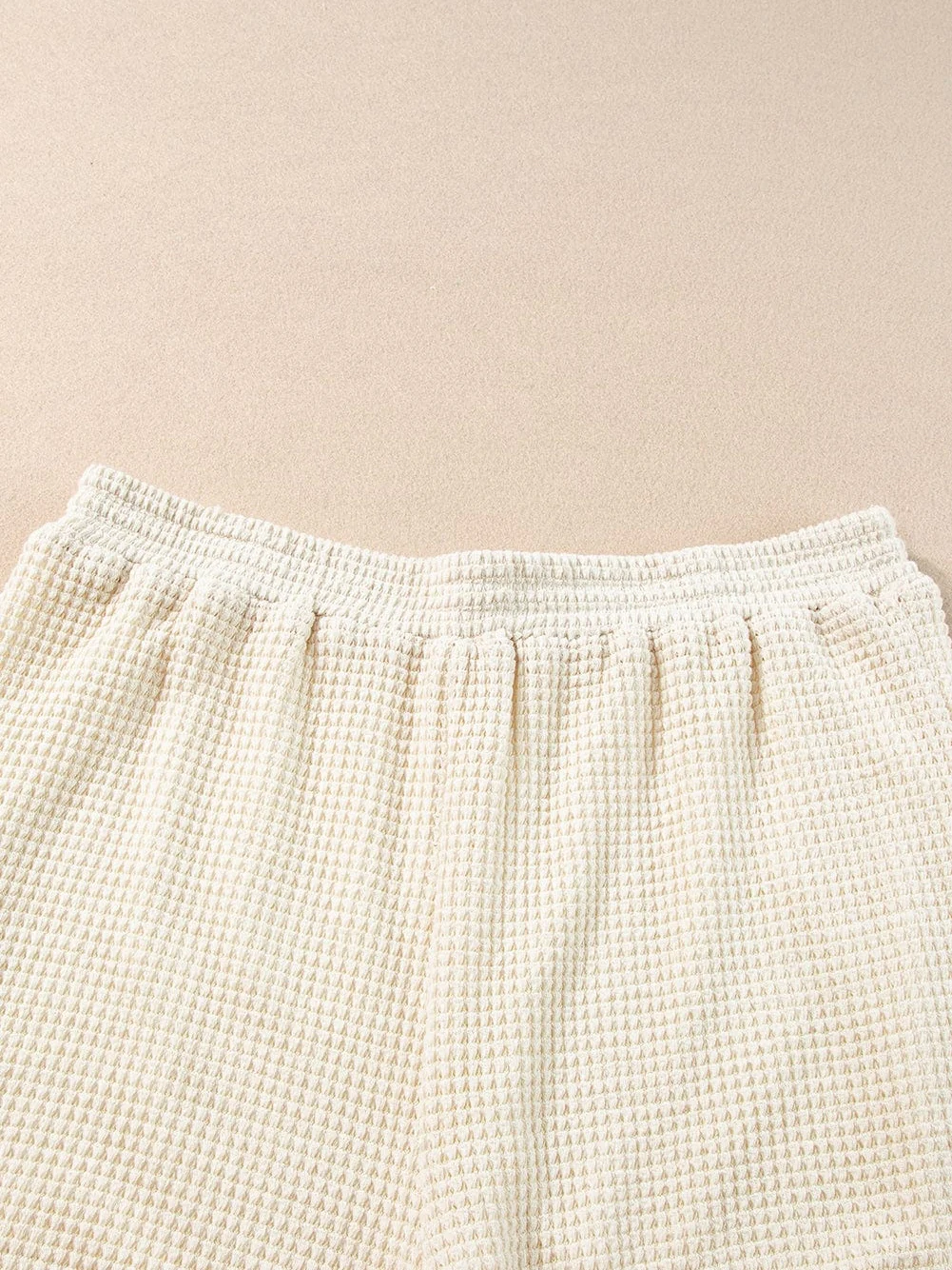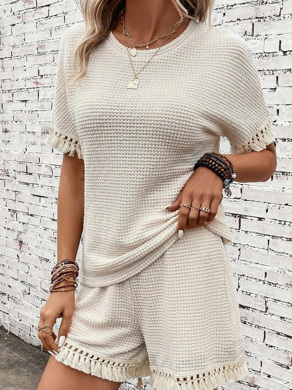 Boho Chic Beige Waffle Knit Fringed Two-Piece Set
