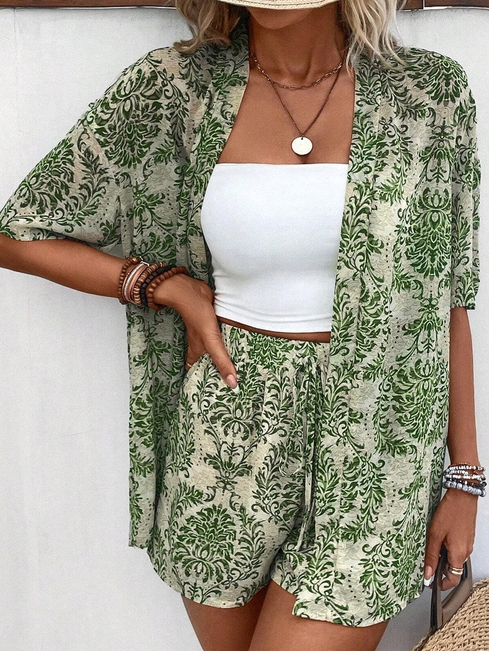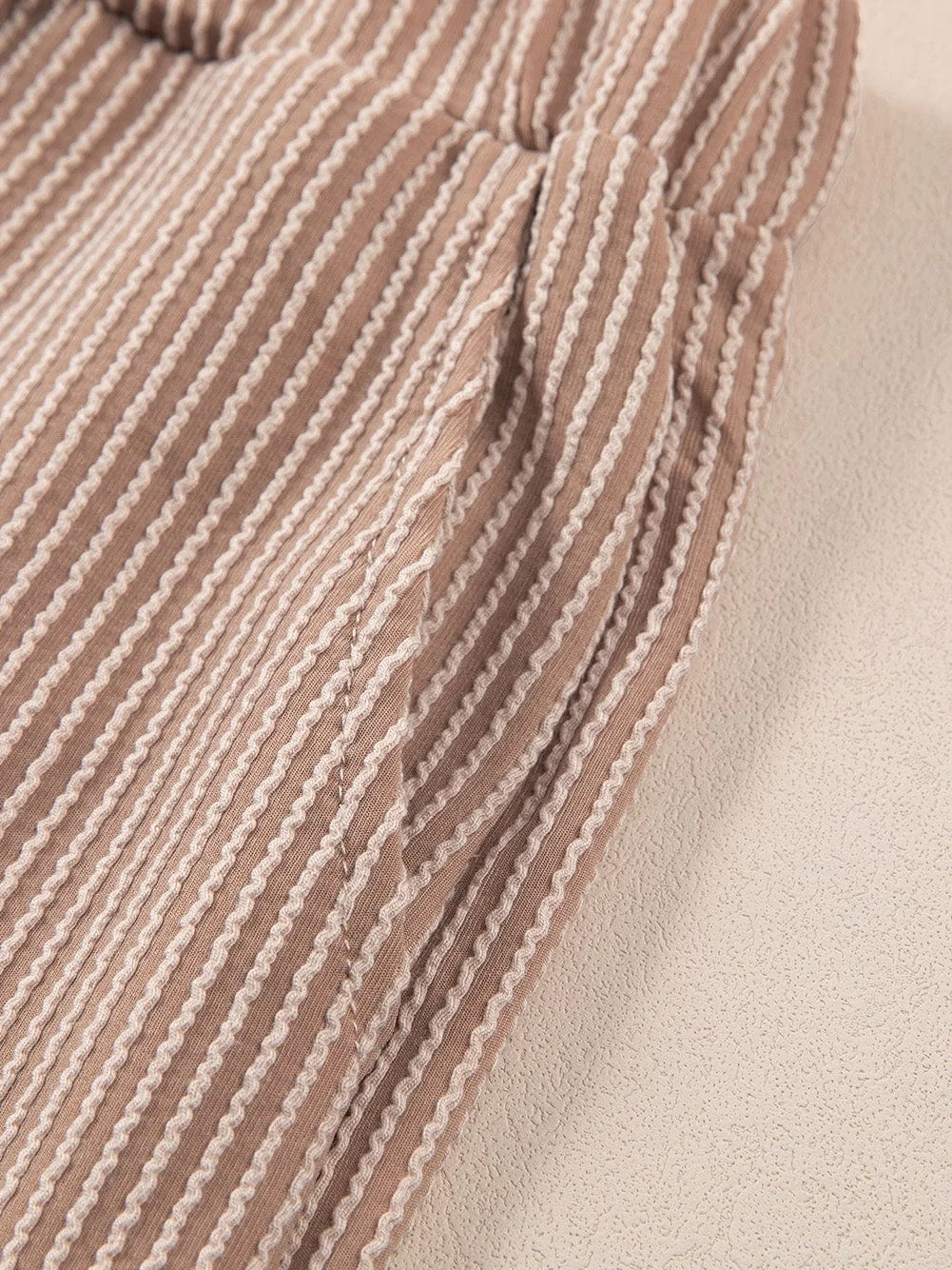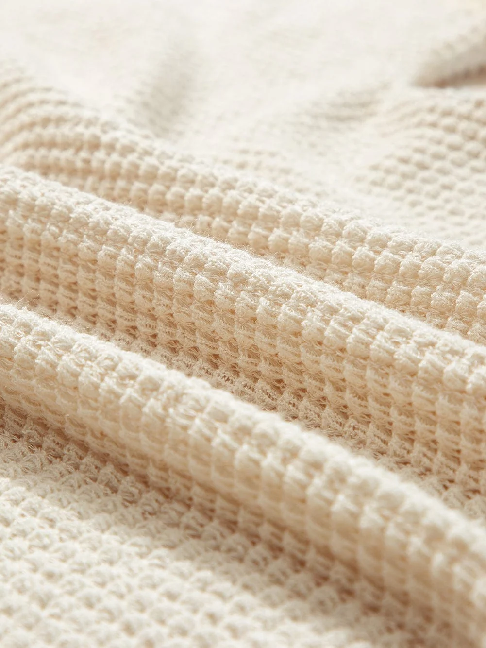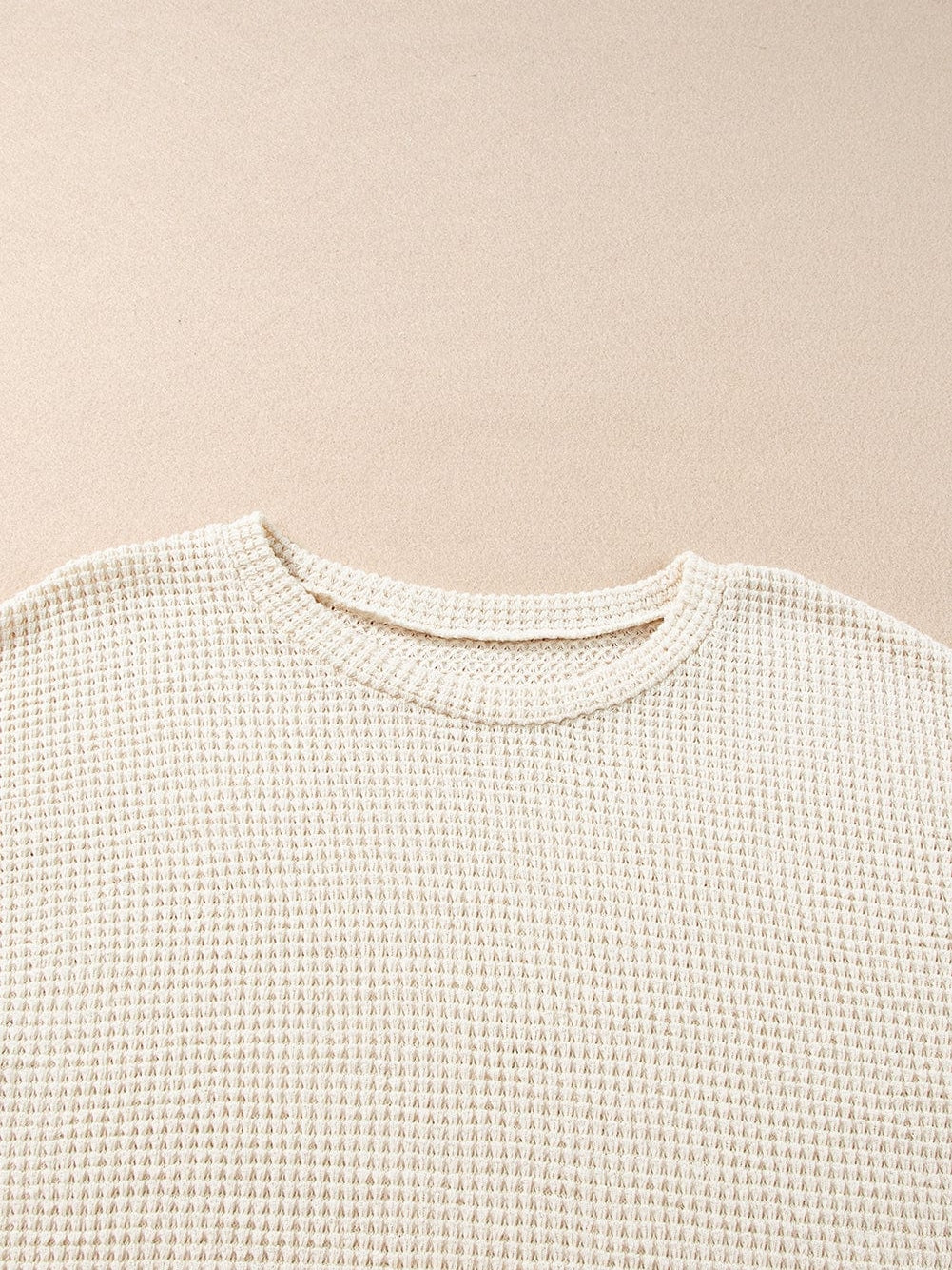 Boho Chic Beige Waffle Knit Fringed Two-Piece Set