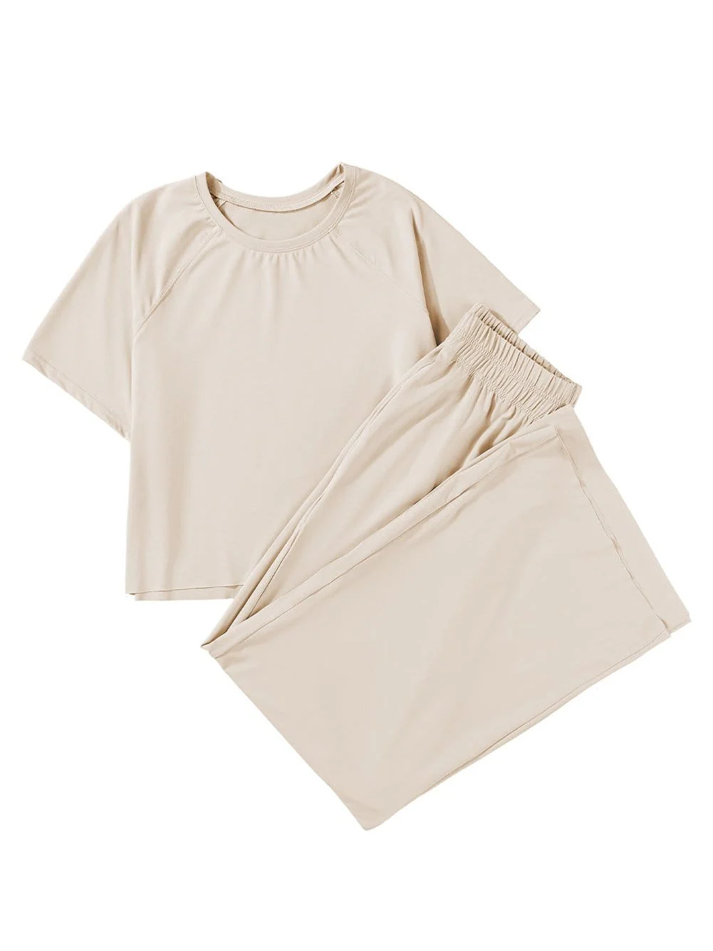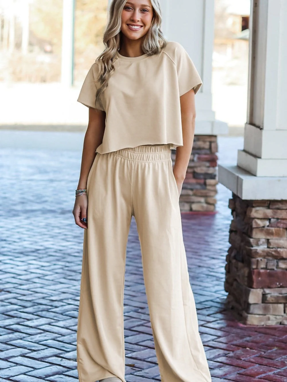 White Raw Edge Loose Tee and Wide Leg Pants Matching Set