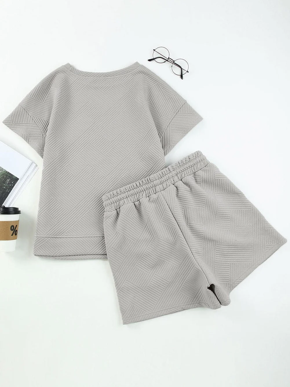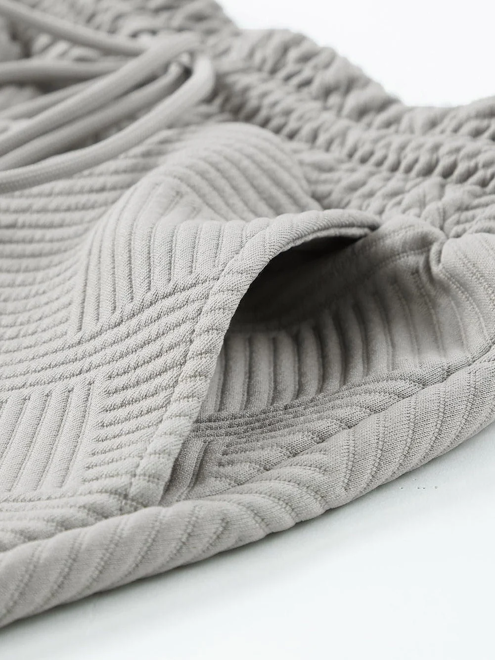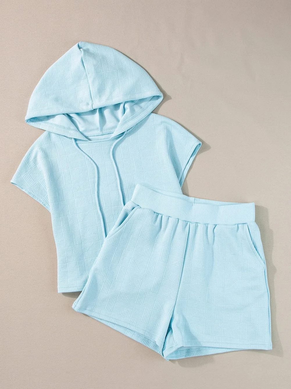 Blue Textured Hoodie and Shorts Set with a Chic Twist