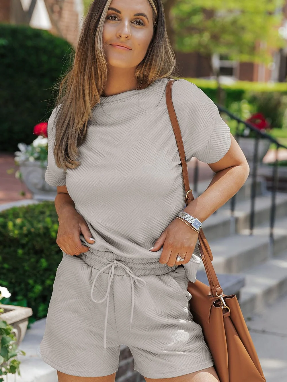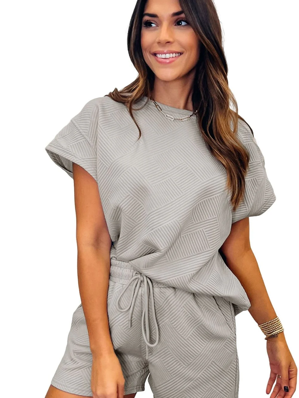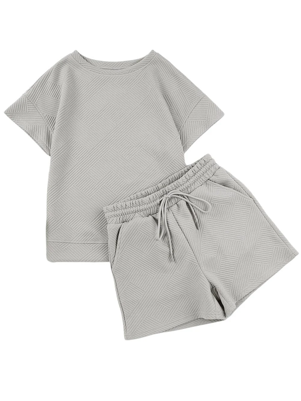 Blue Textured Hoodie and Shorts Set with a Chic Twist