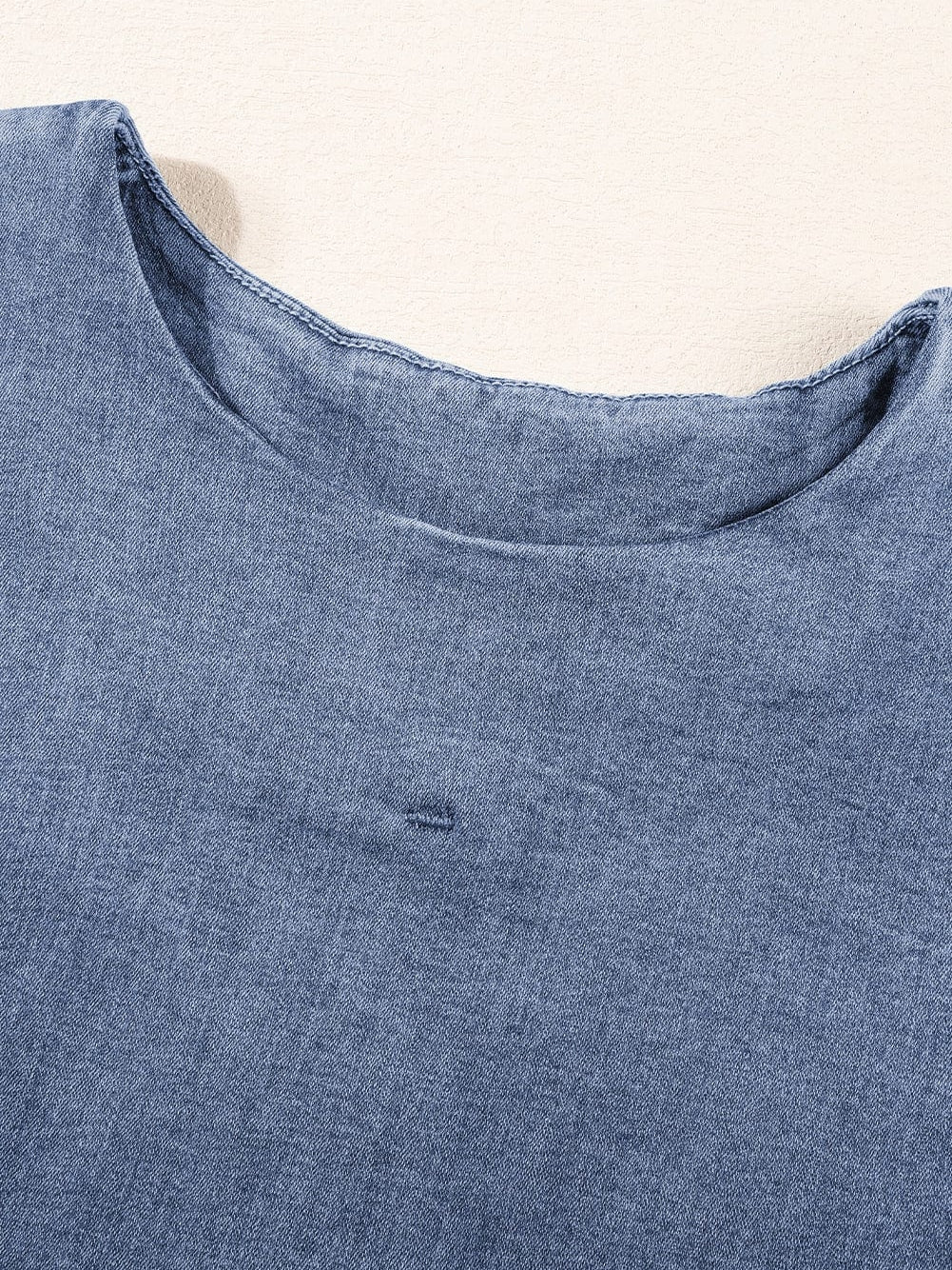 Light Blue Denim Elastic Waistband Shorts Set with Cuffed Sleeve Tee