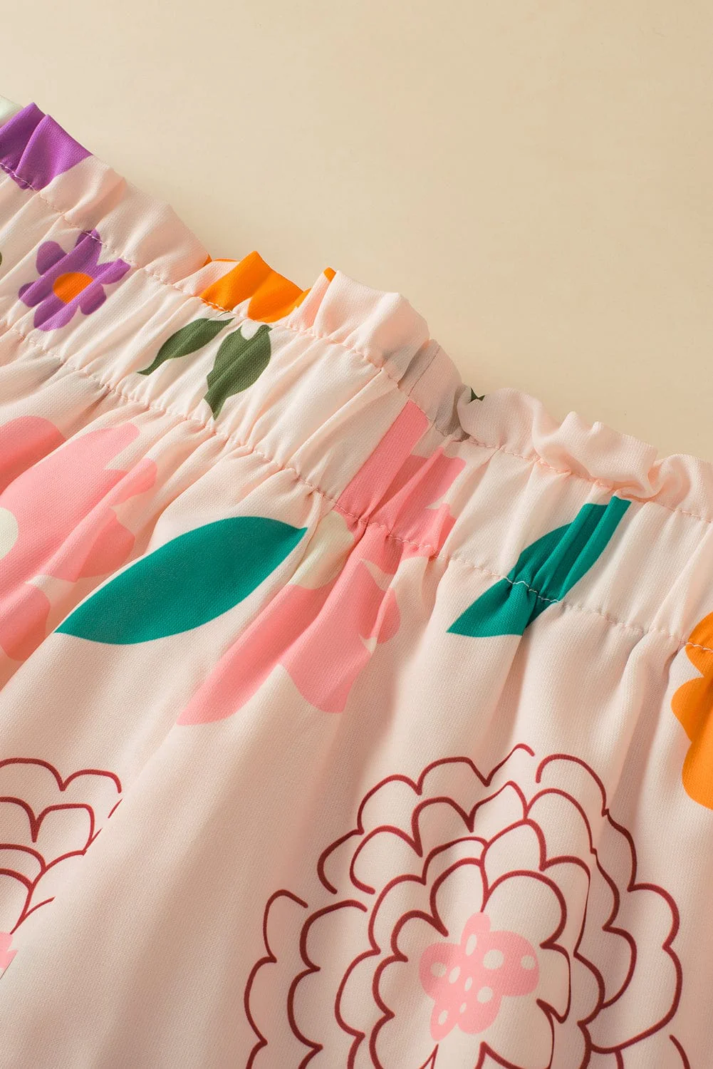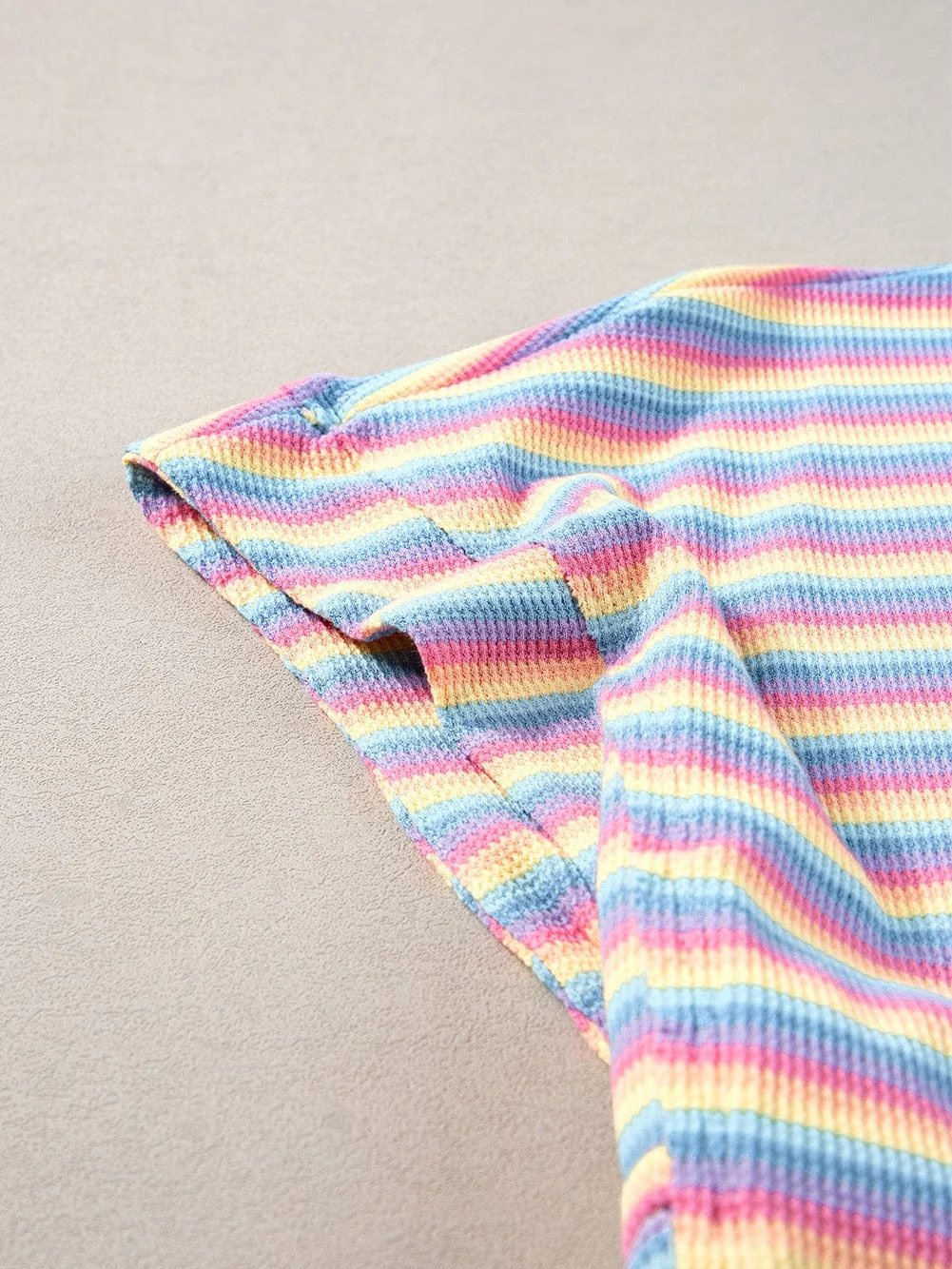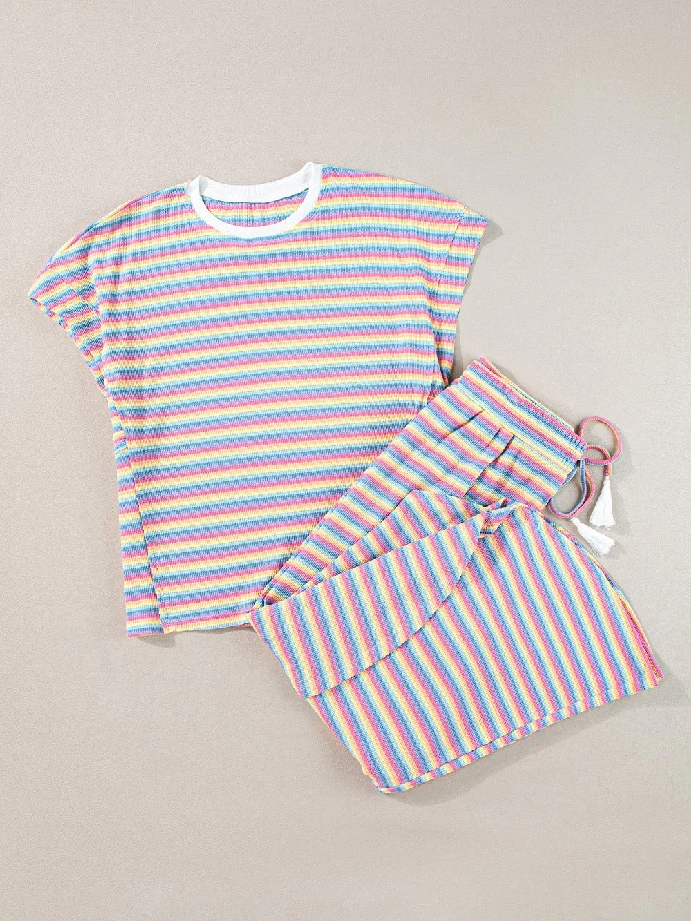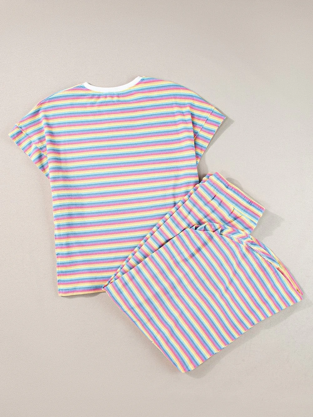 Pink Striped Rainbow Tee and Tasseled Wide Leg Pants Ensemble