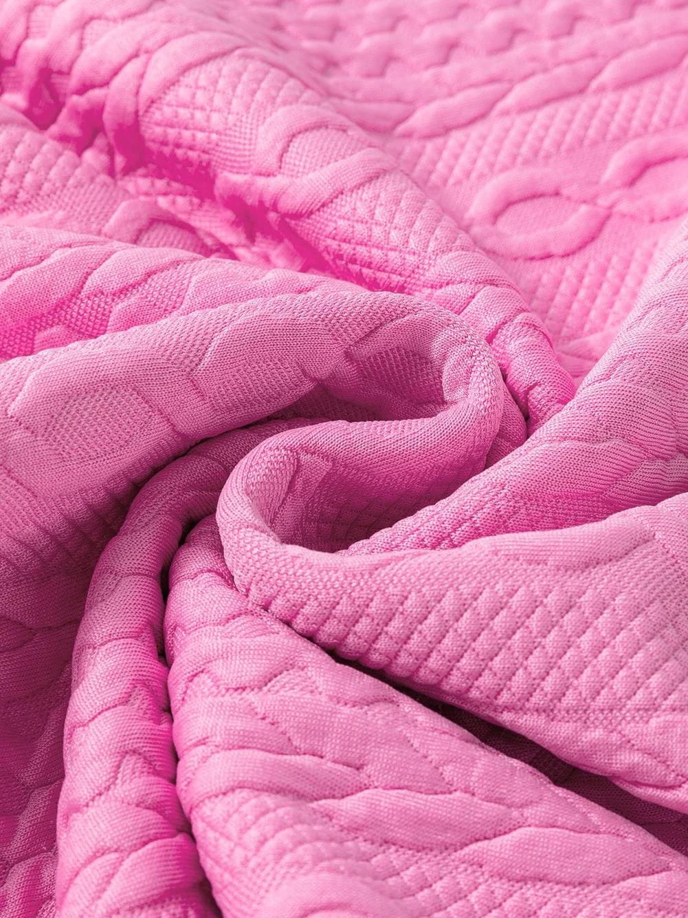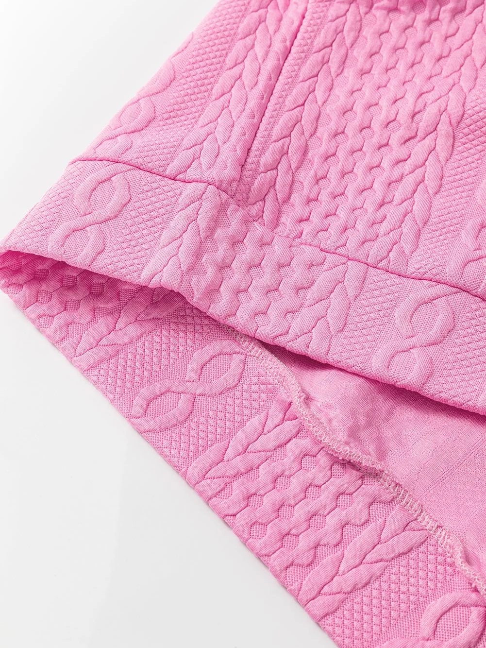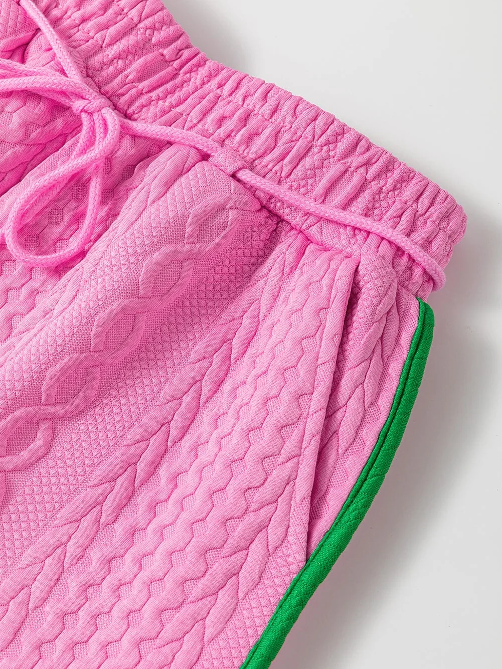 Strawberry Pink Ribbed Casual Two-Piece Set