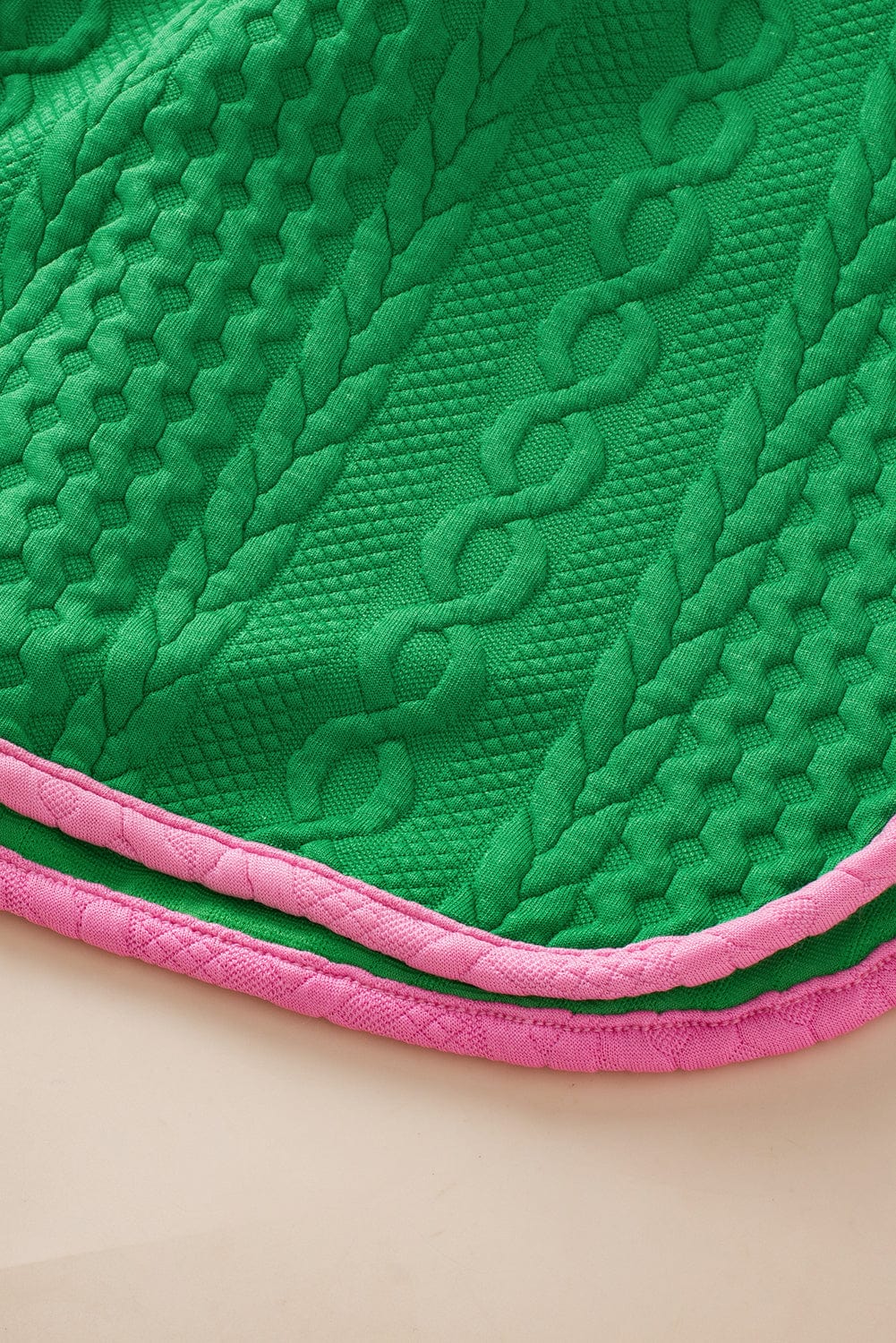 Vibrant Green Textured Shorts Set with Color Block Trim