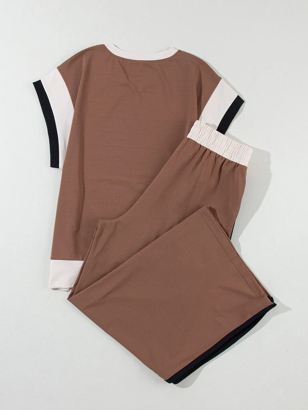 Chestnut Colorblock Casual Two-Piece Summer Set