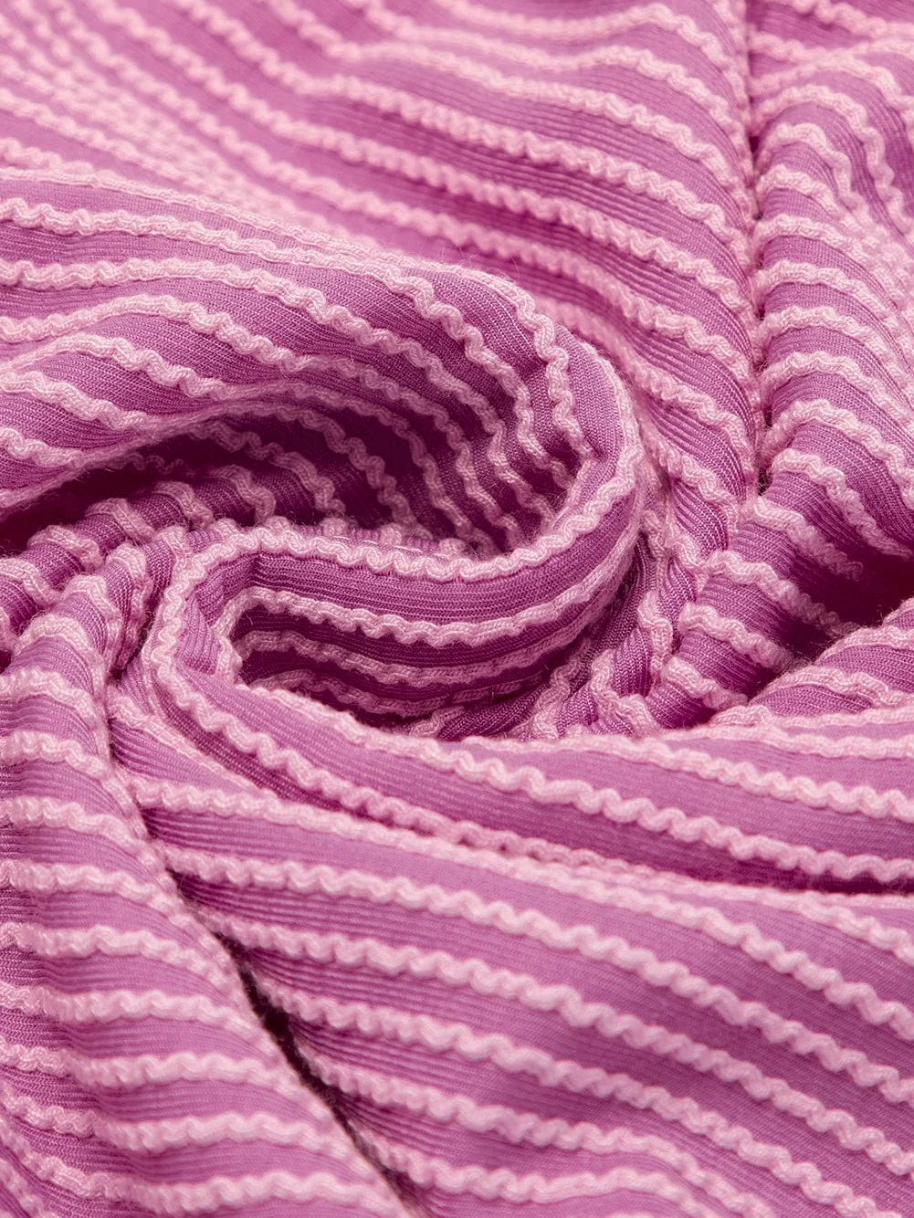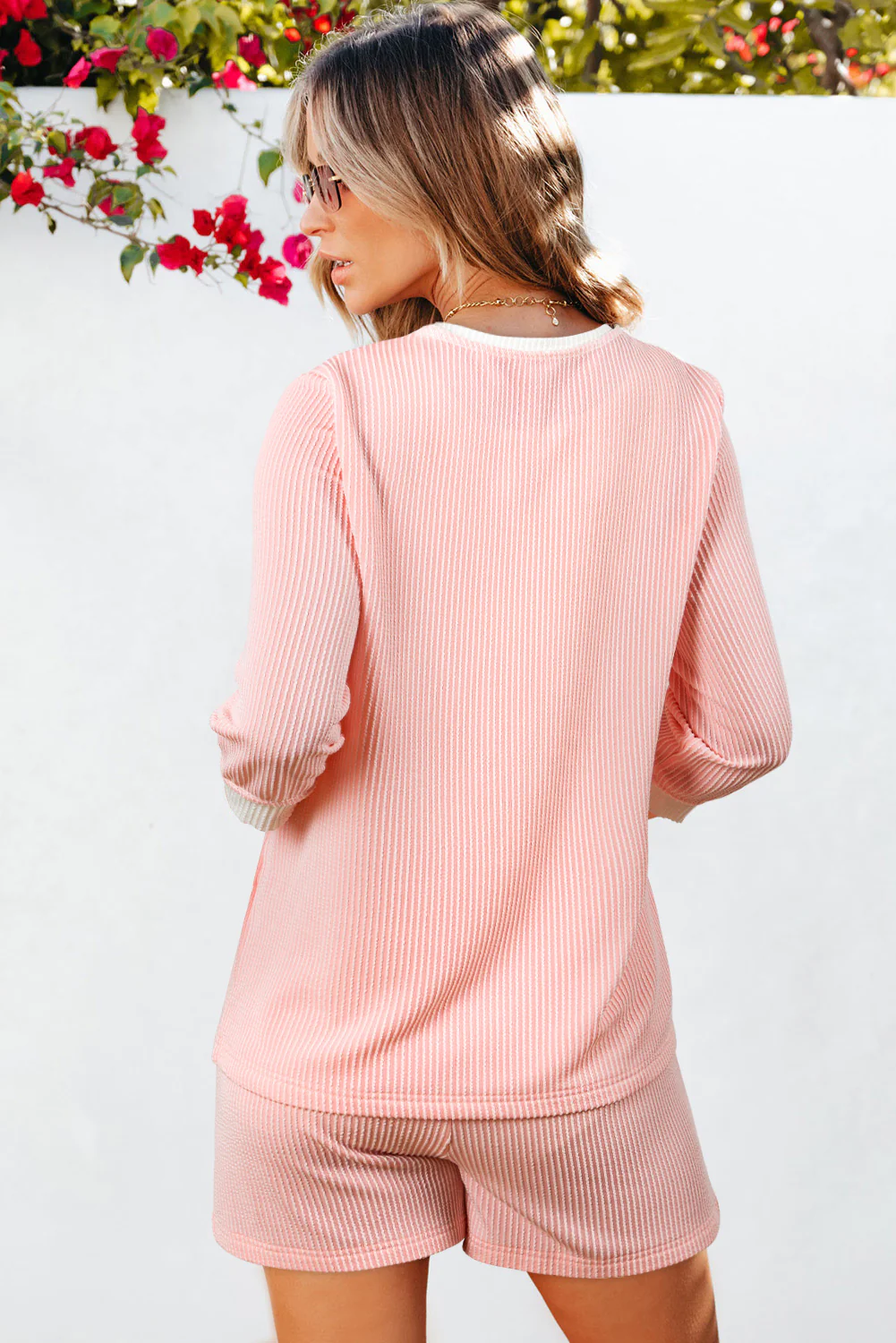 Pink Corded Colorblock Long Sleeve Top and Shorts Set