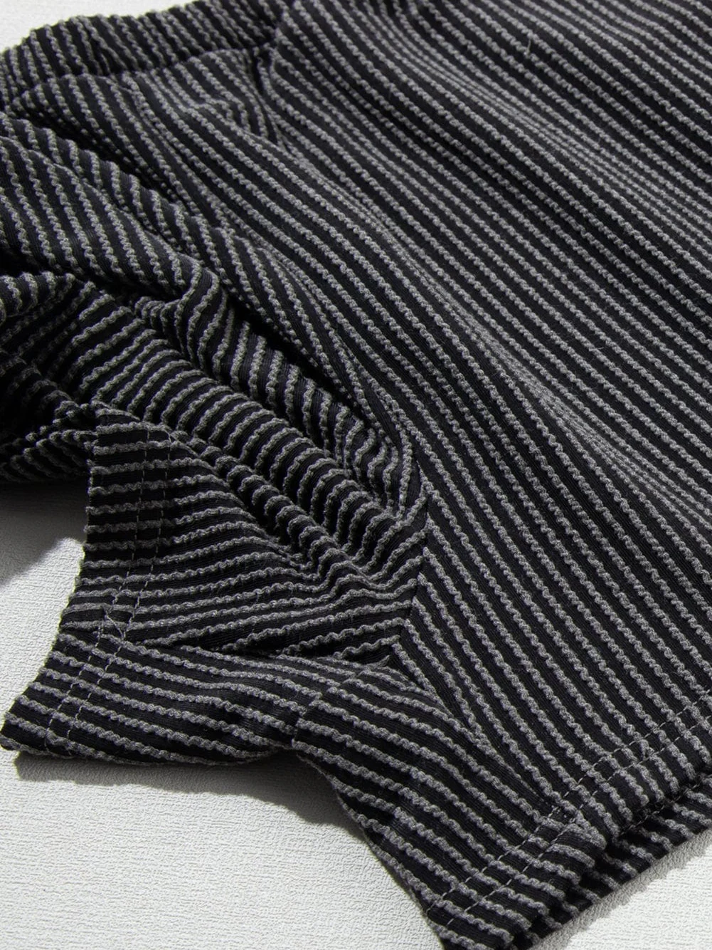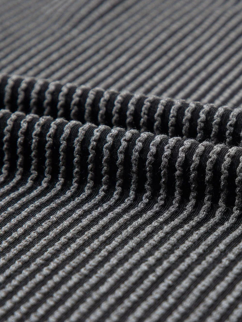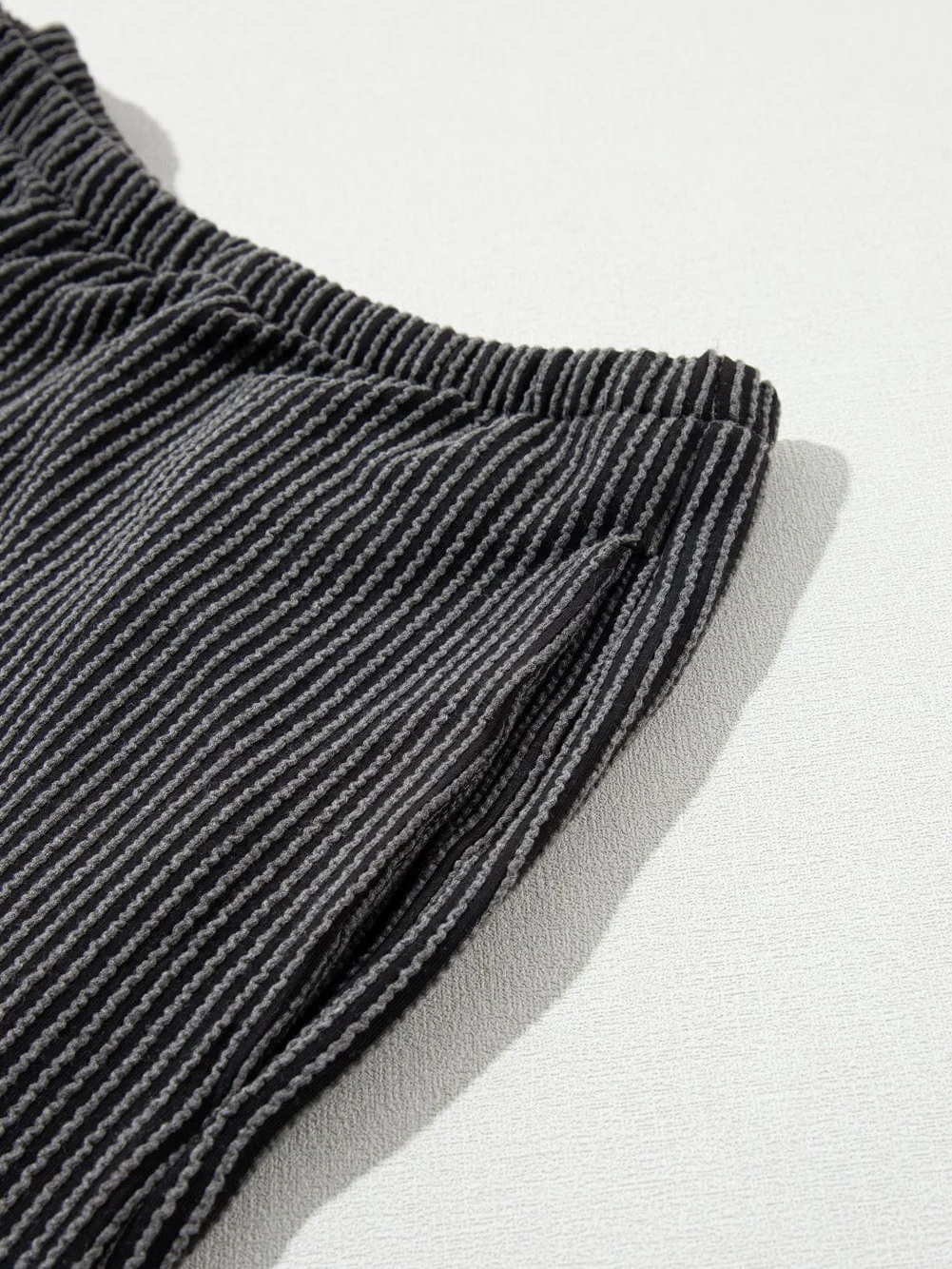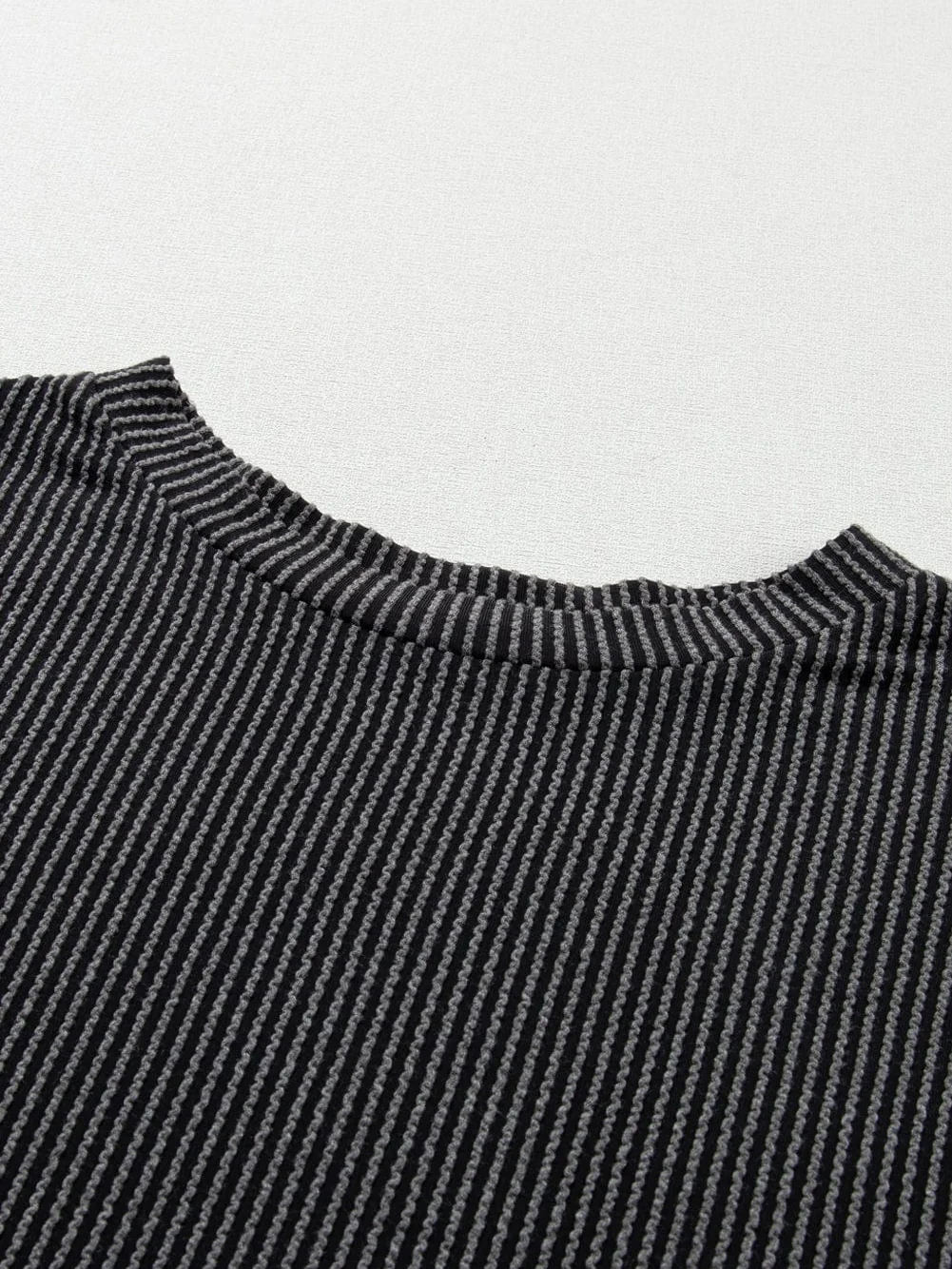Charcoal Grey Ribbed Textured Knitted Relaxed Fit T-Shirt and Shorts Ensemble