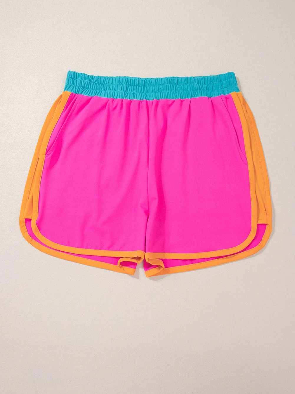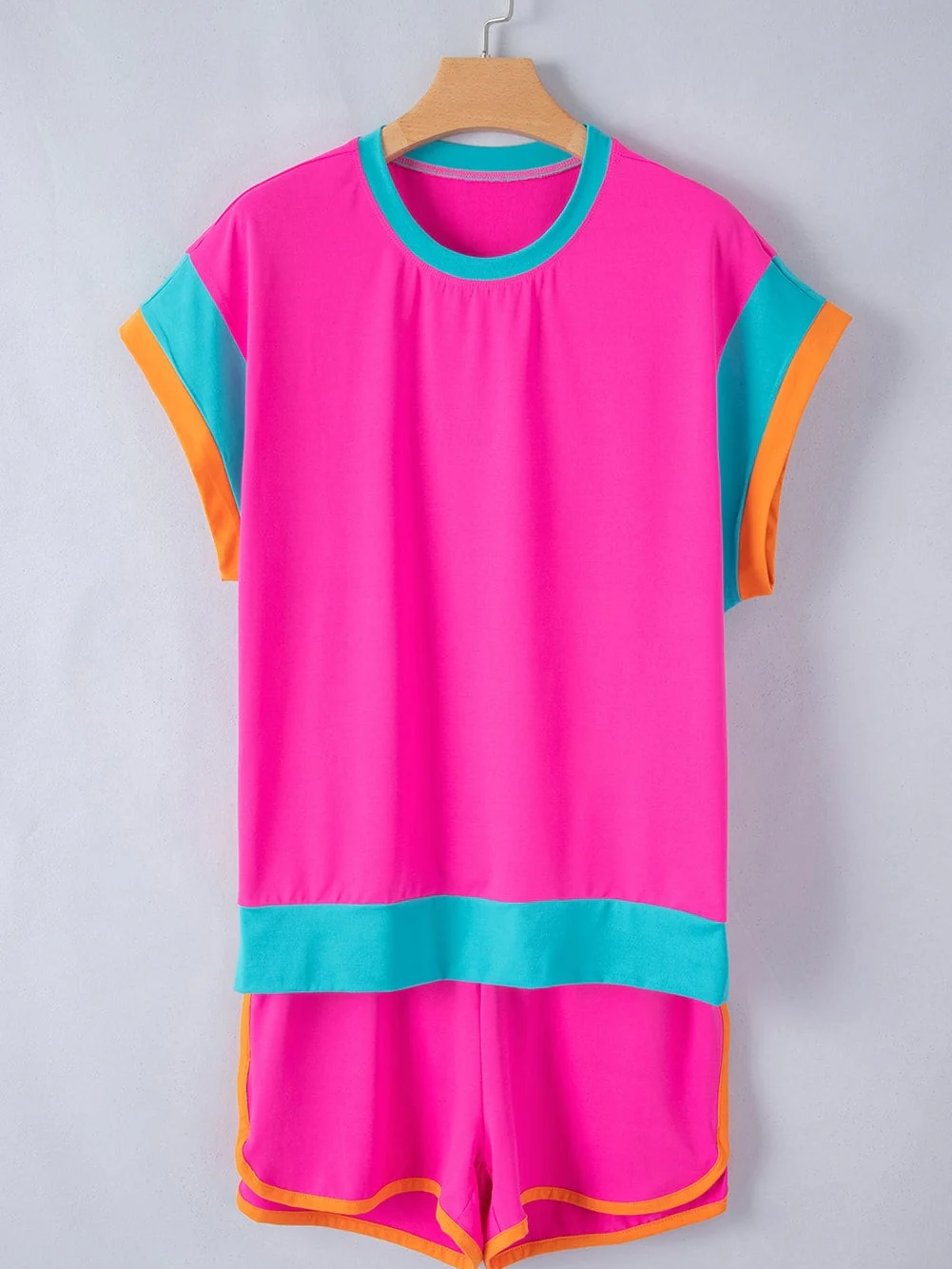 Rose Red Colorblock Cap Sleeve Tee and Shorts Set
