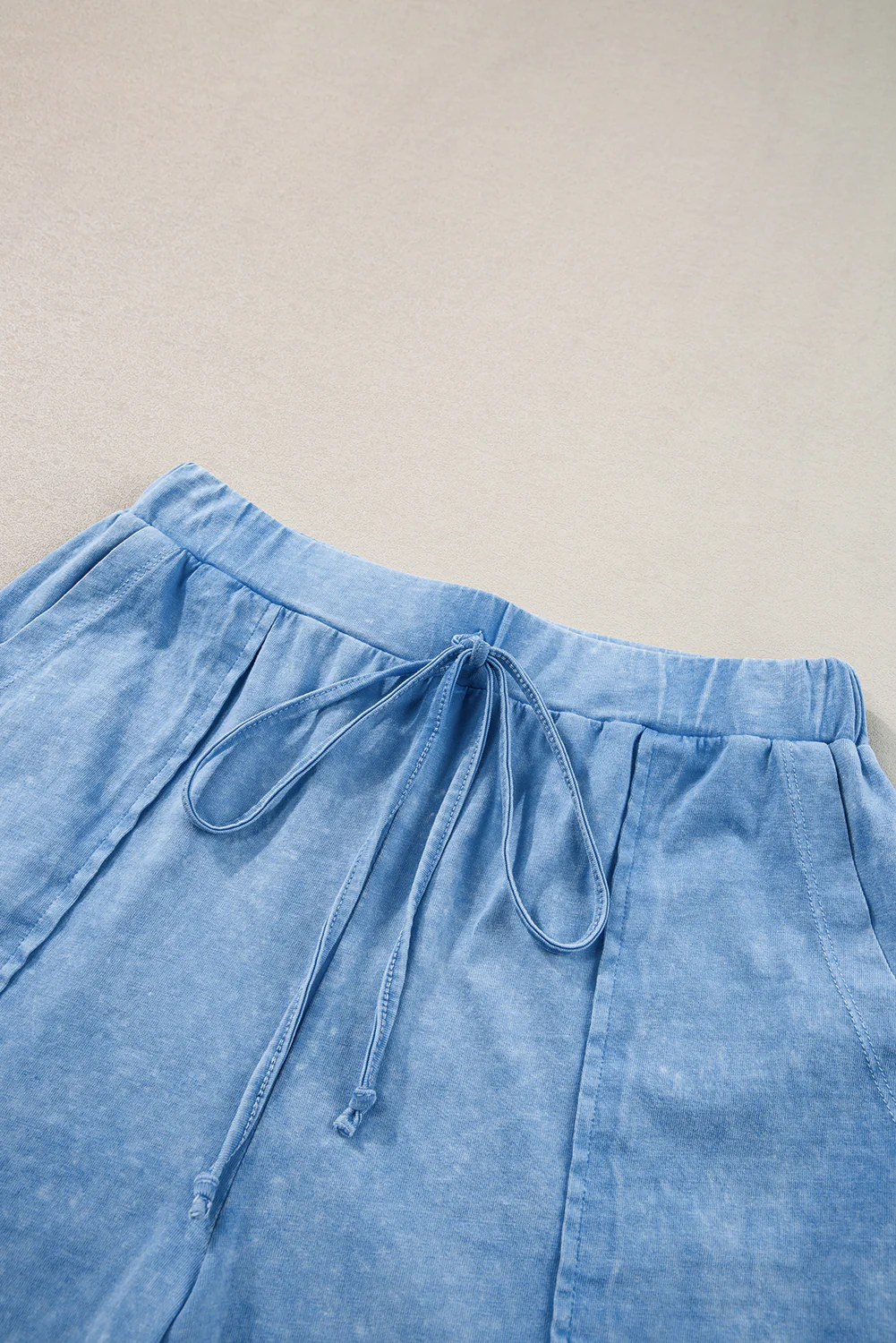 Dusk Blue Mineral Wash Tee and Drawstring Shorts Set