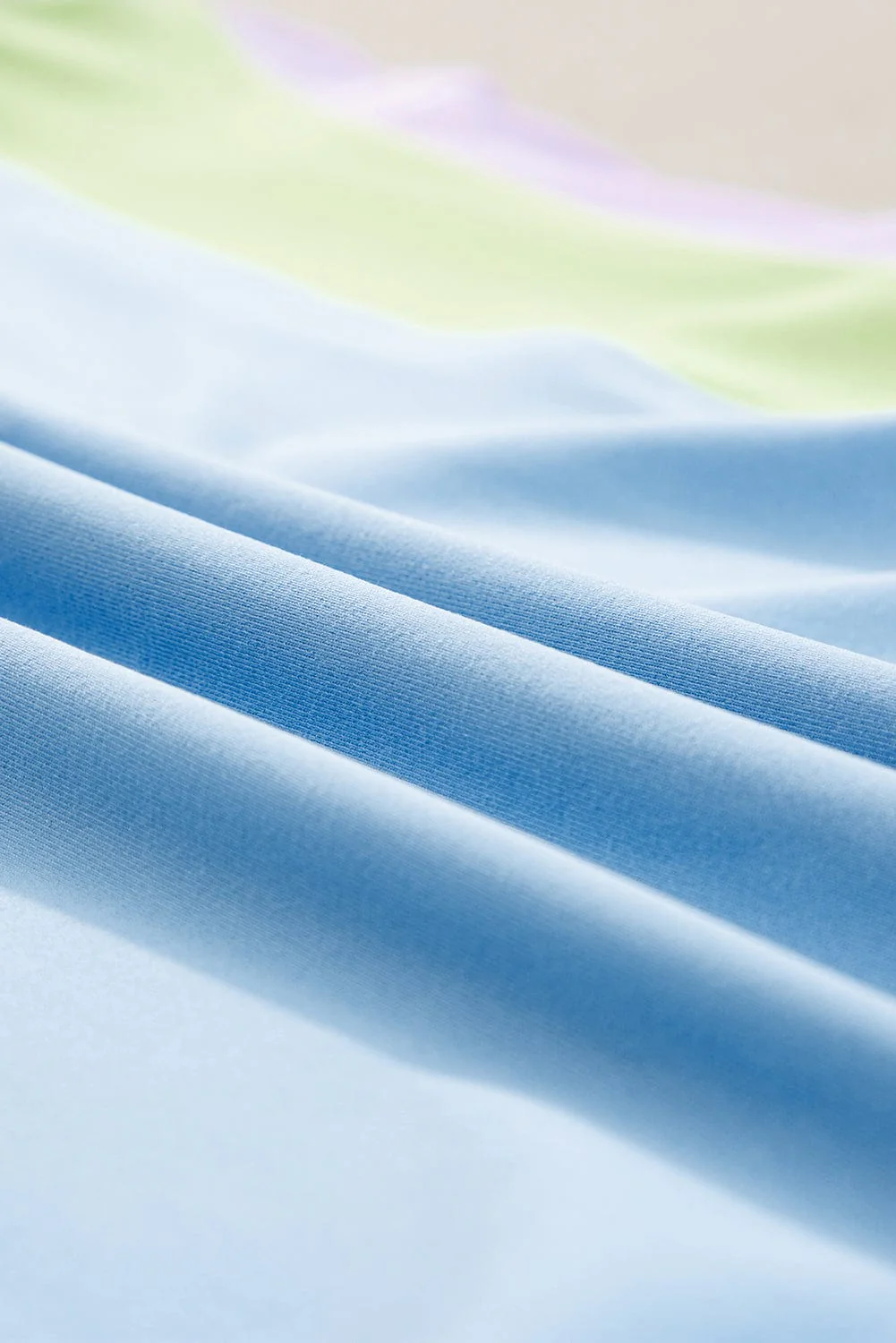 Blue Colorblock Cap Sleeve Tee and Shorts Set