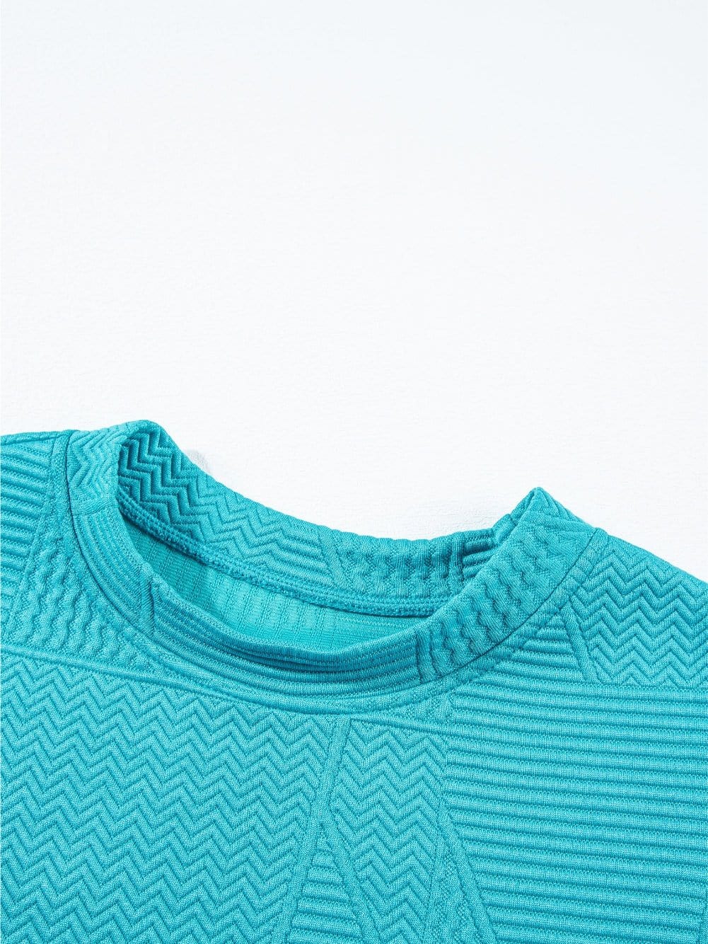Blue Textured Ruffle Sleeve Two-Piece Set with Drawstring Shorts