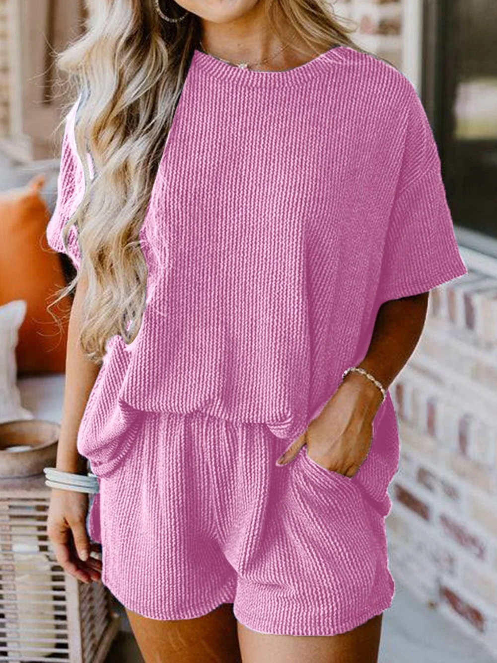 Phalaenopsis Ribbed Knit Tee and Shorts Set with Casual Style
