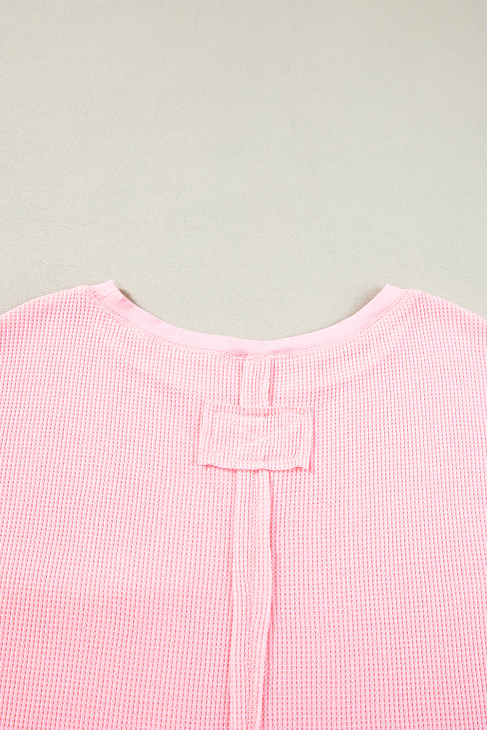 Strawberry Pink Checkered Textured Split Pullover Top and Pants Set